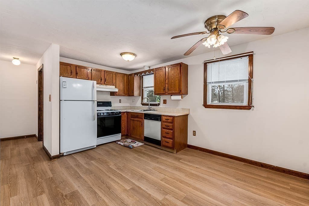 Lovingly cared for, well-maintained 2 bed, 1.5 bath condominium with no HOA fees. The townhouse offers 1400 square feet of living space across 3 levels. Floor one features a spacious living room with hard wood floors and large picture window allowing loads of natural light to pour in as well as a spacious eat-in kitchen with new flooring and direct access to the private deck and entry from the double-wide driveway. Upstairs find 2 generously sized bedrooms with new wall to wall carpets, the primary offering his & her closets as well as access to attic storage space. Retreat to the fully-finished lower level of the home and find bonus living space great for movie night, a home office or work out area. The lower level has recessed lighting, laundry room and direct walk out to the fenced rear yard. Newer hot water tank (21), vinyl replacement windows, gas heat and air conditioning plus solar. Open House Saturday, 3/14 from 11:30 to 1 and Sunday, 3/15 from 12 to 1:30.
