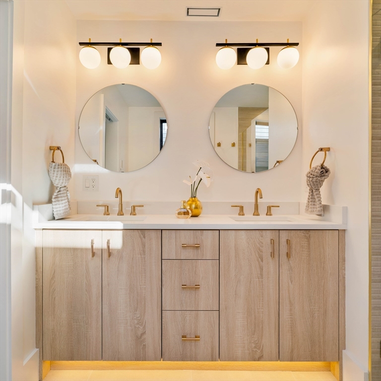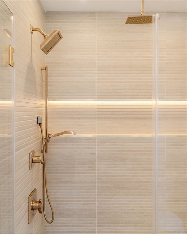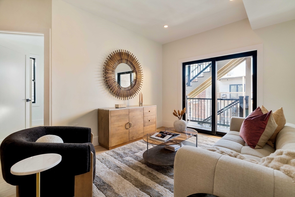 Stunning 2 bed 2 bath w/ office spanning 1020 sf in Jeffries Point. Open concept LR/kitchen flooded with natural light that has a walkout to the rear Trex deck. S/S appliances, custom two tone European slab cabinetry with under cabinet lighting and toe kick lighting highlighting the attention to detail. Quartz countertops with an island for dining and matching quartz stone for a backsplash. The 2nd bed towards the front of the unit has a large double closet and great light exposure. The larger primary bedroom in the rear has a walk-through closet that enters into the ensuite bath that is enviable, with a custom built double vanity, radiant floors, back-lit niche, brass rain head shower fixture and ribbon tile. Good sized bonus room for an office. 5" white oak floors throughout, custom colored Hardie board siding on exterior, video intercom, common backyard and laundry hookups. Easy access to shopping, dining and businesses in Jeffries Point and Maverick, RT 1A, Mass Pike and Greenway.