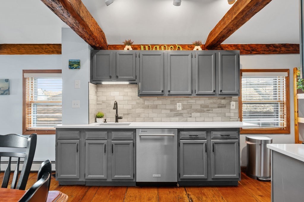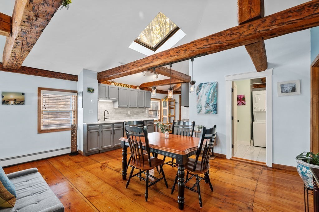Welcome to this extraordinary third-floor condo in the heart of coastal Beverly—recently named one of the hottest zip codes in America. Just a few blocks from the train station and less than 0.5 miles to the beach, this sun-filled unit is the perfect home or investment opportunity. The circa-1880 residence blends historic charm with thoughtful updates, including exposed beams, wide pine floors, decorative fireplaces, and a remodeled full bathroom. Most appliances have been replaced within the last five years. Offering 863 sq. ft. of well-utilized space, the open floor plan features a well-appointed kitchen, dining area, and comfortable living room, along with two bedrooms and one full bath. Additional highlights include basement storage, in-unit laundry, pets allowed, and one off-street parking space. Enjoy easy access to downtown Beverly shops, dining, waterfront, and commuter routes—this condo delivers charm, convenience, and modern coastal living.