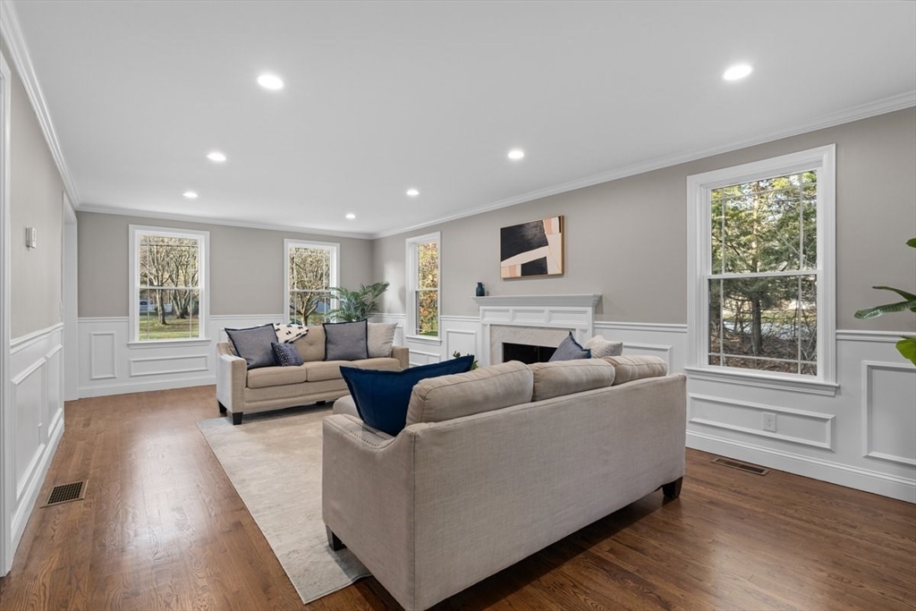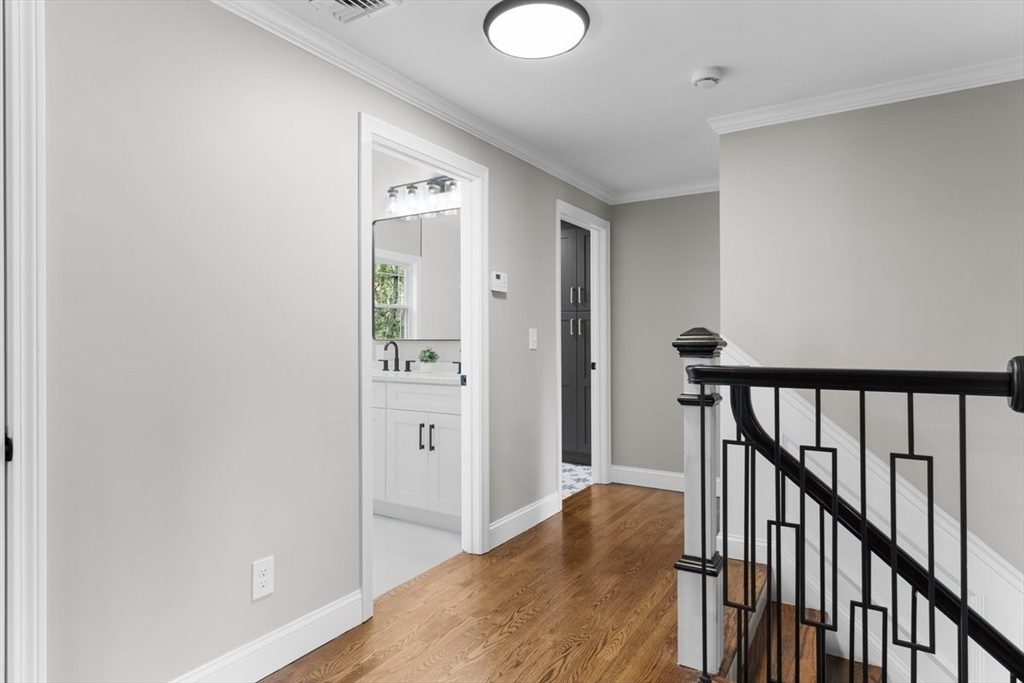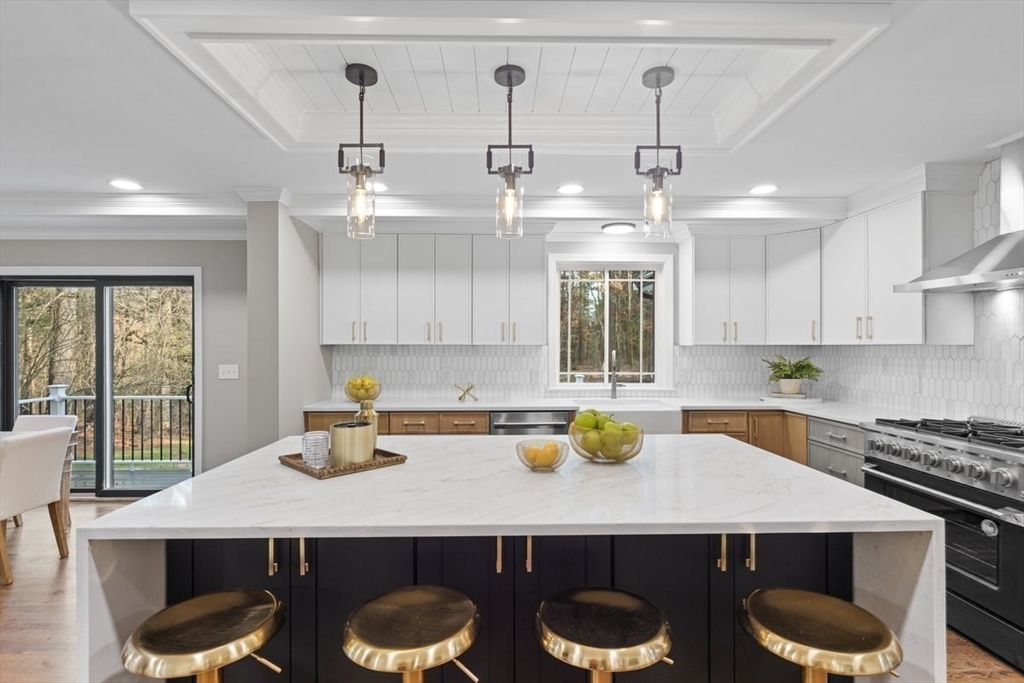 Welcome to this stunning, like-new contemporary colonial, ideally located in a well established cul-de-sac neighborhood near town center & commuter rail! This rare find has been completely renovated & redesigned with multiple new construction additions highlighting high-end finishes, well thought-out floor plan & modern, yet cozy spaces. A beautiful chef’s kitchen awaits boasting beautiful cabinetry, high end S/S appliances, including 36" gas range. upgraded fixtures, quartz counters, marble backsplash & large center island. Open concept 1st floor offers ease of entertaining w/ flexibility for everyday living, including a separate executive office. Upstairs conveniently has all 4 bedrooms, plus laundry! Spacious primary bedroom boasts walk-in closet & impressive spa-like bath w/oversized custom tiled wetroom w/soaking tub & dual shower heads! LL offers an abundance of add'l space featuring large custom wet bar w/possible in-law set-up. New everything inside & out, including mechanicals