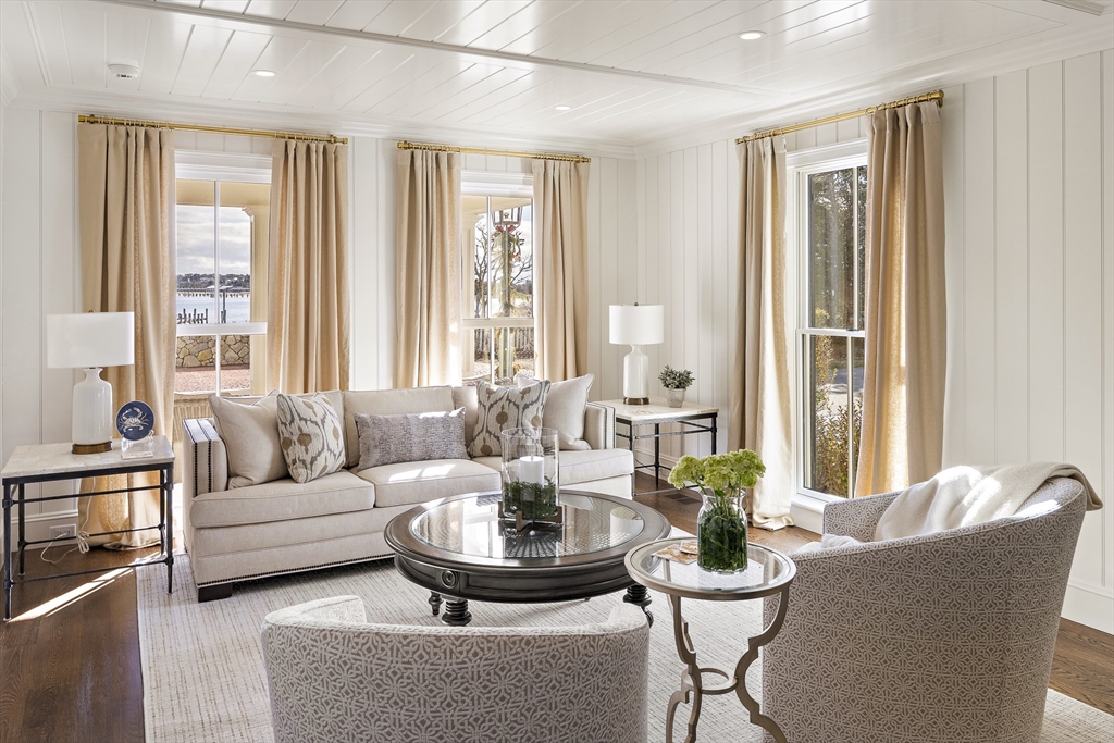 Edgartown Village Compound with Harbor Views: Positioned in the heart of Edgartown’s historic district, 114 North Water Street is a newly complete, move-in-ready property offering views of Edgartown Harbor. The offering includes eight bedrooms and seven-and-a-half baths across three thoughtfully designed structures: a six-bedroom, five-and-a-half bath main residence, a one-bedroom guest house with full kitchen, and a two-car carriage house with additional living quarters. The property features a private backyard oasis with a 16' x 32' saltwater pool, spa, and pool cabana—an exceptional outdoor setting in Edgartown Village. With furnishings and window treatments included, the home is ready for immediate enjoyment. 114 North Water Street represents a turnkey Edgartown Village estate offering the scale, amenities, and setting that are seldom available in this iconic location.