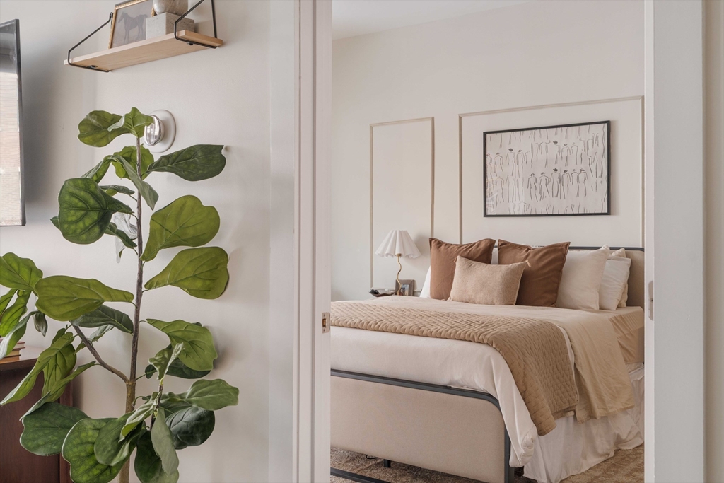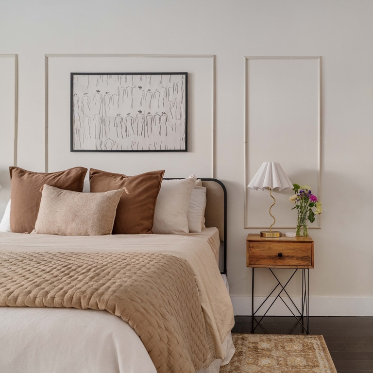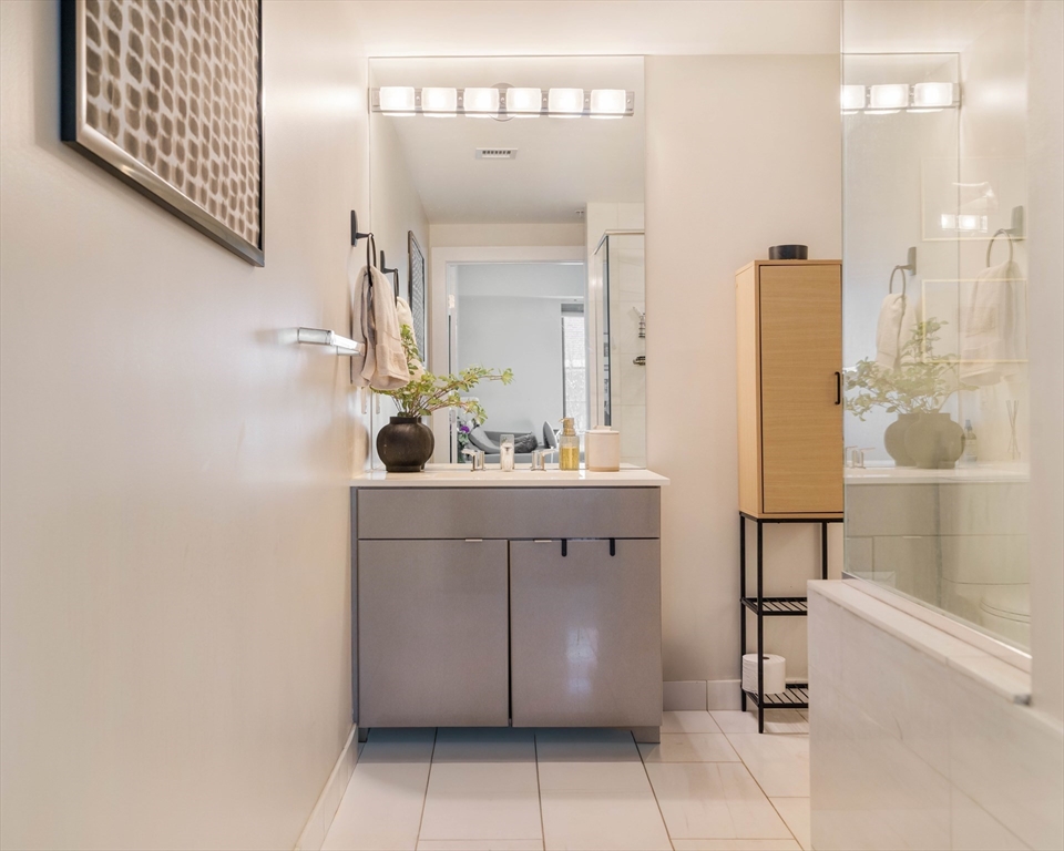 Nestled in Boston’s vibrant South End, this 2-bed 1.5-bath, 1,197 sq. ft. residence offers exceptional convenience just moments from Northeastern University, Copley Square, the Mass Ave Station, and quick access to I-93 and I-90. Step into the heart of the city’s dining, arts, and green spaces with ease. Inside, modern design blends seamlessly with timeless elegance. Rich, deep-toned hardwood floors run throughout, while expansive floor-to-ceiling windows flood the home with natural light. The gourmet kitchen is a showpiece, featuring custom white cabinetry, luxurious chocolate quartz countertops, and premium SS appliances. Both bedrooms are generously sized with excellent closet space, and the private balcony—accessible from the primary suite and the living room—provides a serene spot to enjoy sweeping city views. Additional conveniences include in-unit laundry and a deeded garage parking space. Top it all off with a stunning shared rooftop deck offering panoramic views of the city