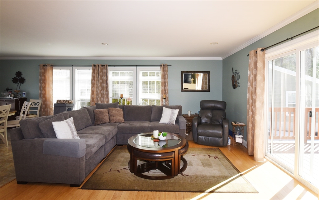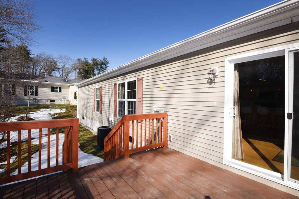 Live Oaks Village features 20 single family ranch style homes with many different floor plans. Situated on a beautiful 15 acre private retreat setting! The homes have an attached one and a half car garage which accommodates one car and storage space. Exclusive living for the 55+ age group. This one level home offers elegant living space with many quality updates. Newer Quartz center island in kitchen large enough for your guest to gather around! Beautiful, custom, tiled, gas fireplace in the spacious living room can be enjoyed from the kitchen and the dining area too! En suite, double vanity bath features a newer step in tiled shower and a large closet. In the hallway there is pull-down stairs to the attic. Slider in the living room leads to a 16x12 deck overlooking nature. Central AC and a newer whole house generator will also add to your comfort and safety. Convenient location close to churches, shopping, senior center, golf courses, Rt. 3, South Shore Hospital and Rail
