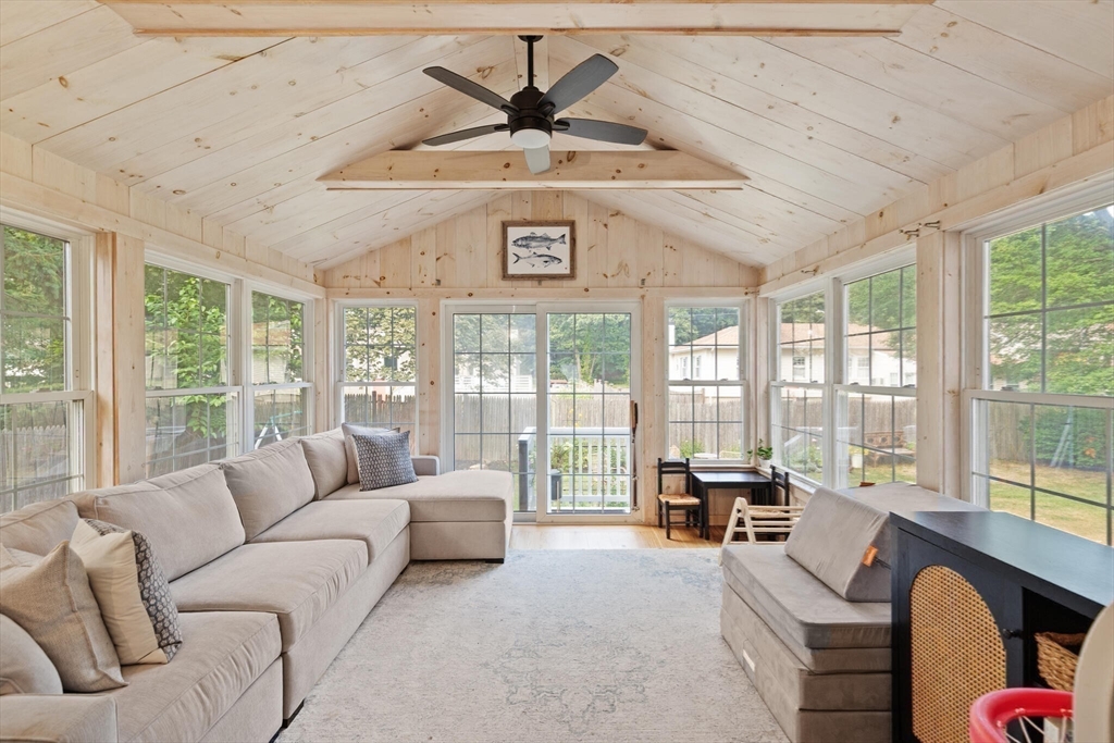 Warm and inviting cape in an outstanding neighborhood checks many boxes and shows beautifully. Perfectly updated kitchen features SS appliances (GE induction stove w/air fryer feature) quartz countertops, nice cabinets and warm new wood flooring throughout open concept main living area.Natural light floods into FP living room from large bay window and is nicely accented with newly installed recessed lighting. Bonus family room off kitchen has vaulted ceiling and walls of windows framing beautiful fenced in yard.Smart floor plan offers up use options depending on your needs...first floor office and bedroom or two first floor bedrooms if needed. Main level refreshed full bath sets up nicely for single level living. Upstairs you will find 2 very generously sized bedrooms with good closet space and 1/2 bath which could easily be converted to 3/4.Basement w/great storage with potential for growth,1 car attached garage. Premier location and neighborhood.