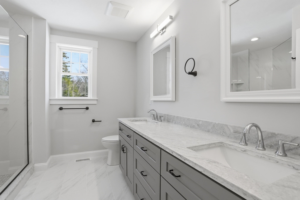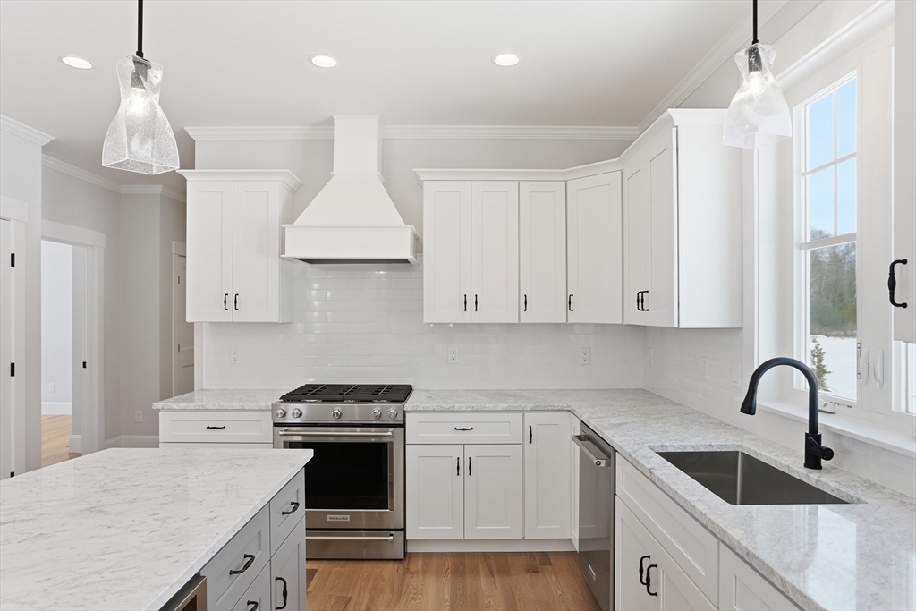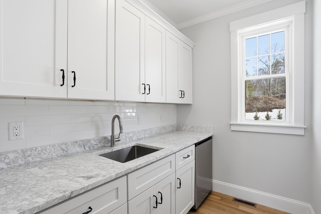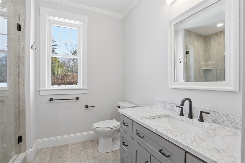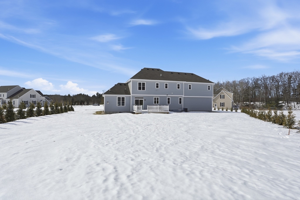 Beautiful New Construction home located at the end of a cul-de-sac with a flat back yard. Step on to the farmers porch and enter the 2-story foyer where you will immediately notice the quality & attention to detail in this stunning residence. Level I features a two story foyer, a study that can double as a bedroom with a full bath off of the mudroom, and a walk in pantry complete with a sink and refrigerator. Plan a dinner party in the dedicated dining room or entertain guests in your eat in kitchen that flows into a vaulted ceiling living room. Level II features hardwood flooring in all bedrooms, a spacious laundry room, and large master suite with generous walk in closets. Bluebird way is 100% complete and abuts upland open space. Groton is a historic town, rich in history & famous for its arts, cultural scene, and highly ranked public & private school systems. It offers farm-to-table fine dining, local taverns, and an unprecedented 100 miles of conservation trails.