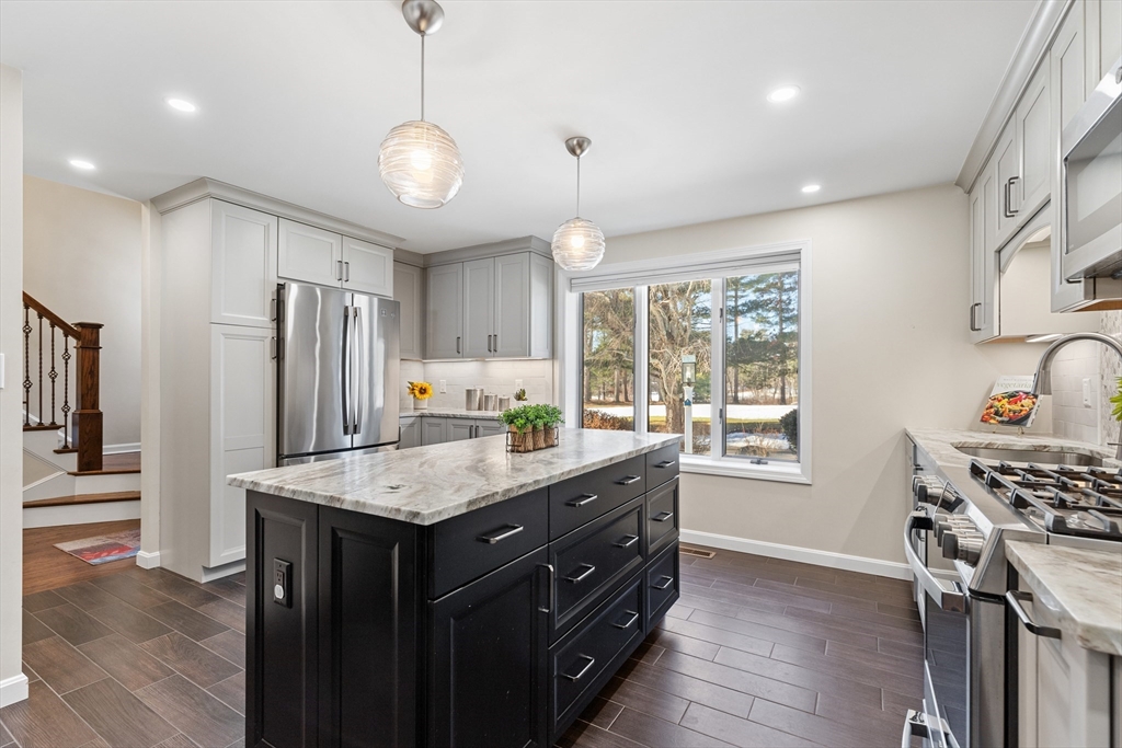 *ELEVATE YOUR LIFESTYLE. *Exquisite stand-alone townhome in a serene, private setting, fully transformed in 2020 with a sophisticated, open concept floor plan. The gourmet custom kitchen is a showpiece, featuring grey Omega cabinetry, leathered granite counters, a striking black center island with breakfast bar, and top of the line appliances. Elegant details abound, including a beamed ceiling in the dining room and custom window seats in the living room, combining timeless craftsmanship with modern luxury. The FIRST FLOOR PRIMARY SUITE is a private retreat, boasting a fully renovated spa like bathroom with premium finishes. This thoughtfully designed home combines high end amenities, exceptional attention to detail, and a seamless flow that is truly unparalleled. This amazing home includes a spacious lower level with flexible options for an office, home gym or media room, plus a brand-new spacious laundry room. This remarkable residence is truly one-of-a-kind.