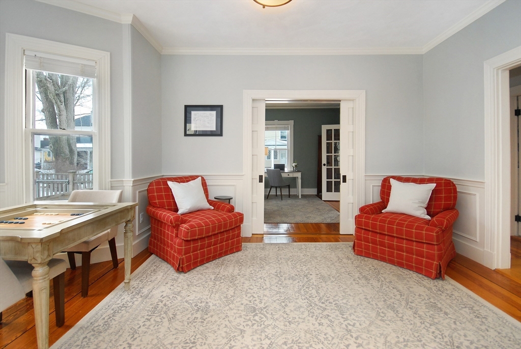 West Concord Gem perfectly situated on quiet street in the heart of the village, w cafés, library, shops, rail trail, Thoreau Elementary & commuter rail just a few blocks away. Nineteenth Century timeless charm blend w thoughtful modern comfort & stylish updates, offering the best of both worlds! Gracious, inviting foyer sets the tone for the bright, cheerful interior; open floor plan celebrates simplicity, functionality, & easy living. Adjoining kitchen, dining, family rm spaces create a harmonious flow ideal for both everyday life & entertaining. Vintage highlights: high ceilings, turn staircase, pocket & French doors, bay windows, hardwd flrs, exceptional moldings, wainscoting & built-ins. Stunning Cook's (2023) kitchen features custom cabinetry, double thick quartz countertops, island w breakfast bar, stainless appliances including a 42” Sub-Zero refrigerator & Thermador gas range w pot filler. Imagine enjoying sunrise & sunset on two bluestone patios linked by illuminated steps