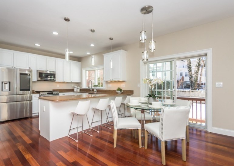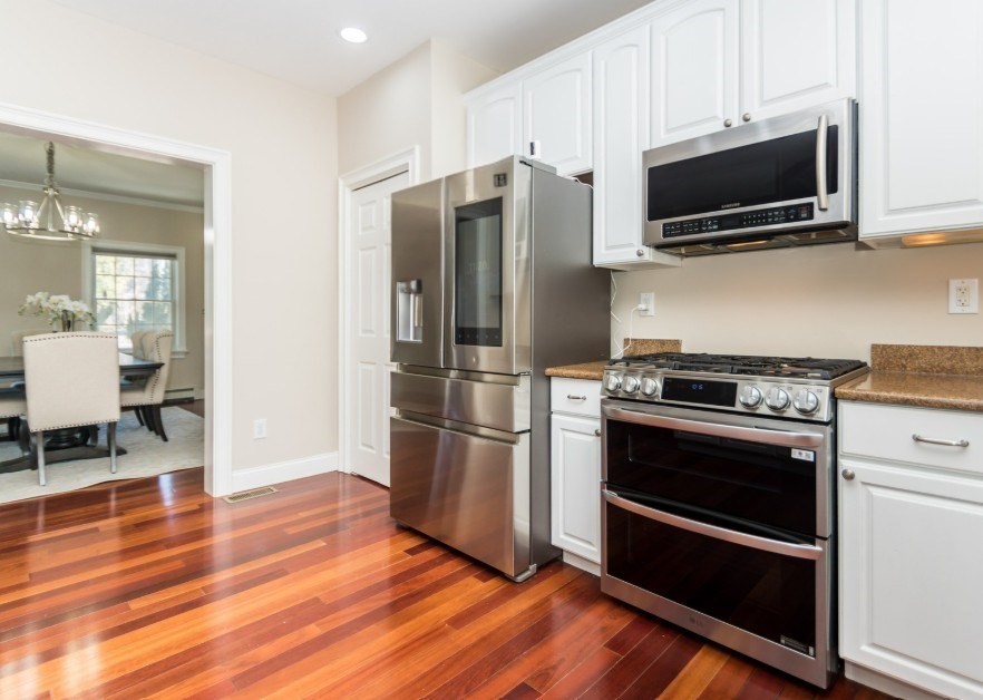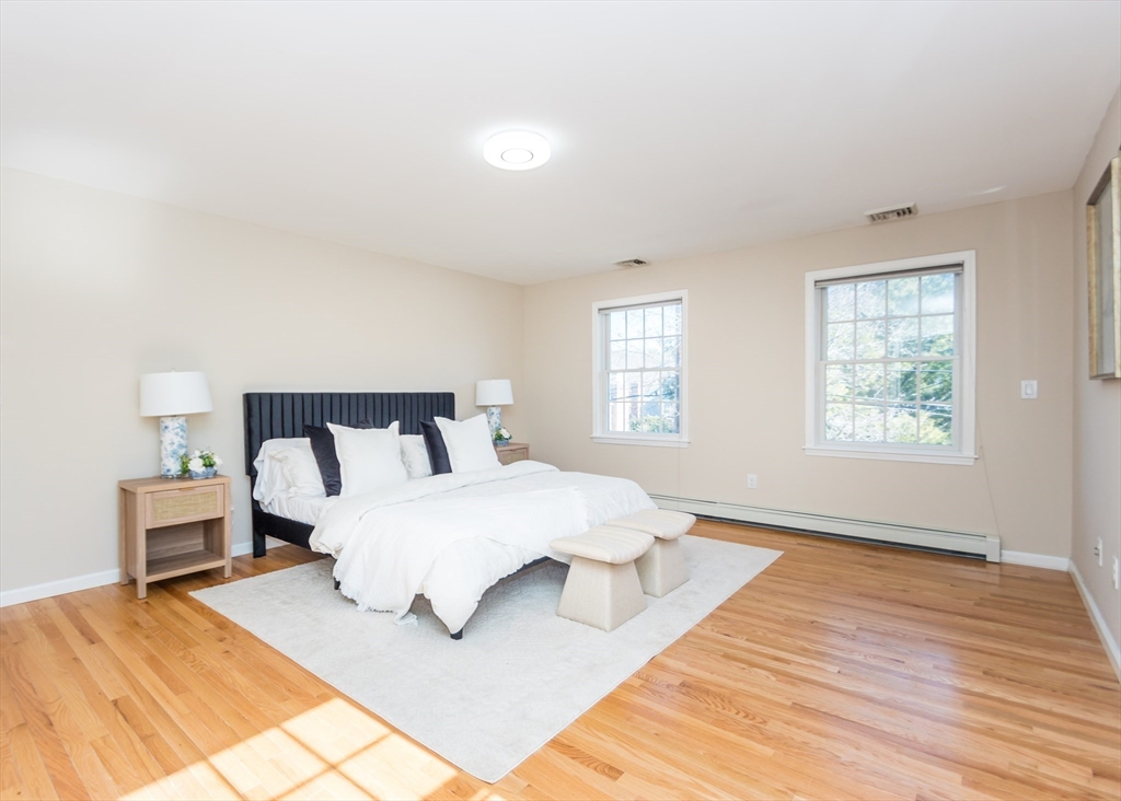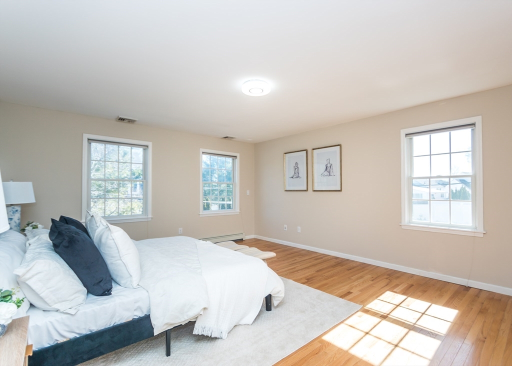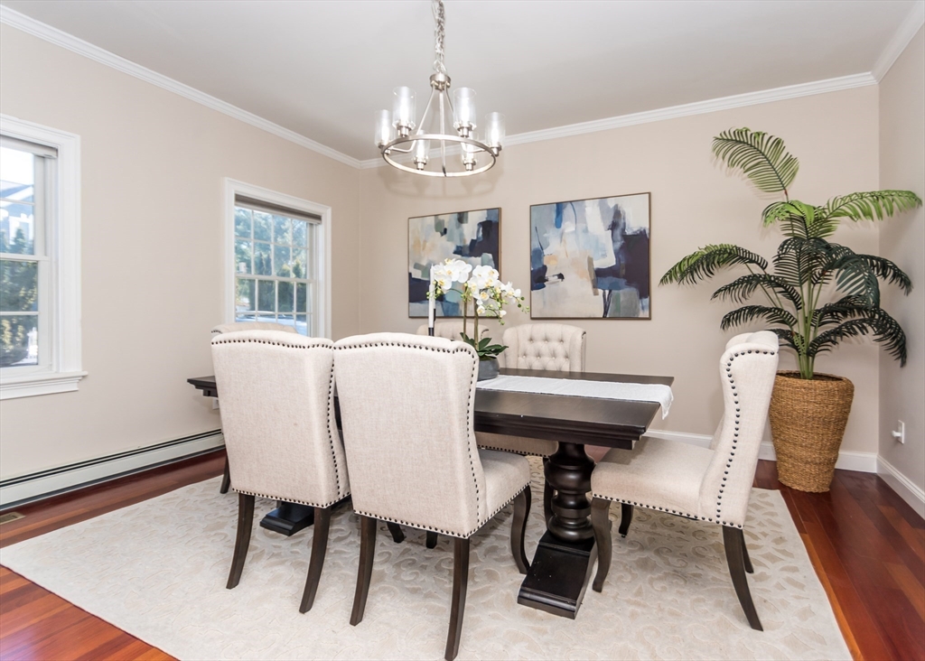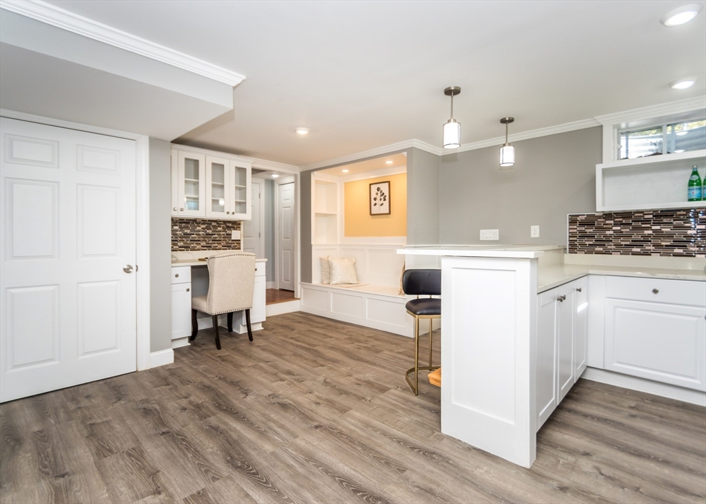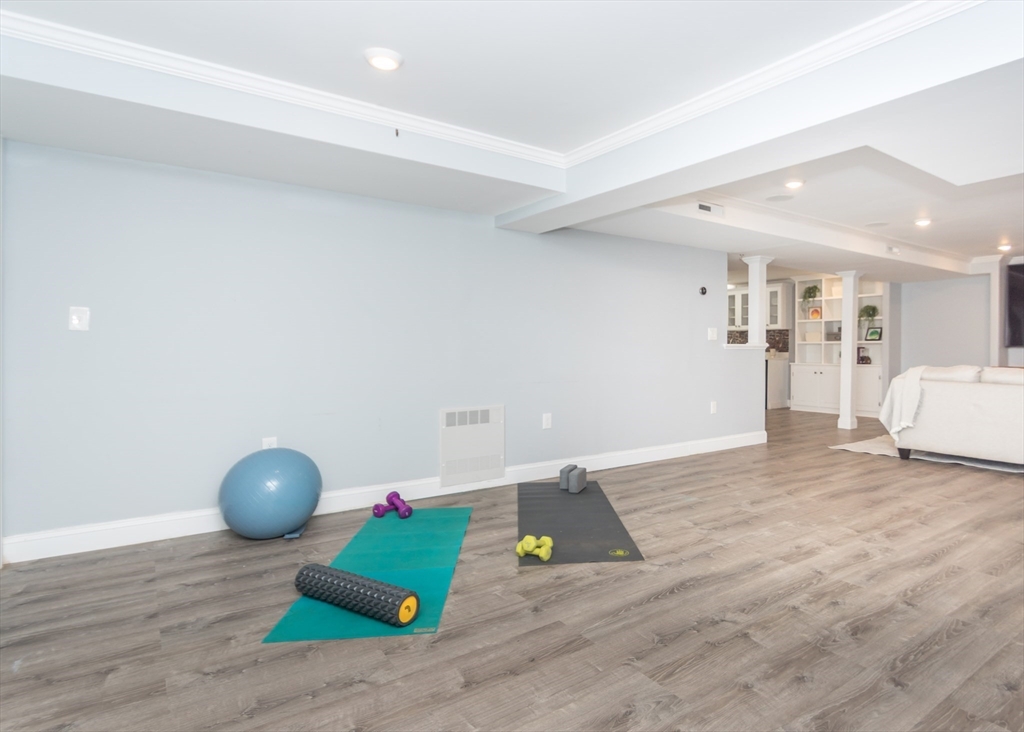 Beautiful 9-room Colonial located on a quiet cul-de-sac! This spacious home offers an open and inviting layout perfect for everyday living and entertaining. The large family room with gas fireplace flows seamlessly into the kitchen featuring stainless steel appliances, granite countertops, breakfast bar and a dining area with slider leading to a private patio and backyard. A formal dining room and powder room complete the first floor. The second level includes a generous primary suite with walk-in closet and spa-like bath, plus two additional bedrooms and a full family bath. The third floor offers two more bedrooms, full bath and convenient laundry. The finished lower level is ideal for entertaining with a wet bar and flexible space for a media room, second family room or gym space. Enjoy high ceilings, gas cooking, gas heat and a gas fireplace. Level fenced yard. Conveniently located near the Eliot School, Needham Heights shops, restaurants & commuter rail and easy highway access.
