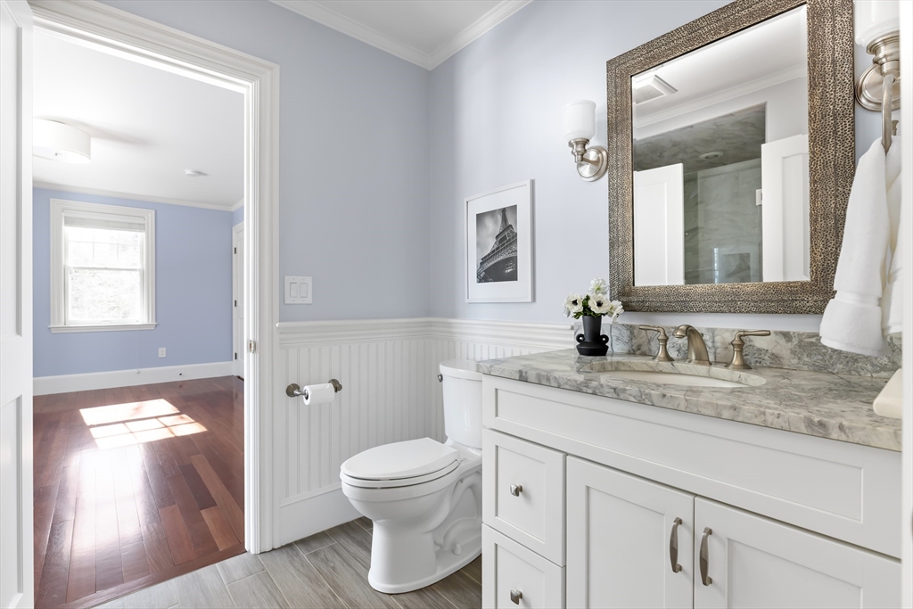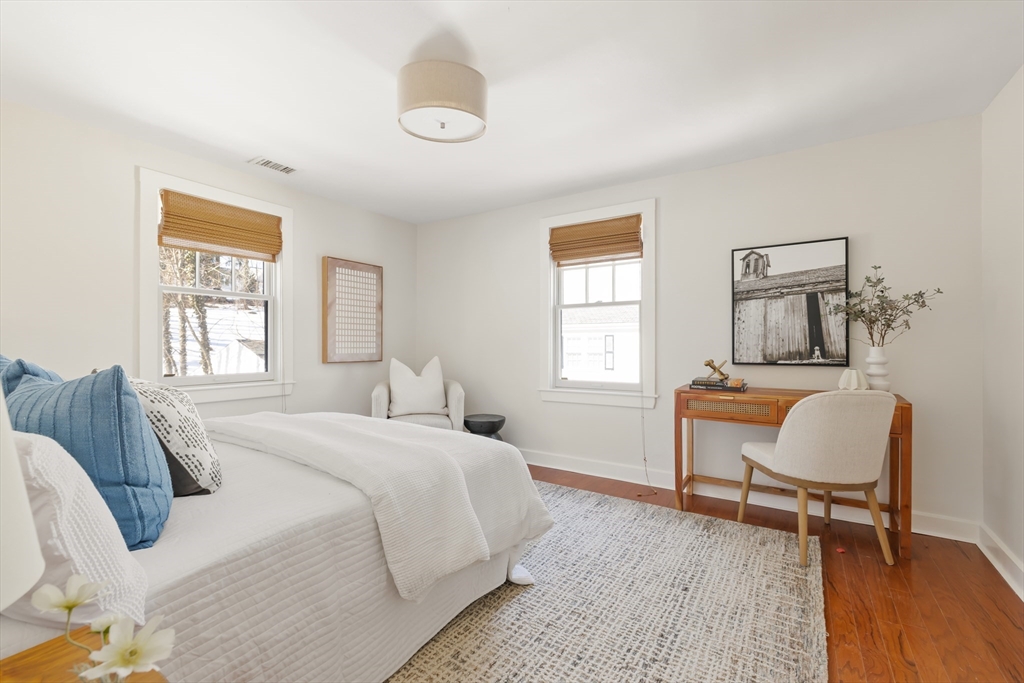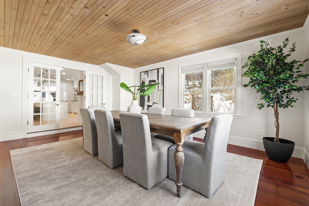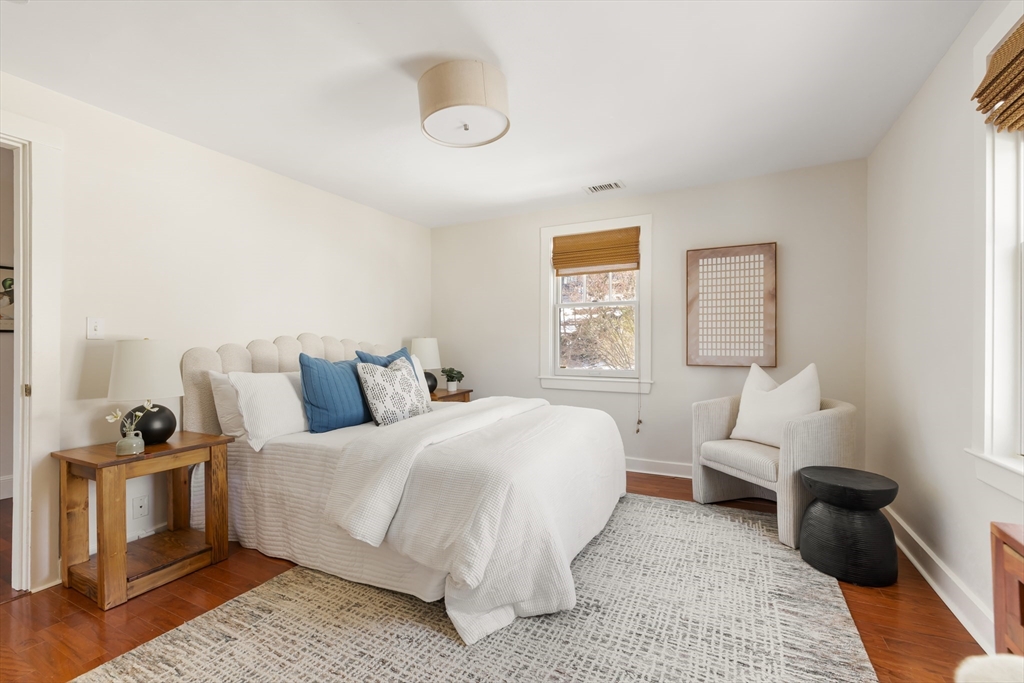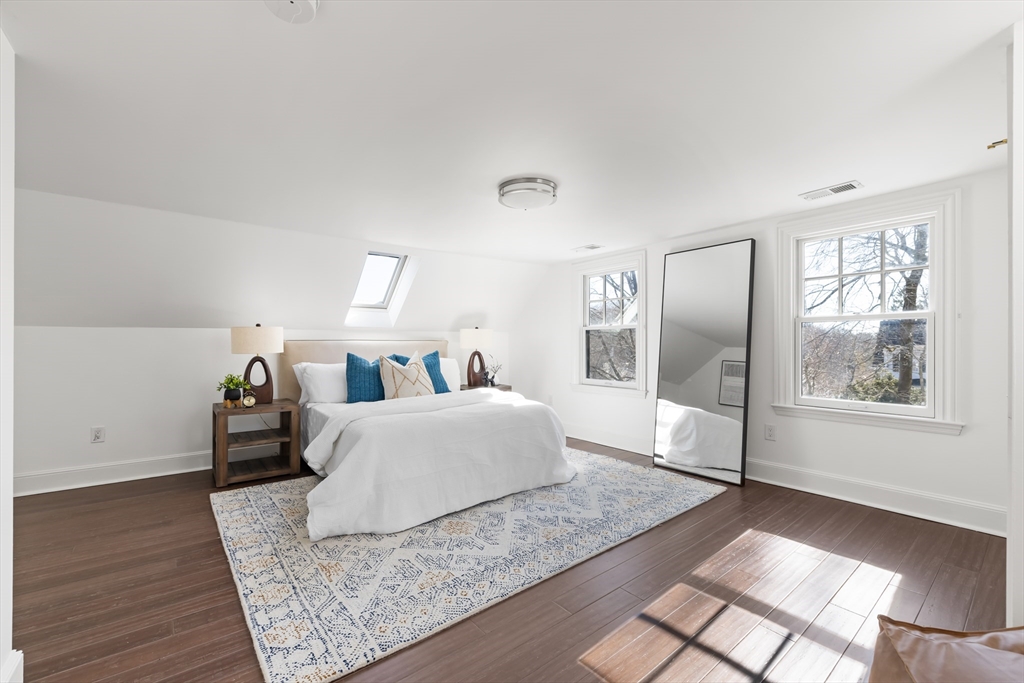 Charming Colonial in Wellesley’s beloved Poets Corner area, seamlessly blends character with modern updates. Originally built in 1905, thoughtfully expanded and renovated since, offering 6 bedrooms, 4 full bathrooms, with great flow and versatile layout. Enclosed front porch leads to formal livingroom with stunning wood floors. Bright kitchen with FisherPaykel double ovens, Subzero, counter seating, and abundant cabinetry. Kitchen opens to gracious diningroom with French doors, and huge familyroom with cathedral ceiling, built-ins, and fireplace. 1st flr has all important office, bedroom, and full bath. 2nd flr features primary suite with exposed beam, tiled shower, double vanities, soaking tub, custom walk-in closet; 2 corner bedrooms share a bathroom. 3rd flr boasts 2 spacious bedrooms and full bath. Recent updates include new HVAC systems, tankless hw and more. ½ acre+ landscaped lot provides privacy in ideal location close to Wellesley Hills, and major commuting routes.