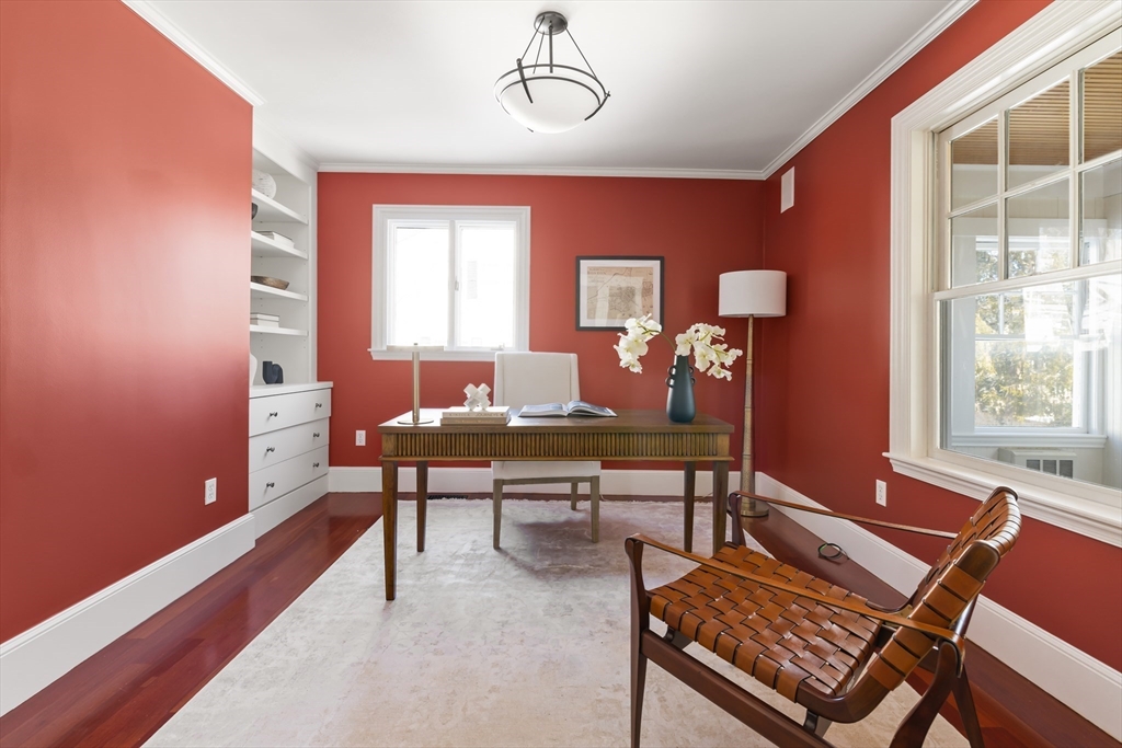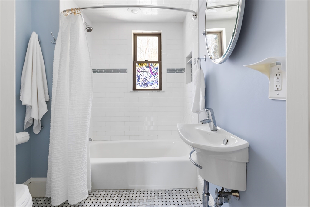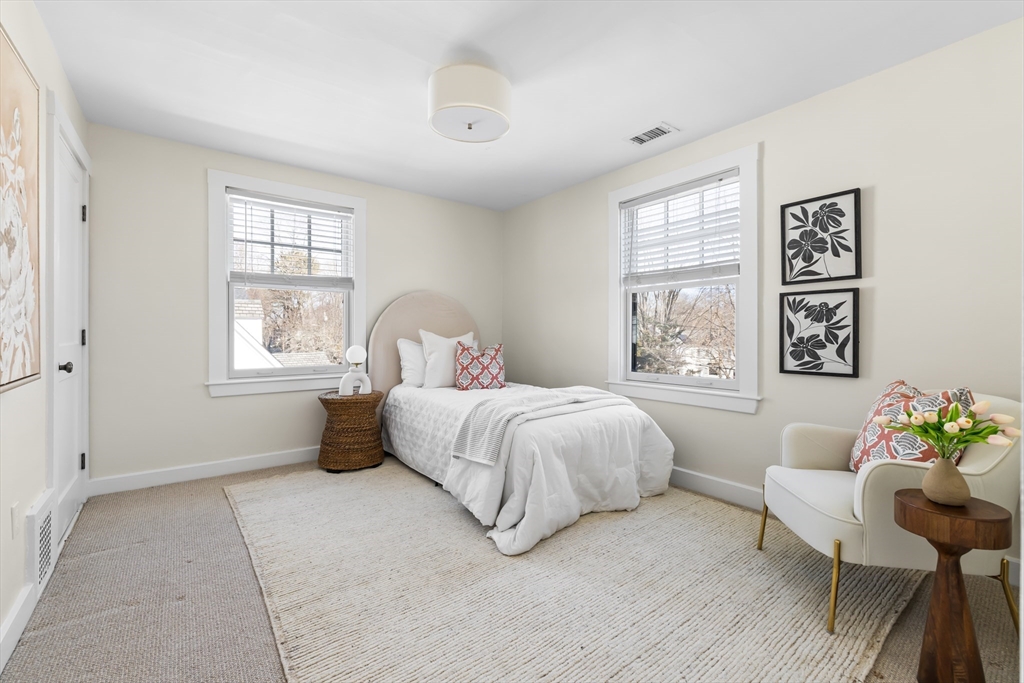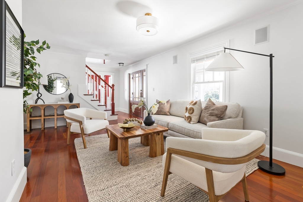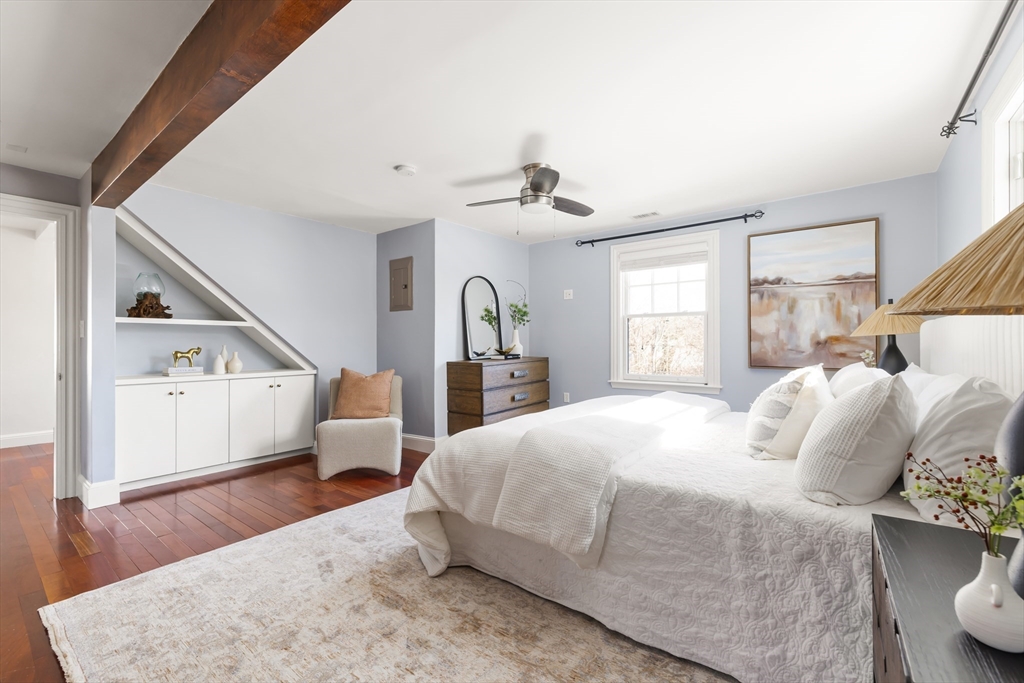 Charming Colonial in Wellesley’s beloved Poets Corner area, seamlessly blends character with modern updates. Originally built in 1905, thoughtfully expanded and renovated since, offering 6 bedrooms, 4 full bathrooms, with great flow and versatile layout. Enclosed front porch leads to formal livingroom with stunning wood floors. Bright kitchen with FisherPaykel double ovens, Subzero, counter seating, and abundant cabinetry. Kitchen opens to gracious diningroom with French doors, and huge familyroom with cathedral ceiling, built-ins, and fireplace. 1st flr has all important office, bedroom, and full bath. 2nd flr features primary suite with exposed beam, tiled shower, double vanities, soaking tub, custom walk-in closet; 2 corner bedrooms share a bathroom. 3rd flr boasts 2 spacious bedrooms and full bath. Recent updates include new HVAC systems, tankless hw and more. ½ acre+ landscaped lot provides privacy in ideal location close to Wellesley Hills, and major commuting routes.