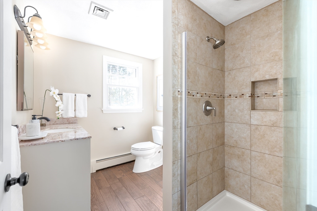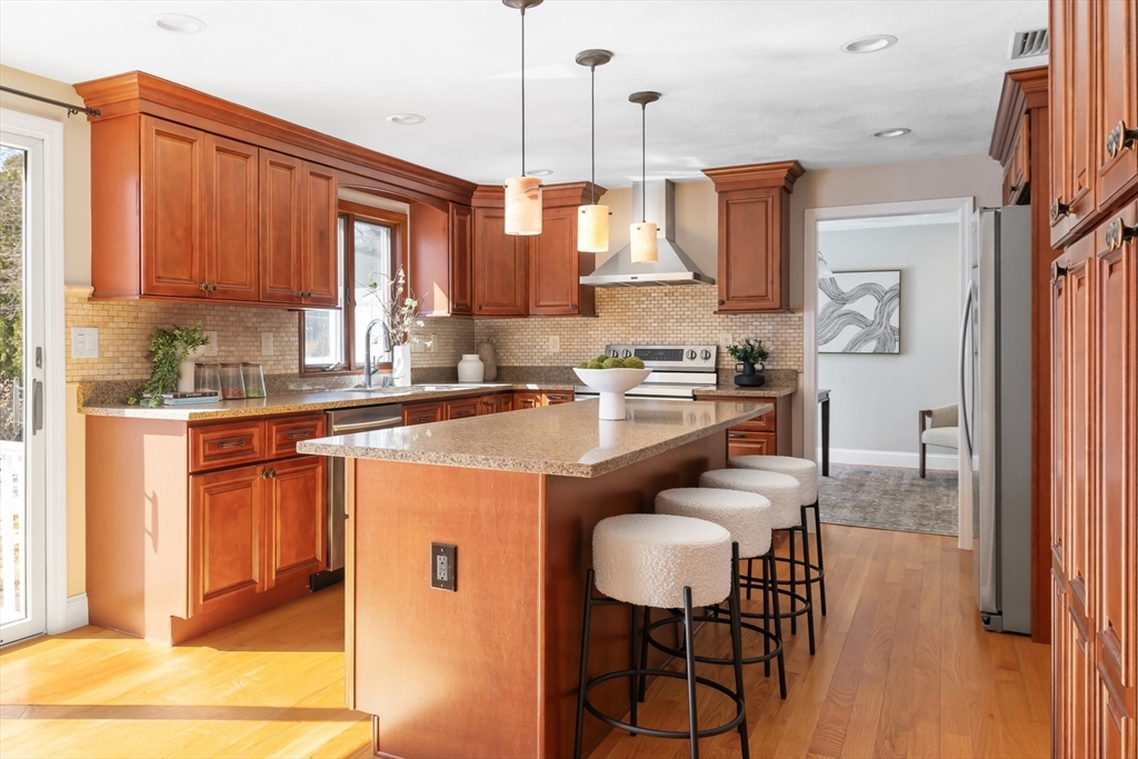 This fabulous turnkey 4-bedroom Colonial in the convenient Cochituate neighborhood of Wayland will check every box on your list! With a great flowing floor plan on the first level, you will find a generous kitchen, formal dining room, living room, office, powder room and laundry room. Also on this level but with its own separate entrances is a gigantic family room space with high ceilings, perfect for gatherings or just relaxing at home. Upstairs you will find a full primary ensuite, plus three additional bedrooms and another full bathroom. The finished lower level offers space for an office/studio, another bonus recreation/exercise room, plus plenty of unfinished storage space. The exterior of the home boasts a deck off the back, parking for at least six cards, and great open flat yard space w/storage shed. Endless recreational opportunities are nearby with Lake Cochituate and the town beach. Great commuter location plus top-rated school system makes this a home not to be missed!
