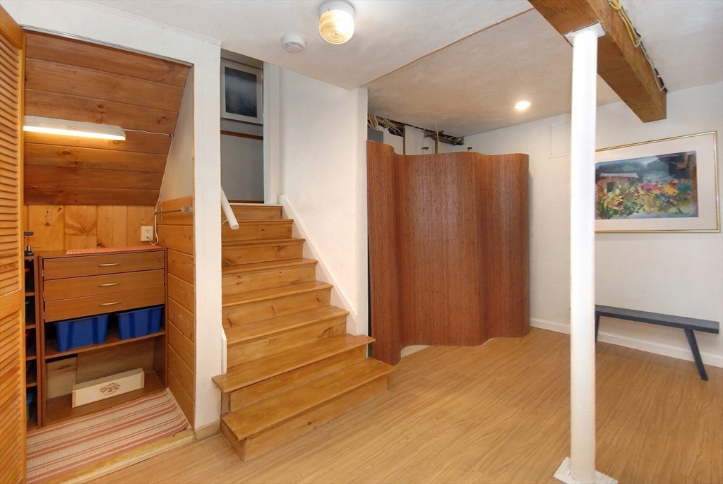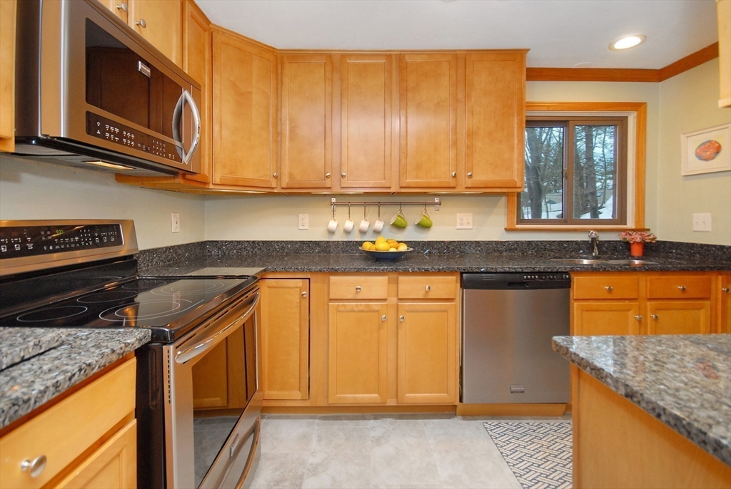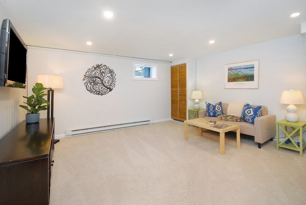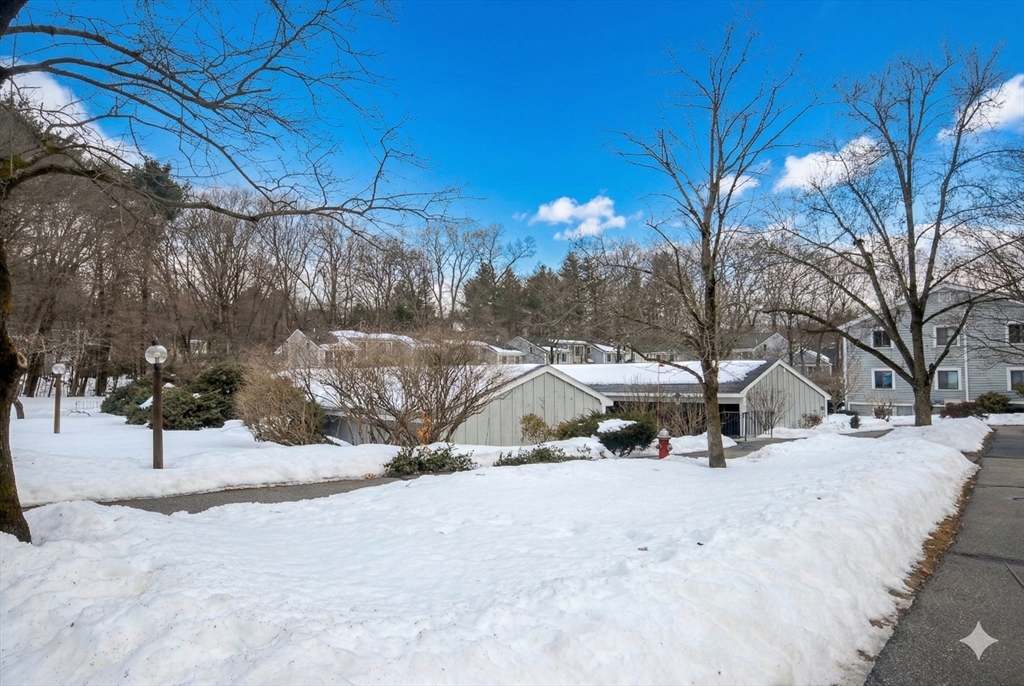 Impressive Three level West Concord Village Townhouse near the train, boutiques, Fowler library, sumptuous restaurants and Rideout playground. This Sunfilled home in impeccable condition has a brick wood burning fireplace, two oversized picture windows, hardwood floors, and is enhanced by the nearby dining alcove with glass slider leading to an extra-large private deck. Sunny, sunny, sunny. Nearby is an up-scale kitchen with stainless steel appliances, warm granite counters, and plenty of attractive cabinetry. The second level spacious primary bedroom has 2 closets, 2 picture windows with sunny views, the second bedroom is perfectly sized with tree top views. Nearby is a beautiful full bath. You'll appreciate the Dedicated laundry room. The lower-level foyer has a handyman workshop closet, a large family room with 2 closets, and an office/studio. Both lower-level rooms have new carpeting & freshly painted. This home feels like a single-family with lots of room to spread out.