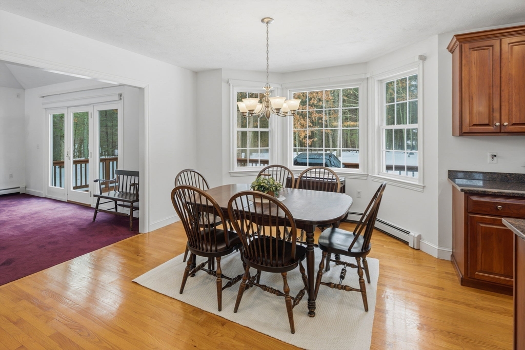 Custom-Built Colonial in the prestigious Talbott Farm Estates set on a private, serene 1.38 AC wooded lot. This home is in a beautiful setting, ready to create a lifetime of memories. The grand two story-foyer leads to spacious living areas with hardwood floors. French doors open to the dining room/home office. The chef's kitchen has cherry cabinets, a granite center island, double ovens, dry bar/hutch & a sunlit dining area with a walk-out bay. The kitchen opens to an expansive Great room featuring a vaulted ceiling, fireplace, custom windows & French doors leading to an oversized deck. Pocket doors create privacy for the entire rear living area. The kitchen has a pantry closet, half bath, laundry room, & direct access to garage & basement. The second level presents all new carpet, a primary ensuite with bath, 3 additional BR, full bath, walk-up attic. LG 4th BR could be a bonus room. Partially finished basement offers extra space with garage access. Town Water. Commuters dream.