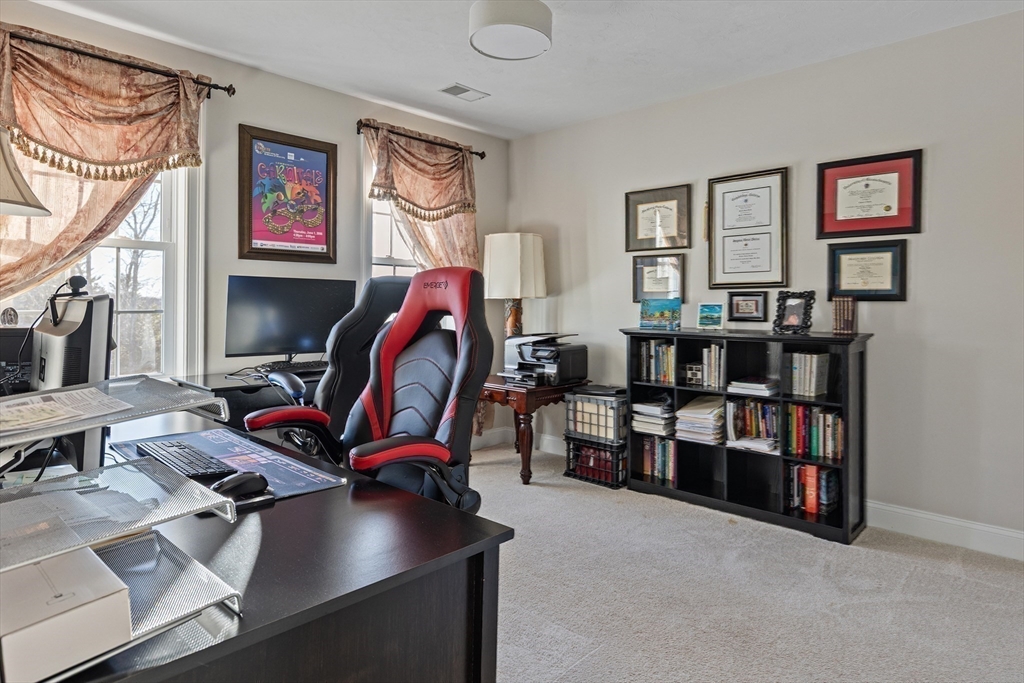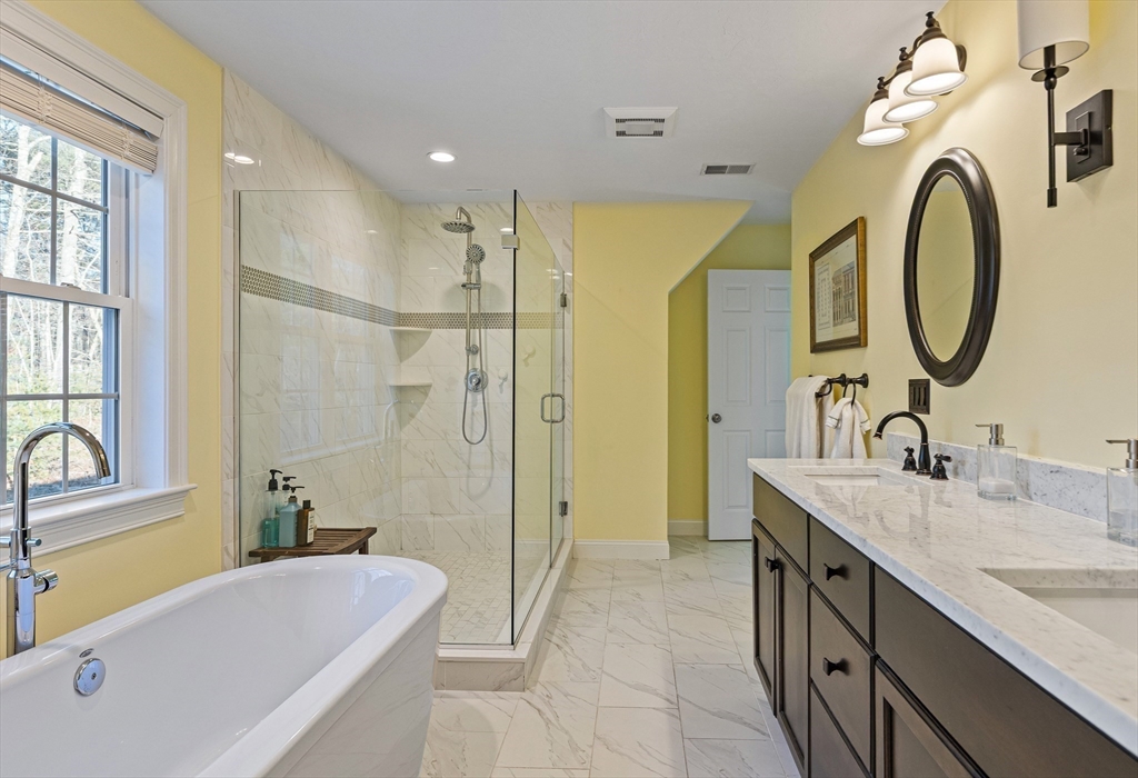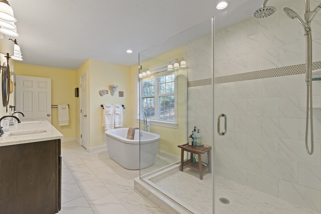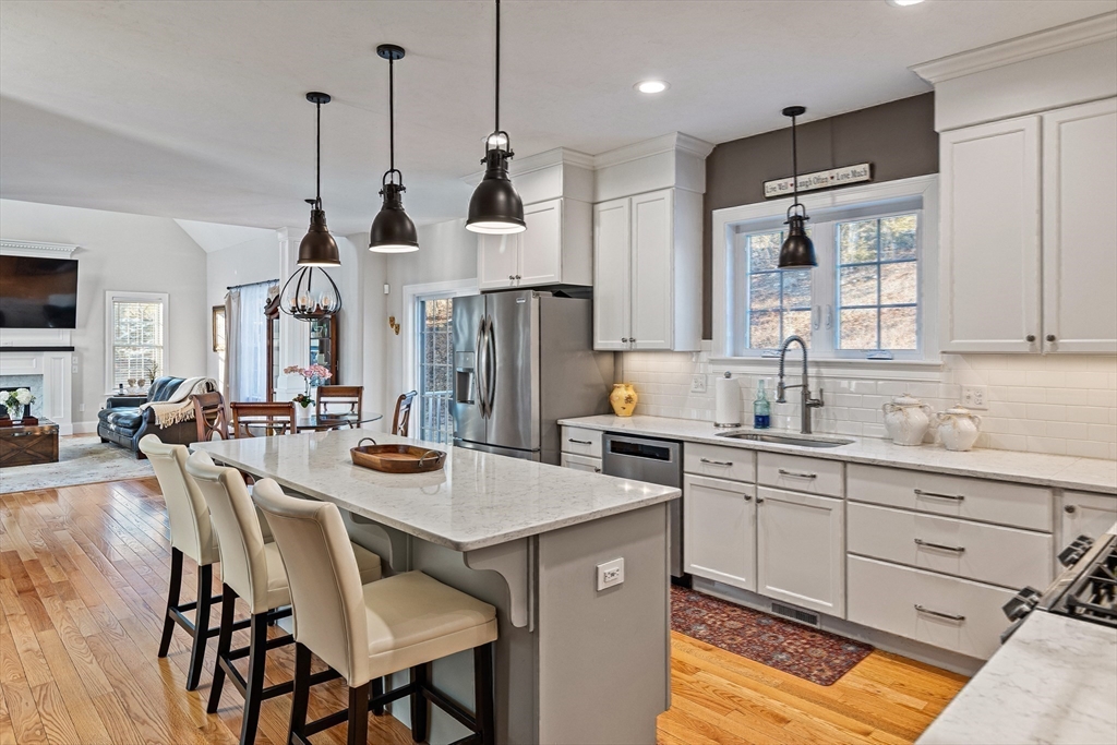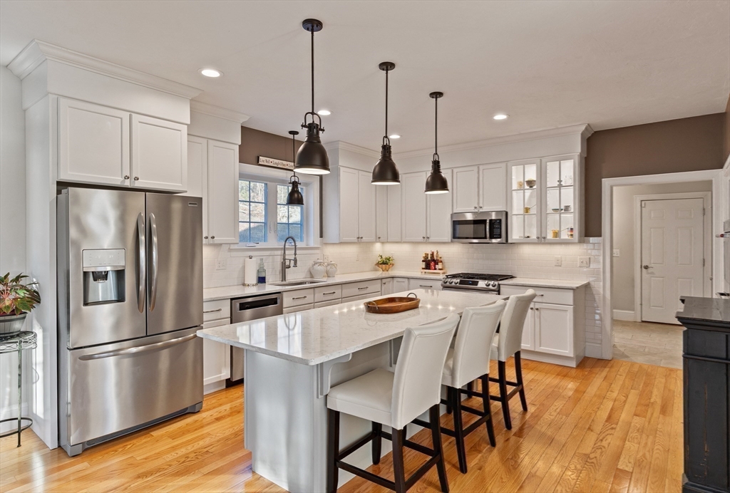 Stunning Colonial sited on large lot in desirable Miscoe Hill neighborhood. Fabulous cul-de-sac location. This home has all the bells & whistles for your most discriminating buyers. First floor features a magnificent, upgraded Kitchen; spectacular, sun-lit Great Room with custom columns, cathedral ceiling & tastefully designed gas fireplace; formal Dining Room with beautiful moldings; functional Office or Library, fantastic Butler's Pantry with 2nd dishwasher, sink & wine chiller; attractive Mud Room & a half bath. Loads of hardwood flooring! Second floor has a Primary Suite with fabulous lighting, a cathedral ceiling, custom designed organizer closet & a luxurious Primary Bath. There are also 3 additional good size Bedrooms & an additional Full Bath. The Lower Level has 680 sq ft of tastefully designed finished space with separate heating and cooling. Professionally landscaped with magnificent views and breathtaking sunsets. A perfect home for relaxing family times or entertaining!!!