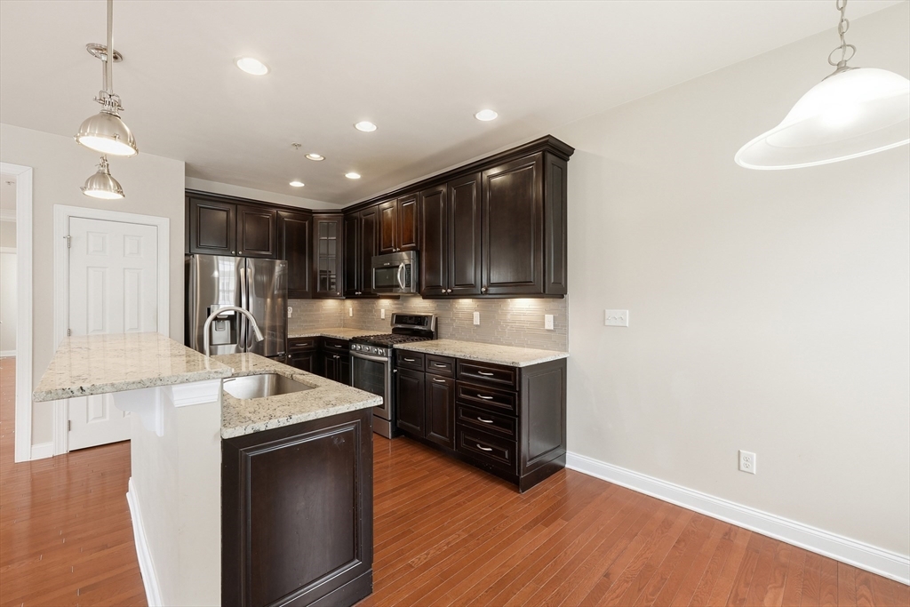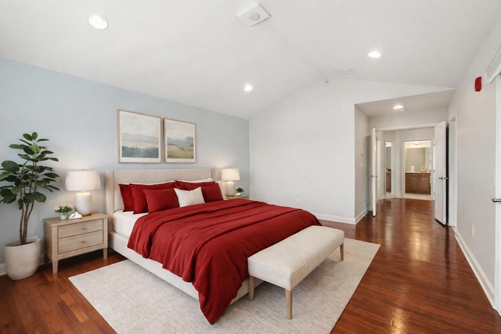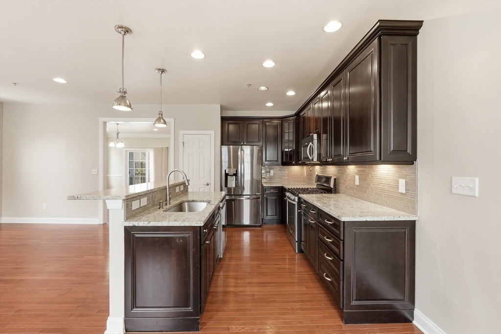Meticulously maintained, this stunning townhome offers three spacious levels of living in one of Westborough’s most desirable communities. The bright, open layout features hardwood floors and seamless flow for everyday living and entertaining. The gourmet kitchen, featuring timeless classic cabinetry, a gas range, stainless steel appliances, and a granite island, opens to a living room with a cozy gas fireplace and formal dining area, flowing seamlessly into an airy formal living room. Upstairs, the cathedral-ceiling primary suite includes a Jacuzzi tub, separate shower, walk-in closet, and scenic views, plus two additional bedrooms and full bath. The lower level provides flexible bonus space, mudroom, storage, and direct garage access. Enjoy community amenities including a swimming pool, clubhouse, fitness center, and beautifully maintained grounds. Excellent school district, just 0.7 miles to MBTA commuter rail to South Station, with easy access to Route 9, restaurants and shops.