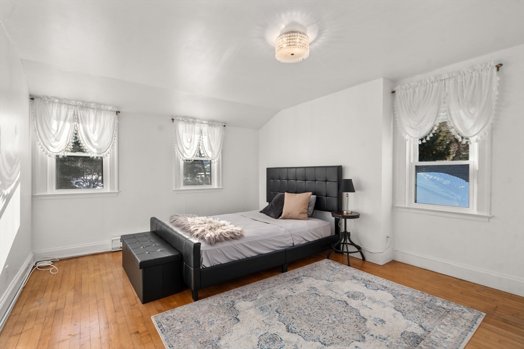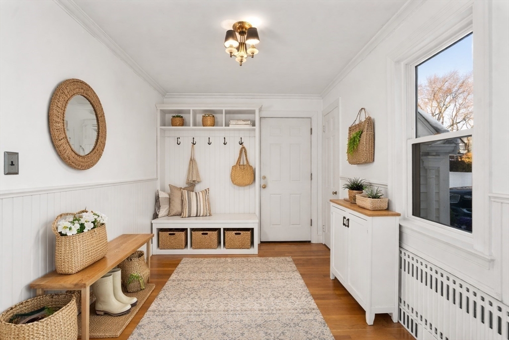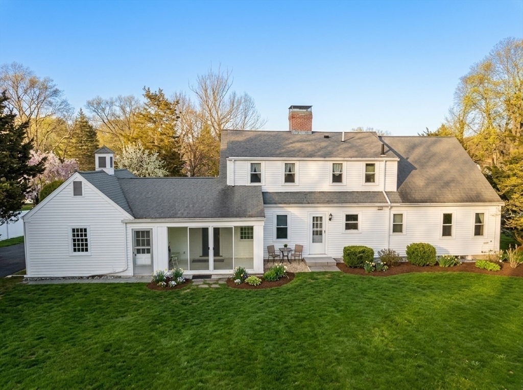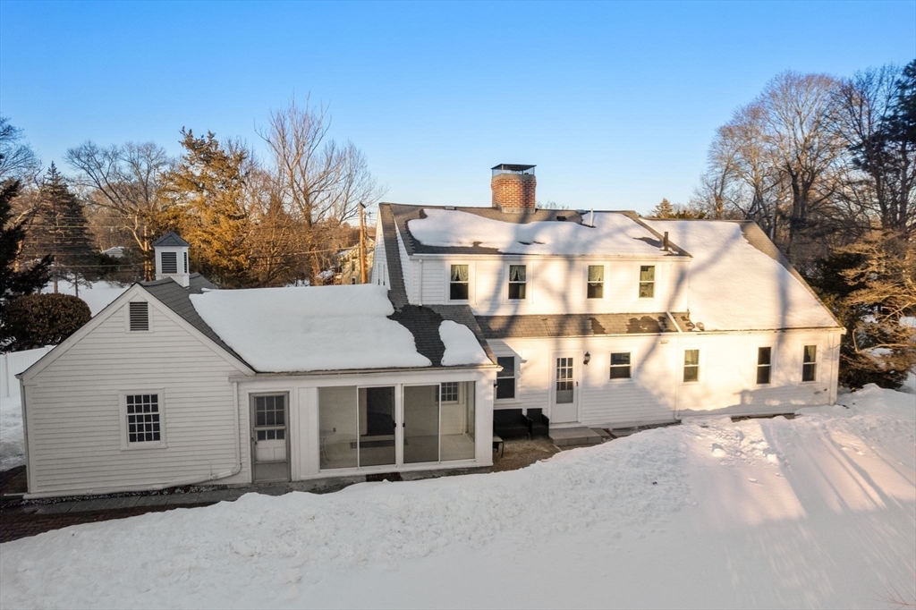 Pure elegance defines this sprawling Royal Barry Wills Cape on a picturesque ½-acre corner lot near the Wayland line. Showcasing Wills' signature oversized central chimney, this home reflects timeless design and architectural charm. The sun-filled interior features curved archways, gleaming hardwoods, and a striking slate staircase. Entertain in the grand fireplace living room, dine under a statement chandelier, or cook in the modern chef’s kitchen with richly colored cabinetry. Offering 4 exceptionally spacious bedrooms, the layout provides flexibility for a 1st or 2nd-floor primary suite. The upper level includes 2 large bedrooms, 2 full baths, a sitting area/study and a kitchenette, perfect in-law potential. Complete with an attached garage, mudroom, glass-enclosed sunroom, and an unfinished walk-out basement for future expansion. The private fenced-in grounds feature a beautifully maintained, in-ground pool, offering a refined retreat in a prime location. Love Where You Live!