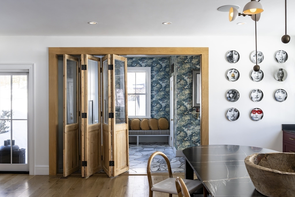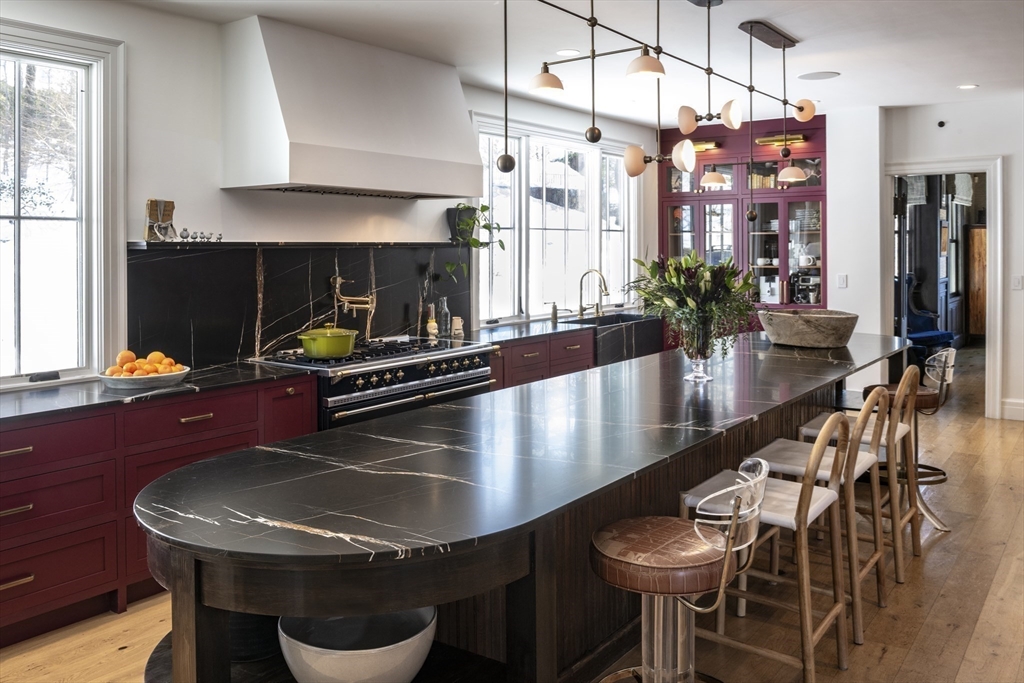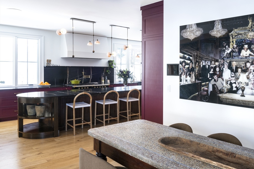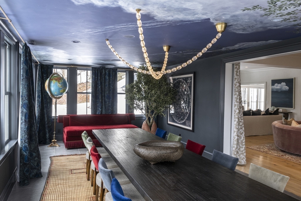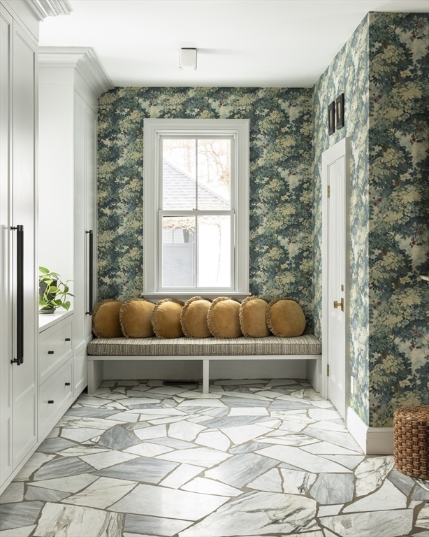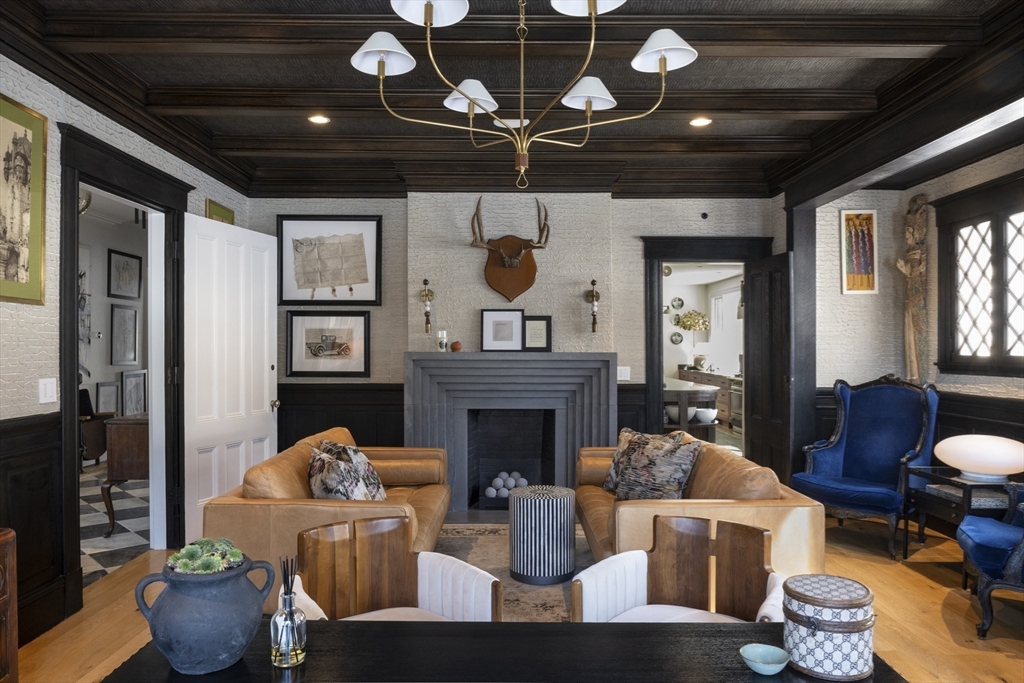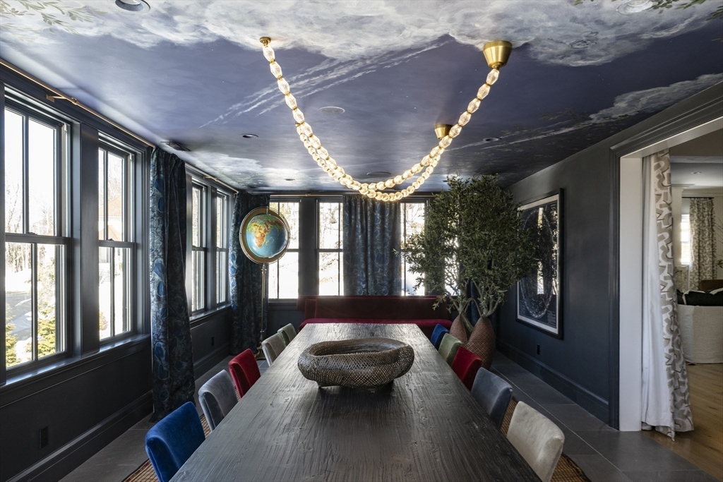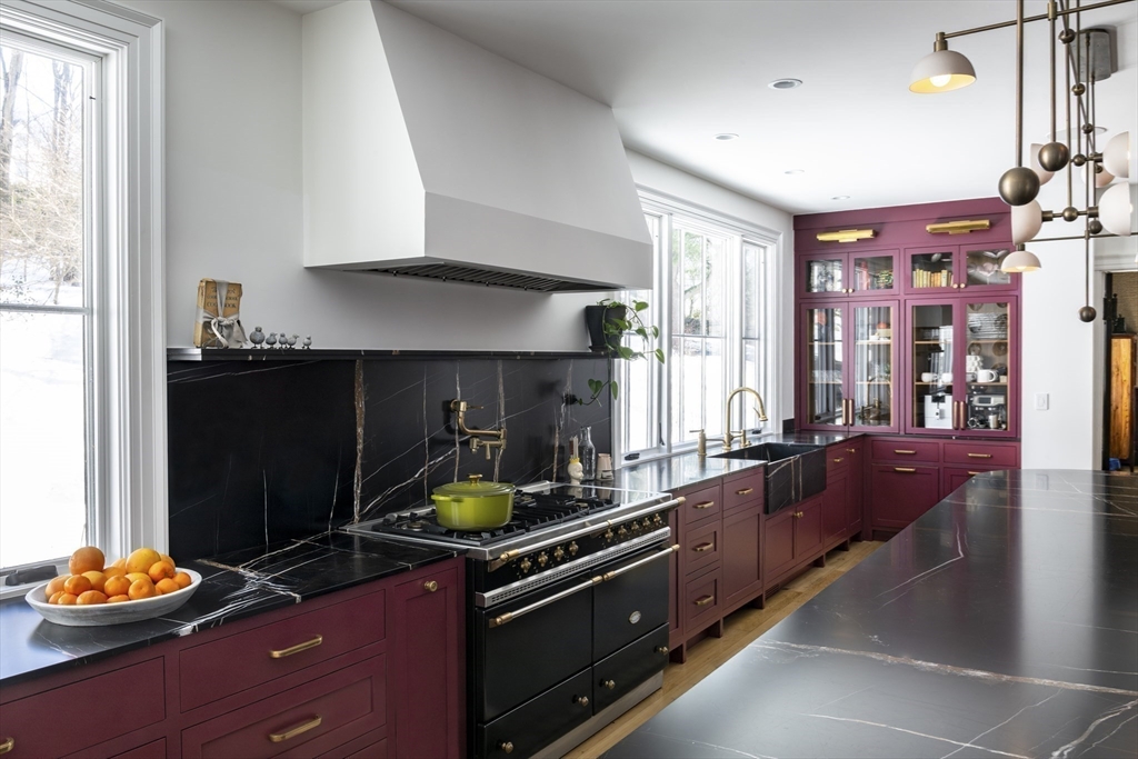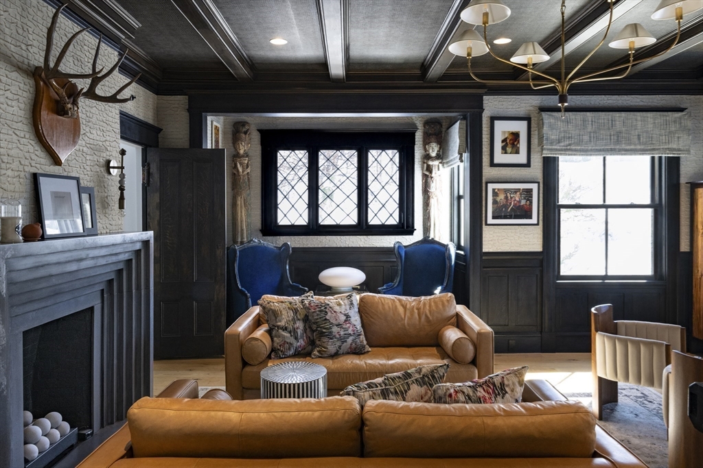 Reimagined from the studs out, this exquisite home reveals a masterful renovation blending timeless character with exceptional design. A grand foyer makes an impression with a Turkish marble checkerboard floor and a bespoke stair runner handcrafted from vintage rugs. Wide-plank European white oak floors, soaring ceilings, custom plaster walls, and curated designer lighting create a warm, layered aesthetic that is refined and inviting. Dual marble fireplaces anchor the living and family rooms. The kitchen- which is a work of art- pairs sculptural lighting, Sahara Noir marble countertops, a coveted Lacanche range and a one-of-a-kind island crafted from a reclaimed train station desk. The pantry continues the elevated palette. Reclaimed/heated Moroccan limestone floors grace the dining room under a custom mural. There's a richly paneled study, and each spa-inspired bath combines marble, fine tile work, Waterworks and Kallista fixtures. Perfectly located near the Brook Path, shops/train!