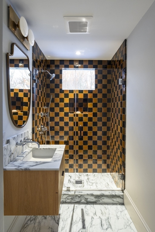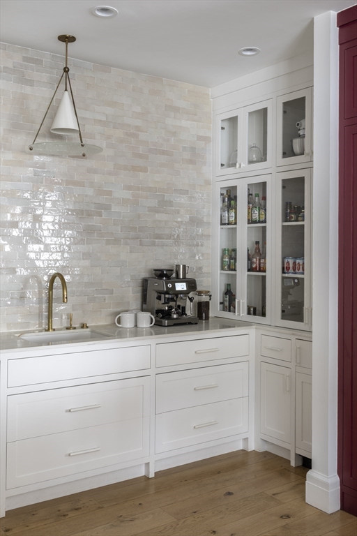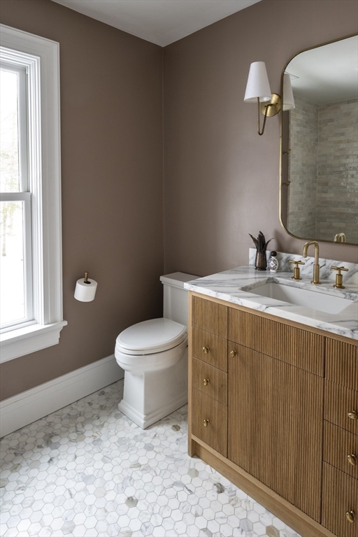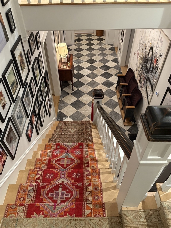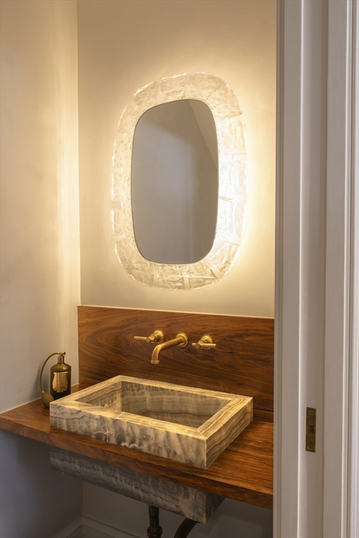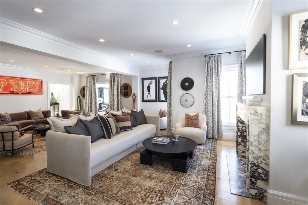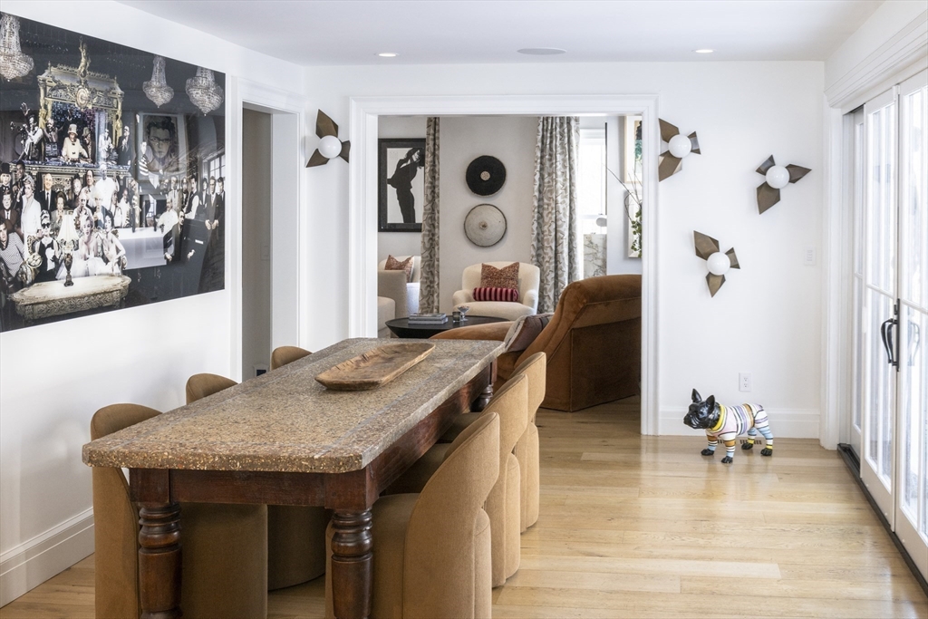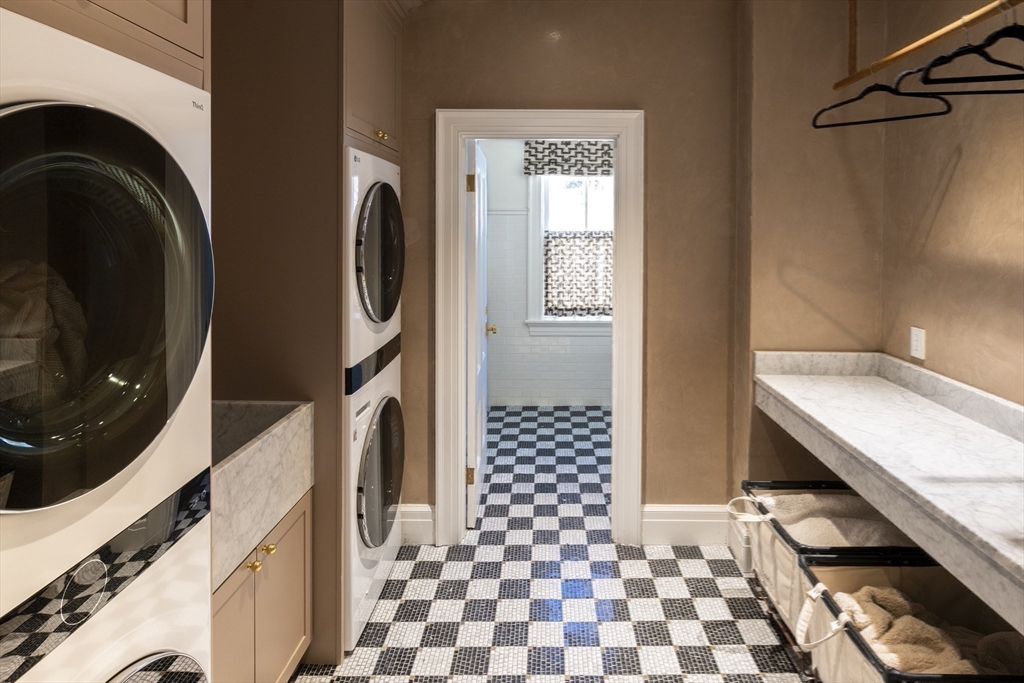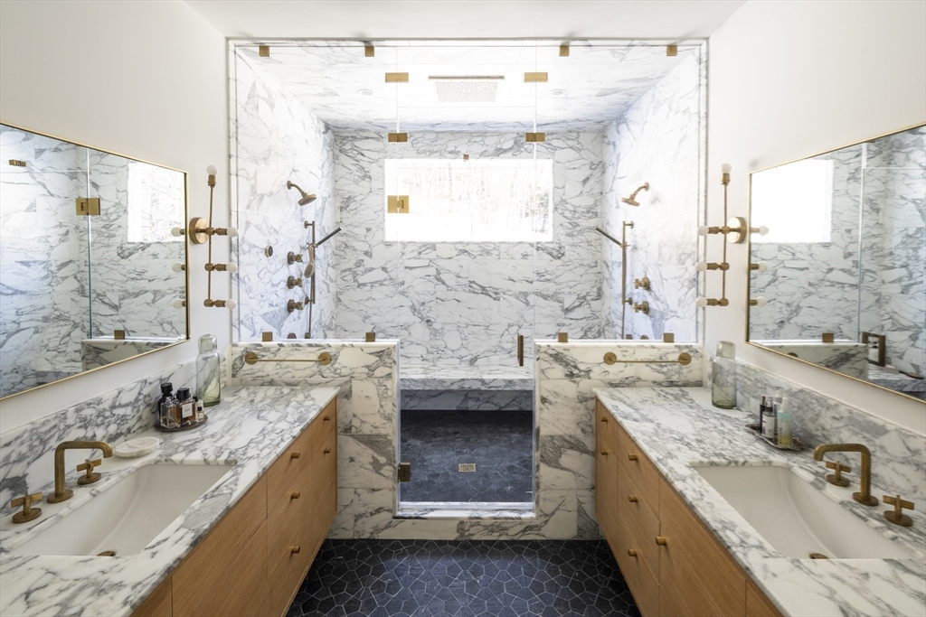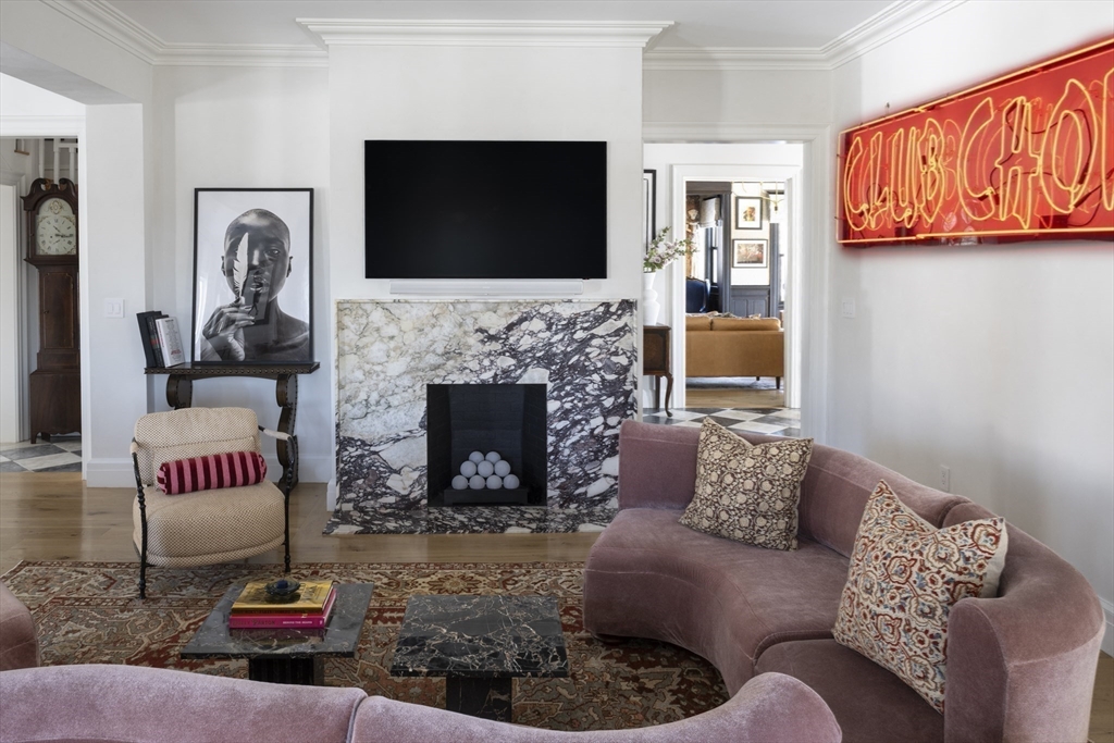 Reimagined from the studs out, this exquisite home reveals a masterful renovation blending timeless character with exceptional design. A grand foyer makes an impression with a Turkish marble checkerboard floor and a bespoke stair runner handcrafted from vintage rugs. Wide-plank European white oak floors, soaring ceilings, custom plaster walls, and curated designer lighting create a warm, layered aesthetic that is refined and inviting. Dual marble fireplaces anchor the living and family rooms. The kitchen- which is a work of art- pairs sculptural lighting, Sahara Noir marble countertops, a coveted Lacanche range and a one-of-a-kind island crafted from a reclaimed train station desk. The pantry continues the elevated palette. Reclaimed/heated Moroccan limestone floors grace the dining room under a custom mural. There's a richly paneled study, and each spa-inspired bath combines marble, fine tile work, Waterworks and Kallista fixtures. Perfectly located near the Brook Path, shops/train!