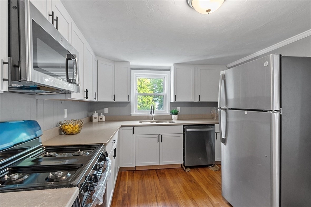 Welcome to this beautifully renovated and conveniently located two-family home in Lynn, situated directly across from the Market Basket Plaza with easy access to shopping, dining, public transportation, and Boston. The first unit features a bright layout with a welcoming kitchen, large living room, two spacious bedrooms, and one full bath. The second unit offers a comfortable living room, an updated kitchen with a breakfast bar, three bedrooms, and one full bath. Both units have been updated with redone hardwood floors, renovated kitchens and bathrooms, creating a modern feel throughout. Additional highlights include laundry in the basement, a newer roof, 4+ off-street parking spaces, and an oversized backyard ideal for relaxing or entertaining, making this property a great opportunity for both owner-occupants who are also looking for additional rental income! Unit 2 is currently leased for $2500 a month until 11/30/2026