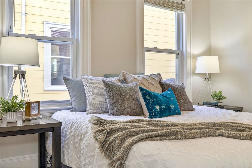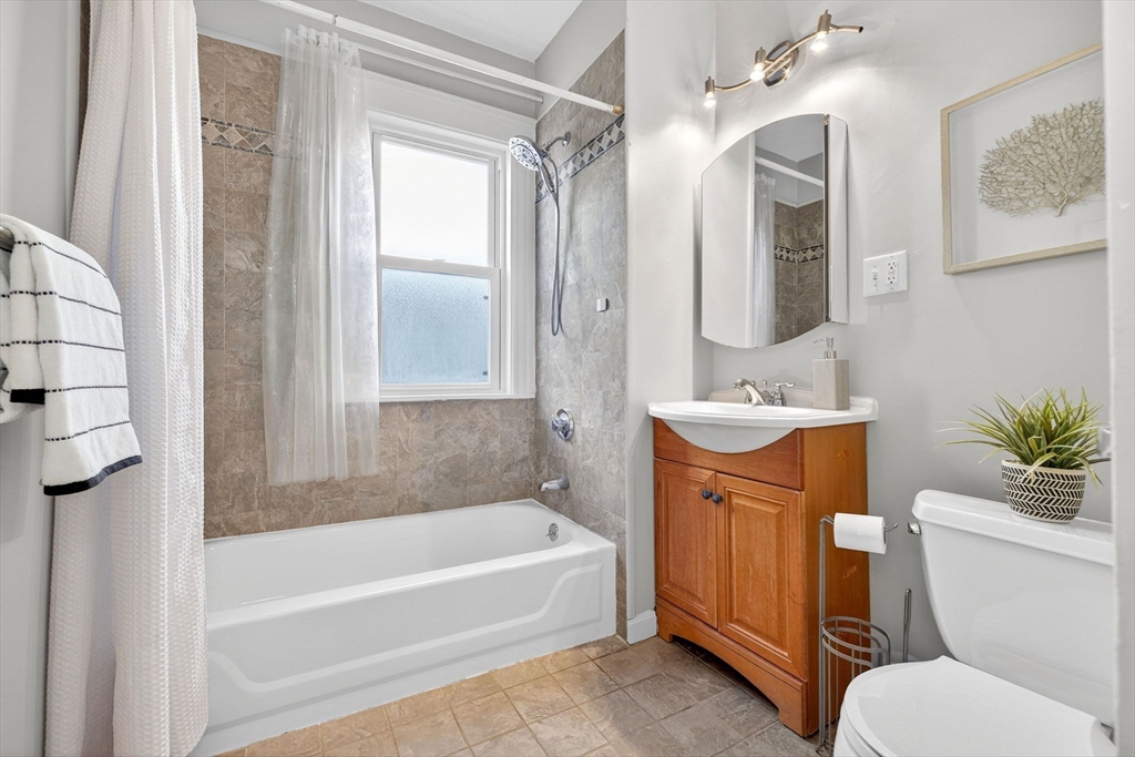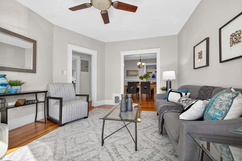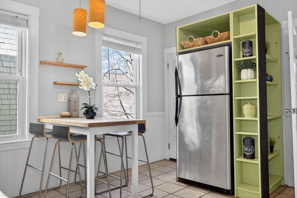 Classic JP charm meets abundant potential at 12 Woodlawn St. This bright, airy 3-bed, 1.5-bath condo sits in a traditional Boston three-decker on a quiet, dead-end street. The circular layout flows from the entry foyer into a sun-drenched living room with a large bay window and a formal dining room featuring an original built-in hutch. An adjacent "flex" bedroom with double doors serves perfectly as a study, nursery, or guest room. The oversized kitchen offers ample storage, an induction range, a butcher block island, and a rare half-bath with in-unit laundry—a major JP bonus. Two additional large bedrooms accommodate king-sized beds. With fresh paint and newly refinished fir floors, this home is move-in ready while offering opportunity to make it your own over time. Just minutes from the Arnold Arboretum, the SW Corridor, and Forest Hills station, it’s a reminder that the best home features haven't changed in a century: good light, solid craftsmanship, and a quick trip to the train.