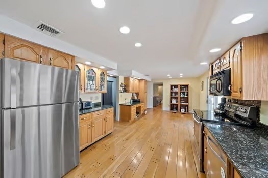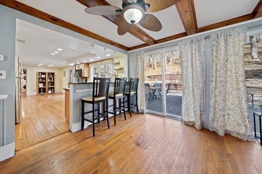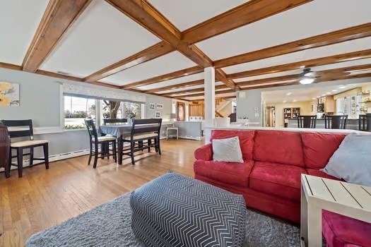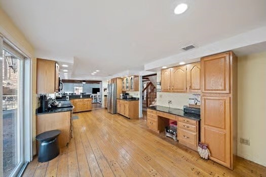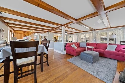 Expansive Cape with a flexible in-law apartment & space for everyone. The main level features an open living & dining area with hardwood floors, abundant natural light, & charming wood beams. The large kitchen offers granite counters & stainless appliances, with 3 sets of sliders leading to a spacious patio. Just off the kitchen is a versatile bonus area with laundry & a 1/2 bath that connects to the private in-law suite, & could be used for either side of the home. The suite includes a generous living & dining space with its own front & back entrances, access to its own fenced yard, a spacious bedroom with an oversized closet, & a private bath with shower. Upstairs are 3 bedrooms plus a bonus room currently used as a fourth bedroom, along with a full bath featuring double vanities & a tub/shower. The lower level adds even more flexibility with a home office, full bath, additional laundry space, storage, & access to the 2-car garage. Ideally located in a sought-after North Weymouth.