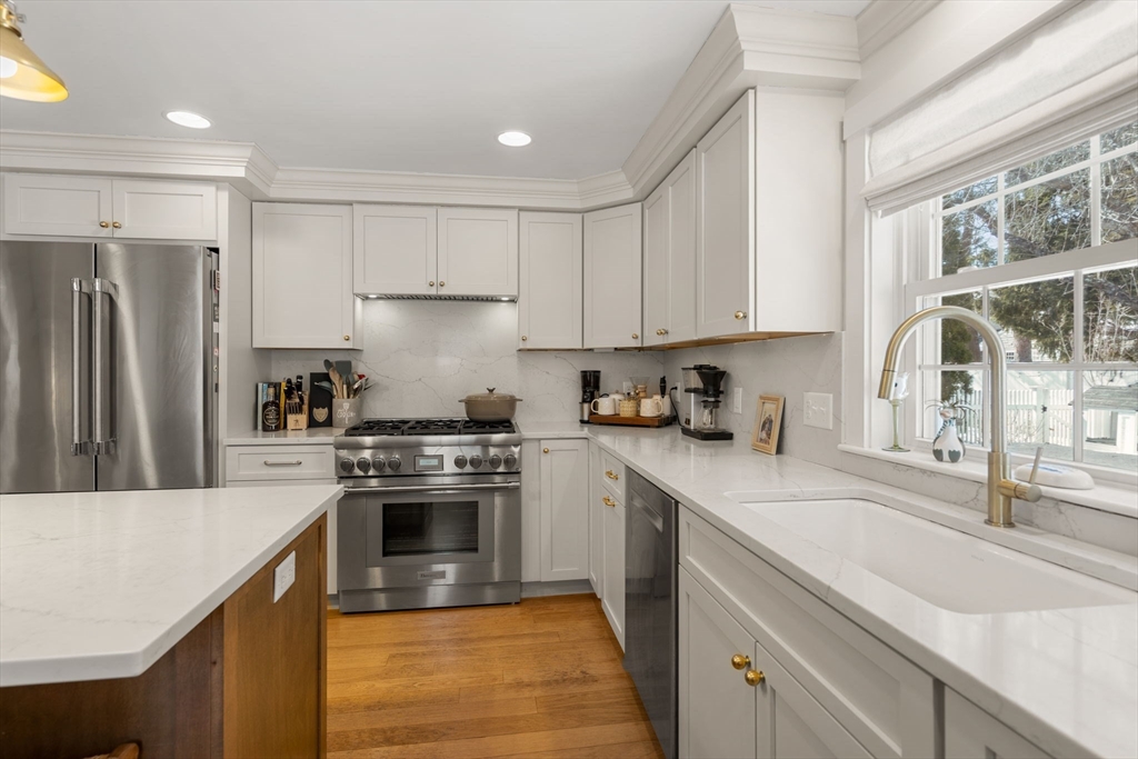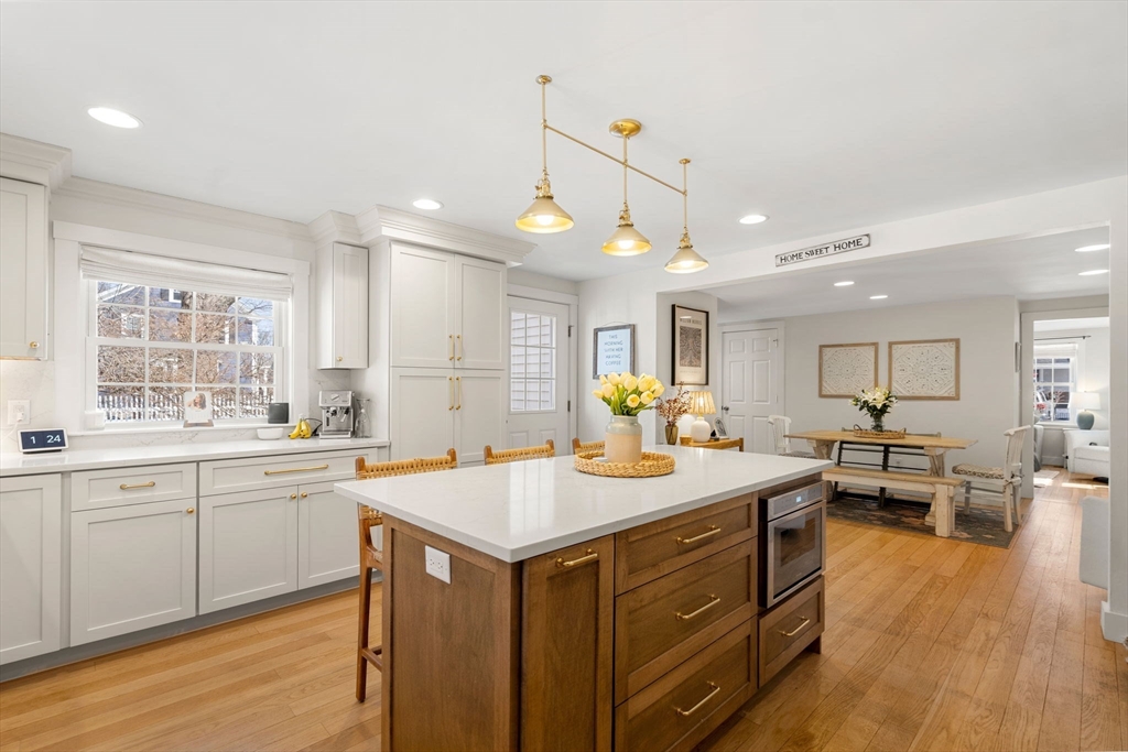 Love where you live in 2026 with this beautifully reimagined 4-bedroom, 2.5-bath residence in the heart of Newburyport's North End. This fully renovated home blends timeless elegance with modern luxury, featuring rich hardwood floors & sun-drenched interiors throughout. The stunning chef’s kitchen serves as the centerpiece of the home, showcasing a large quartz island, sleek stainless steel appliances & a seamless open-concept flow into the dining area—perfect for entertaining & everyday living. Two inviting living spaces provide flexibility for relaxation, gatherings and play. The main level offers the convenience of a spacious bedroom, a full bath, and a laundry room. Upstairs, three generously sized bedrooms create a peaceful retreat. Venture outside to a private, enclosed backyard with a patio & deck, ideal for outdoor entertaining. A detached two-car garage offers additional storage. Just minutes from Newburyport’s vibrant downtown, waterfront, Atkinson Common and commuter routes.