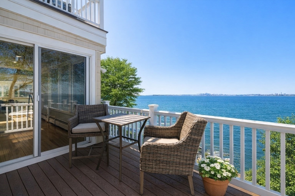 Expansive ocean views greet you from nearly every room in this stunning coastal home,thoughtfully designed to maximize your connection to the sea. The open-concept living and dining area showcases a wall of ocean-facing windows—perfectly framing sunsets and the Boston skyline. A renovated kitchen features stainless steel appliances, a granite peninsula, and seamless flow for effortless entertaining. In the spa-inspired full bath, radiant heated floors, a soaking tub, and sophisticated tilework create a true retreat. Curl up by the wood-burning fireplace accented by built-in bookshelves, or step outside to private oceanfront decks. Upstairs, 3 bedrooms include two with access to expansive Trex decks that seem to float above the water. Recent updates include a Navien heating system, new roof, piping and insulation, and owned solar panels for energy efficiency With 2 car parking and direct beach access, this exceptional property offers the ideal oceanfront lifestyle. No flood insurance.