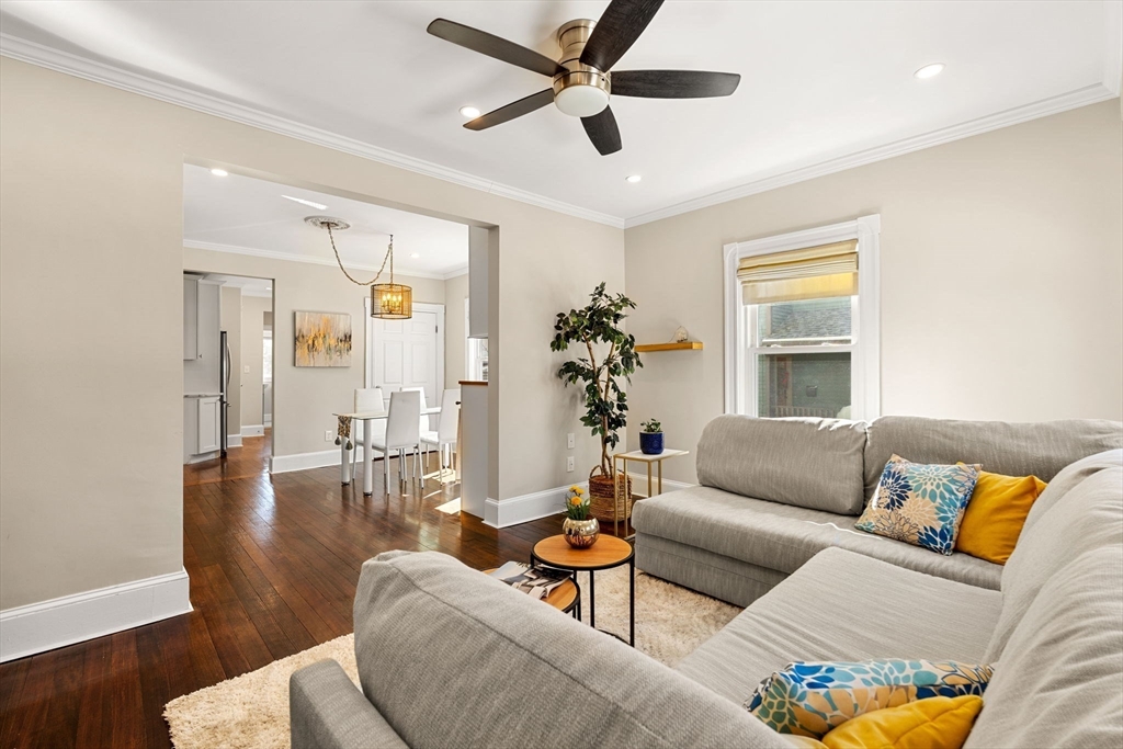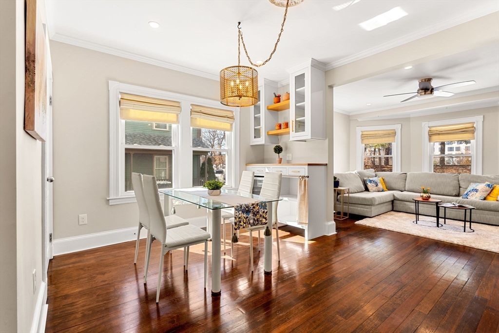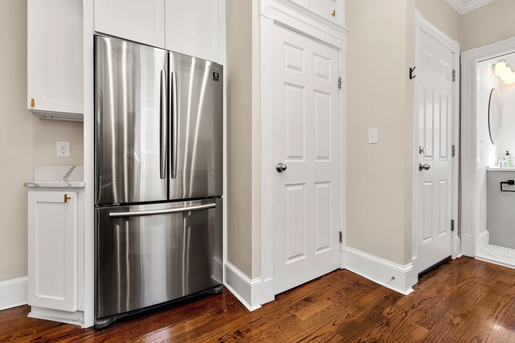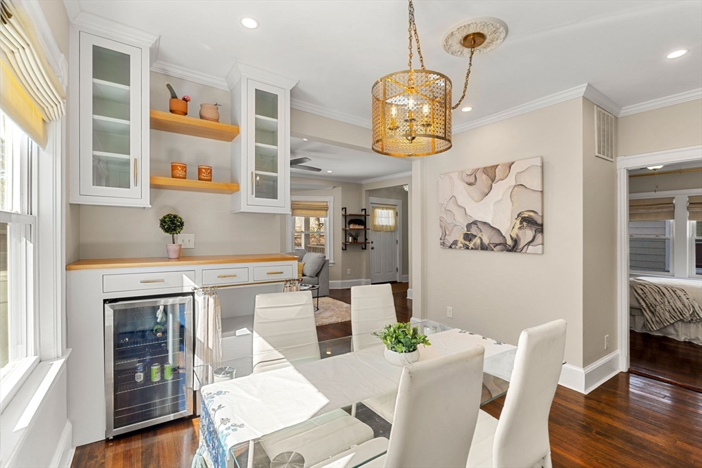 Beautifully renovated first-floor condo in Boston’s desirable Readville neighborhood on a tree-lined street. Updated in 2020, this sunny and spacious home comes with thoughtful finishes and modern touches throughout. The well-designed condo features 8’6” ceilings and large windows that flood the space with natural light. The open and functional layout is ideal for both everyday living and entertaining, highlighted by a custom built-in dry bar, hardwood floors throughout, a large living room, dedicated dining room, well-sized bedrooms, and plenty of closets. Additional features include central A/C, in-unit washer and dryer, one off-street parking space, and additional basement storage! The kitchen features beautiful cabinets with ample storage, Samsung SS appliances, and quartz countertops. Just a 5-minute walk to Readville station, and a 20-minute train ride to South Station with additional bus lines providing direct access into Boston. .