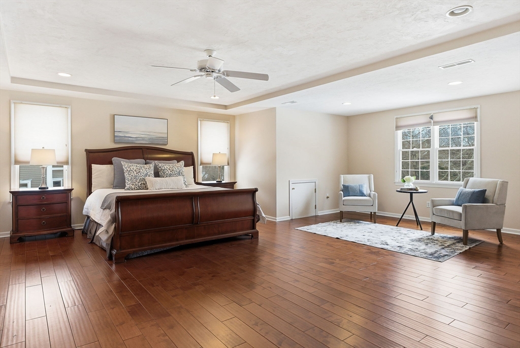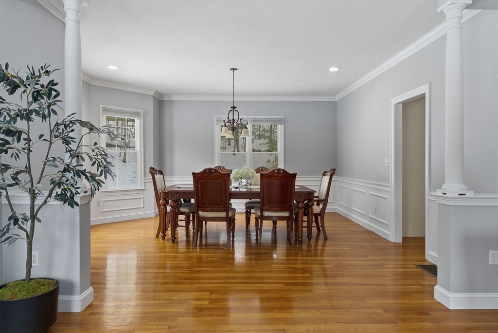 Located in the highly sought-after Piccadilly Mill neighborhood, this pristine East facing Colonial sits on a prime cul-de-sac lot. A dramatic sweeping staircase & gleaming hardwood floors welcome you inside. The chef’s kitchen features white cabinetry, quartz countertops, center island, tile backsplash, gas cooking, & double ovens. The step-down great room boasts a wood-burning fireplace & access to the fenced backyard. Elegant columns define the formal living & dining rooms. A private home office & mudroom off the garage add functionality. The second floor offers hardwoods throughout & three full baths. The spacious primary suite includes a sitting area, walk-in closet with custom closet system, & a luxurious bath with dual vanities, Jacuzzi tub, & shower. A separate laundry room with sink completes the level. The finished 3rd floor provides flexible space for a gym, media room, or playroom. Young roof, newer HVAC, & numerous upgrades. Enjoy a deck overlooking a private backyard!
