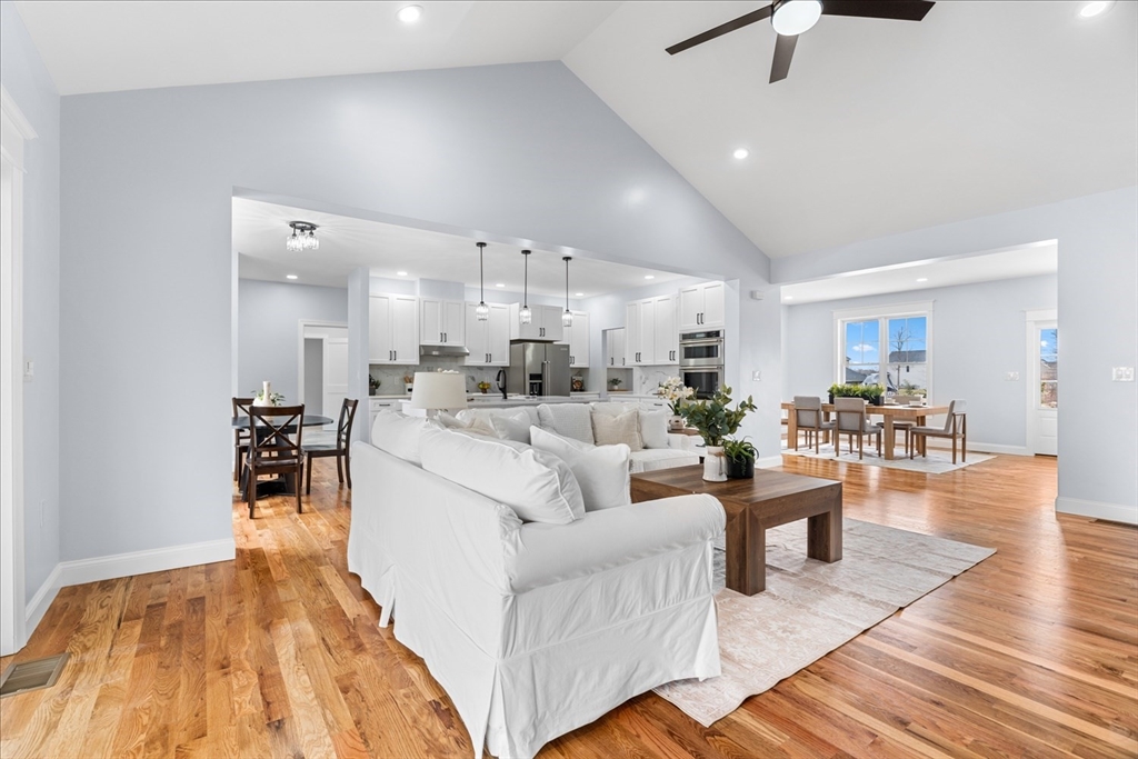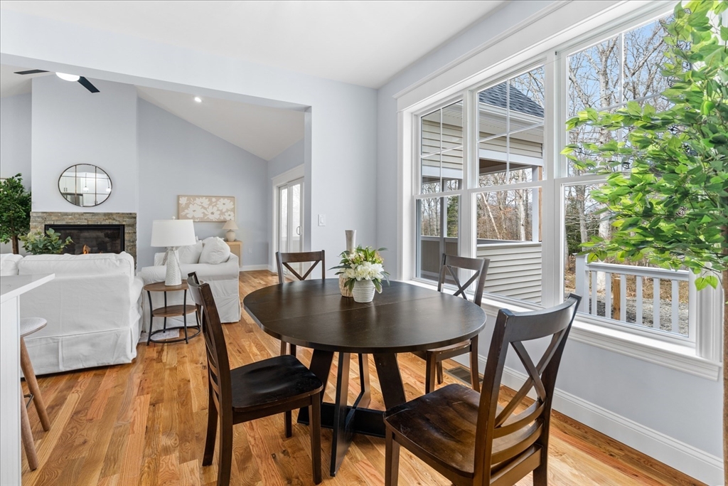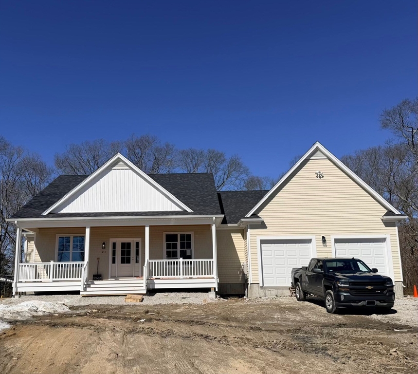 Brand new construction ranch-style home located in the sought-after neighborhood of Briggs Landing, offering convenient single-level living with 3 bedrooms, 2 full bathrooms, and 1 half bath. The home features a welcoming front porch and enclosed back porch. Surrounded by trees, the private lot provides a peaceful setting. Inside, the home offers an open-concept floor plan with abundant natural sunlight, cathedral ceilings in the living room, and a fireplace in the main living area. Hardwood flooring runs throughout the living room, dining area, and kitchen, with carpet in the bedrooms. The kitchen includes a large pantry and flows seamlessly into the living and dining spaces.The primary bedroom features a spacious private bathroom with an oversized shower, soaking tub, and a separate water closet. A large walk-in closet connects directly to the laundry room for added convenience. Additional highlights include an attached two-car garage, natural gas utilities, and central AC.