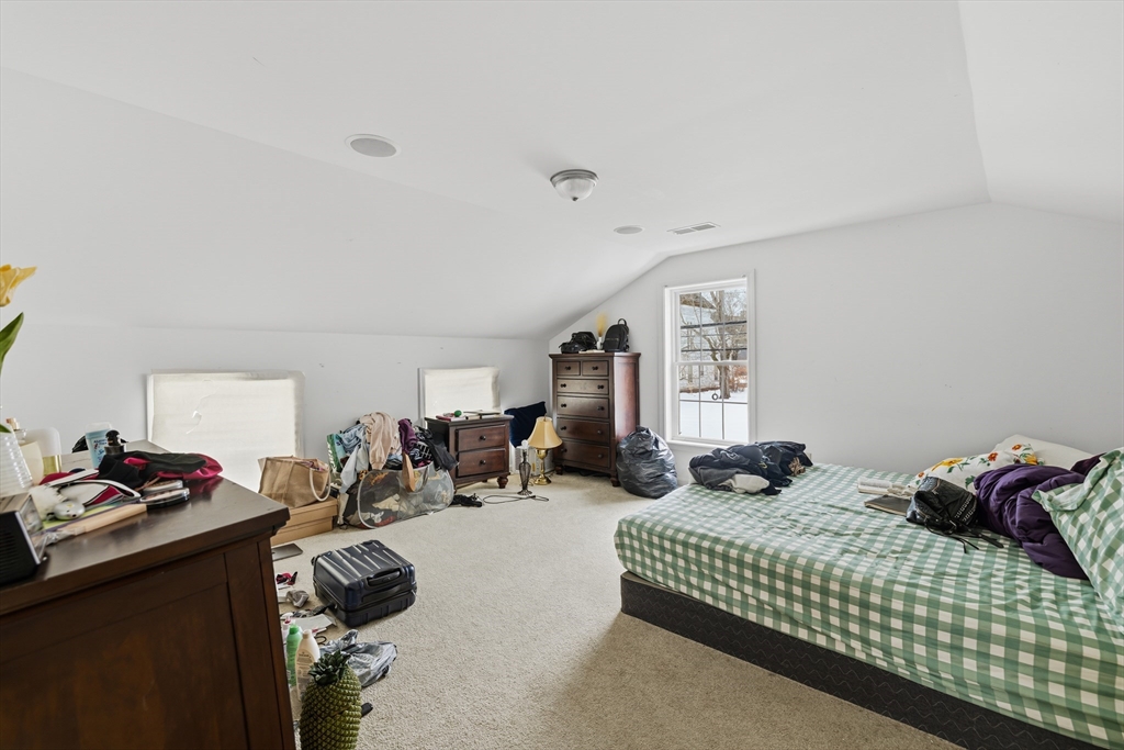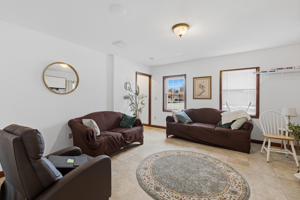 Charming 3-bedroom Colonial featuring a welcoming covered front porch and a private, spacious back patio—perfect for relaxing or entertaining. Town water, sewer, gas, and municipal electric. Off-street parking with shared driveway easement. “Cedar Impression” siding and recently updated roof. Handicap accessible: back ramp, under-counter wheelchair access, wide doorways, and a luxurious walk-in first-floor shower. Freshly painted interiors, cozy master bedroom, and a bright eat-in kitchen with new appliances. The living room is airy and inviting, complete with, central air, plastered walls with full insulation, upgraded electric, new vinyl windows, and updated bath and kitchen. First-floor laundry and bath provide ultimate convenience.Ideally located near schools, library, restaurants, shops, playgrounds, and commuter-friendly paths.
