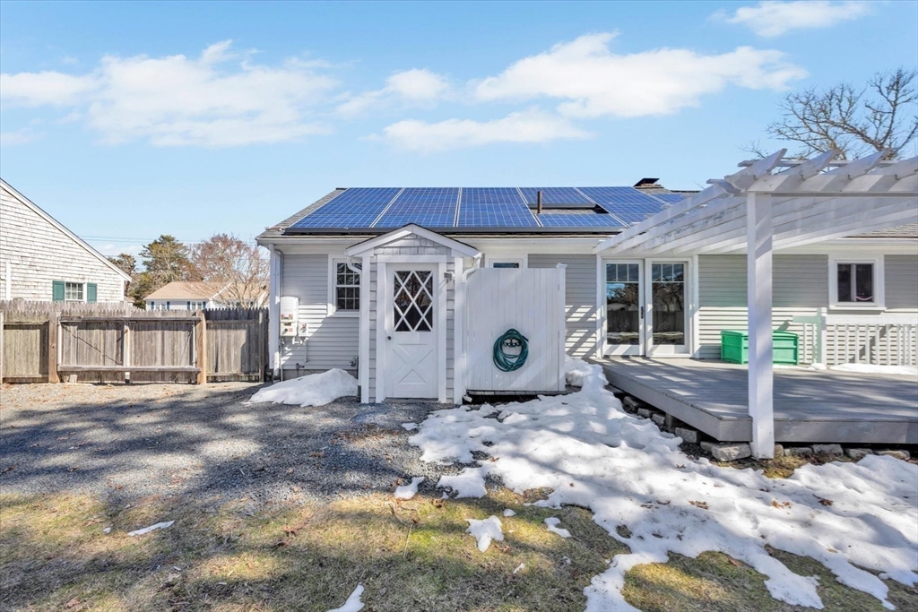 Nestled in the heart of Captain's Village, this inviting 3-bedroom, 1-bath ranch offers exceptional convenience--just minutes from Yarmouth's beautiful beaches, restaurants, bike path, shopping, and schools.The home features some great updates, most completed within the past 10 years, including a new heating and hot water system (2018), roof (2021), mini-split systems (2016), and french doors (2021), plus more. The thoughtful layout provides a private primary bedroom and dedicated office space situated on the opposite side of the home from the two additional bedrooms, offering added privacy.Step outside and enjoy a spacious backyard complete with a deck and outdoor shower--perfect for relaxing after a day at the beach.