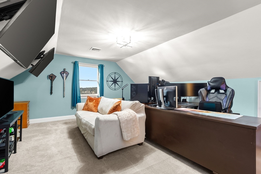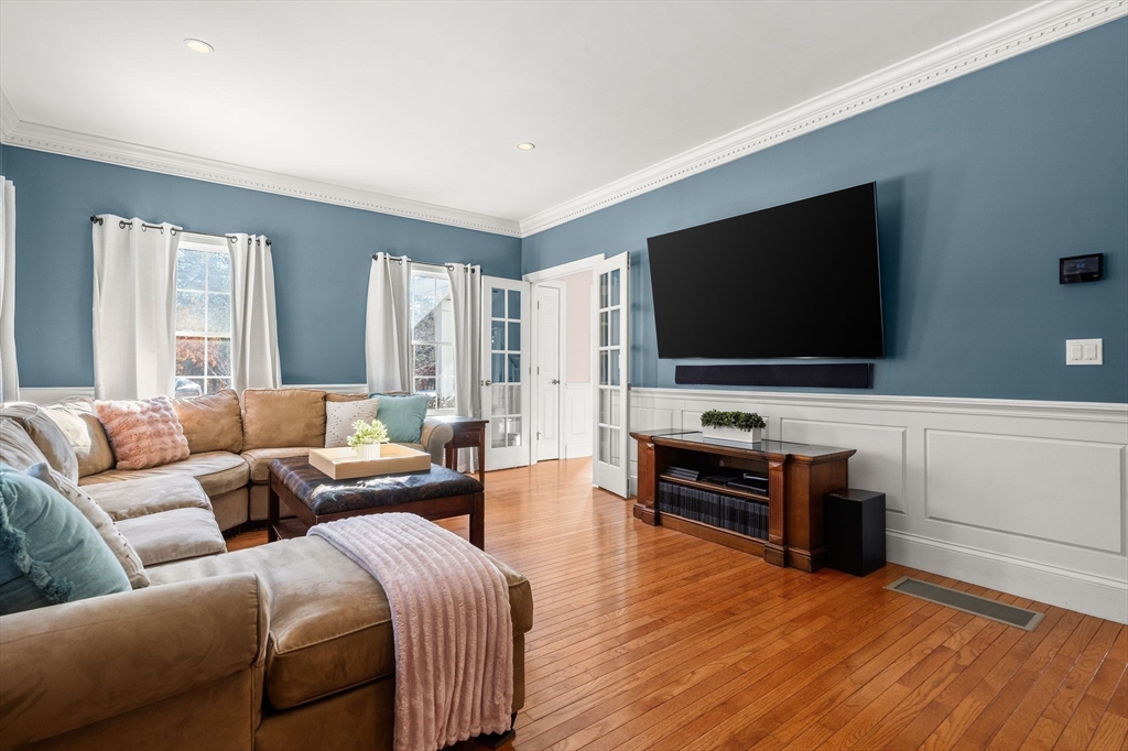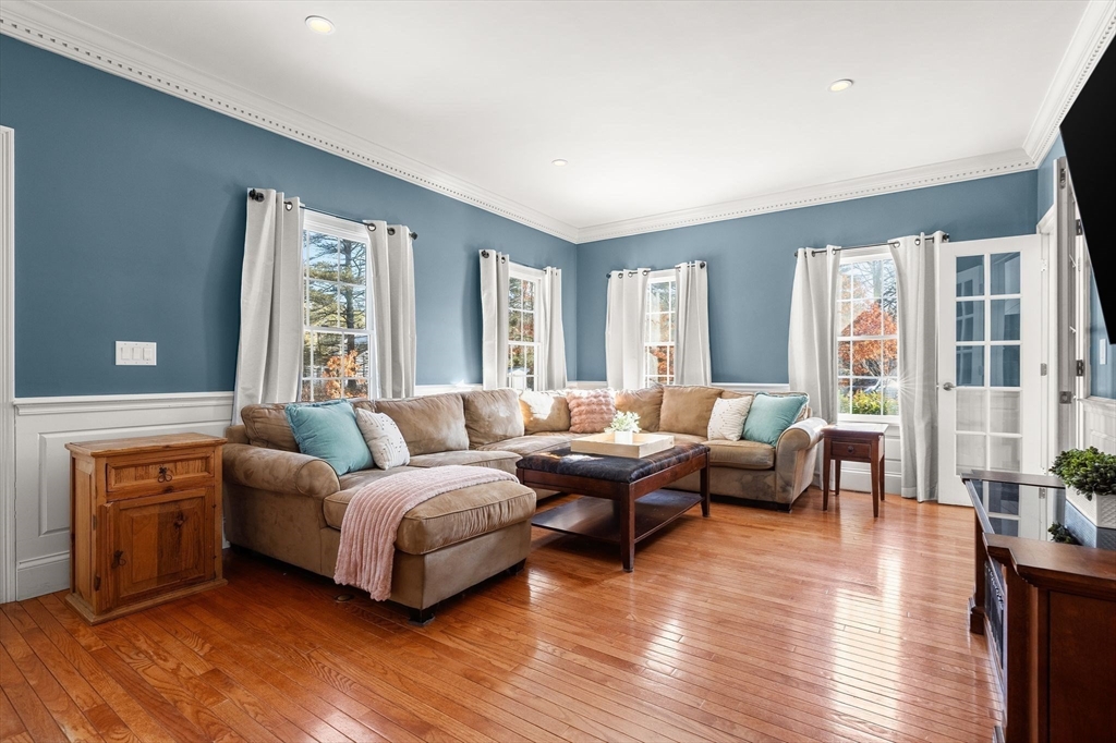 Experience the quiet luxury of space & serenity along with the integrity of fine New England design. Set on almost 3 acres, this property offers vista views and a versatile floor plan. The thoughtfully placed kitchen with adjoining dining room flows into the vaulted family room, where floor-to-ceiling windows act as a living canvas.A spacious living room with direct access to a full bath & laundry makes an ideal retreat for guests or a viable primary-level alternative for those seeking one level living. The second floor offers a primary suite complete with a private bath & walk-in closet, along with 2 generous sized bedrooms & shared full bath. The finished third floor hosts an in-home office, while the finished lower level provides a quiet, polished footprint offering many options. Outdoor living is elevated by a wrap-around deck featuring a covered lounge area and hot tub, ideal for four-season relaxation. Many updates throughout and a 2-car garage complete this retreat.