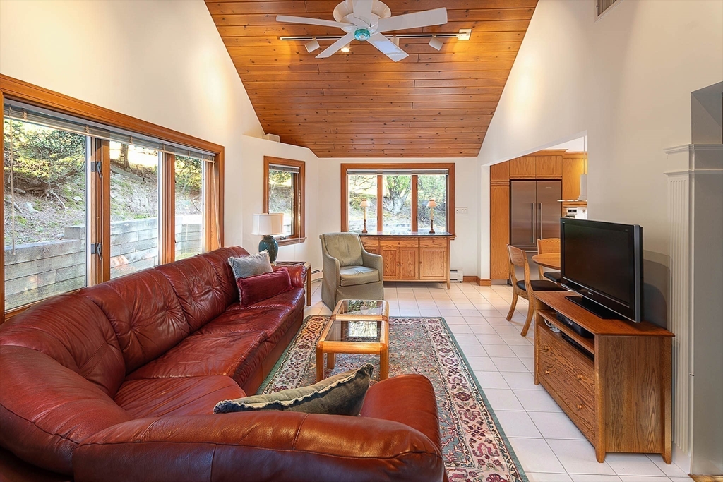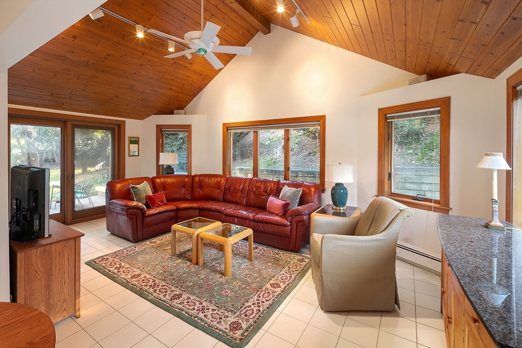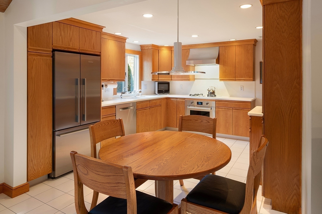 Set on a picturesque corner lot in Winchester’s coveted West Side near the Ambrose School, this beautifully preserved mid-century modern home is defined by clean lines, a thoughtful layout, and so many meaningful updates throughout. The main level features a sun-filled, fireplaced living room and a formal dining room with built-ins that flow to an inviting kitchen with stainless-steel appliances. The family room serves as the home’s architectural focal point, distinguished by a cathedral ceiling, expansive picture windows, and a sliding glass door. Two bedrooms and a full bath round out this floor. The lower level adds versatility with a bedroom currently styled as a den, highlighted by a bay window, fireplace, and closet. A spacious exercise room with laundry and storage is complemented by a tastefully renovated porcelain bathroom and direct garage access. Outdoors, landscaped grounds frame a wraparound patio, creating a private setting for enjoyment throughout the seasons.