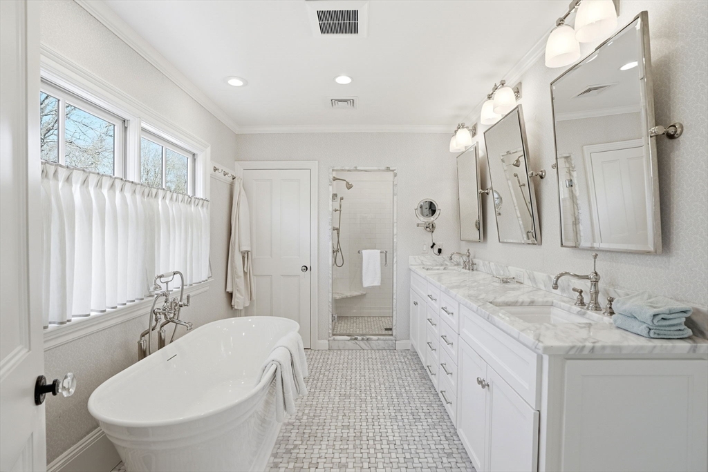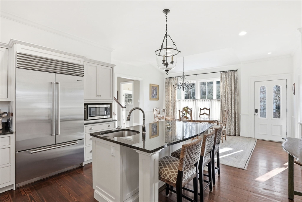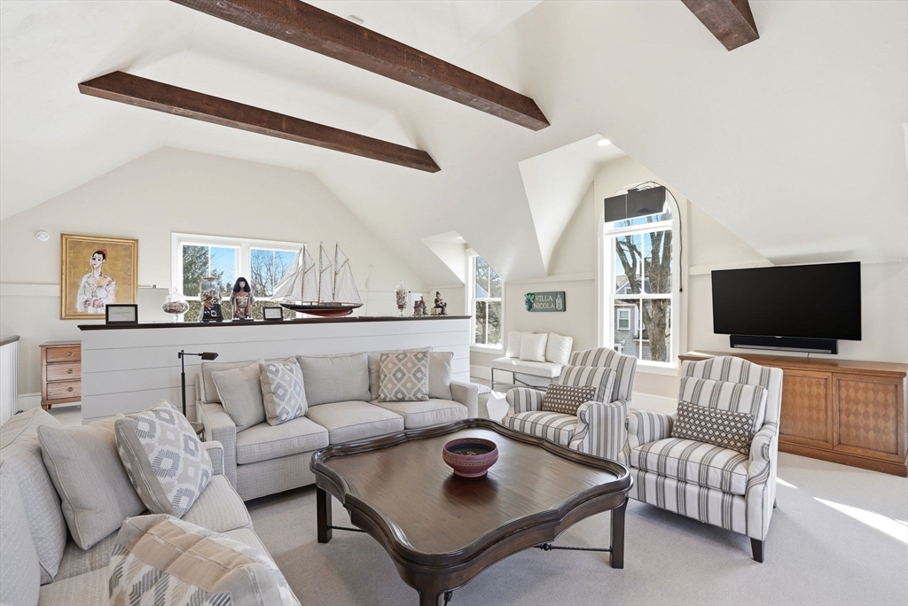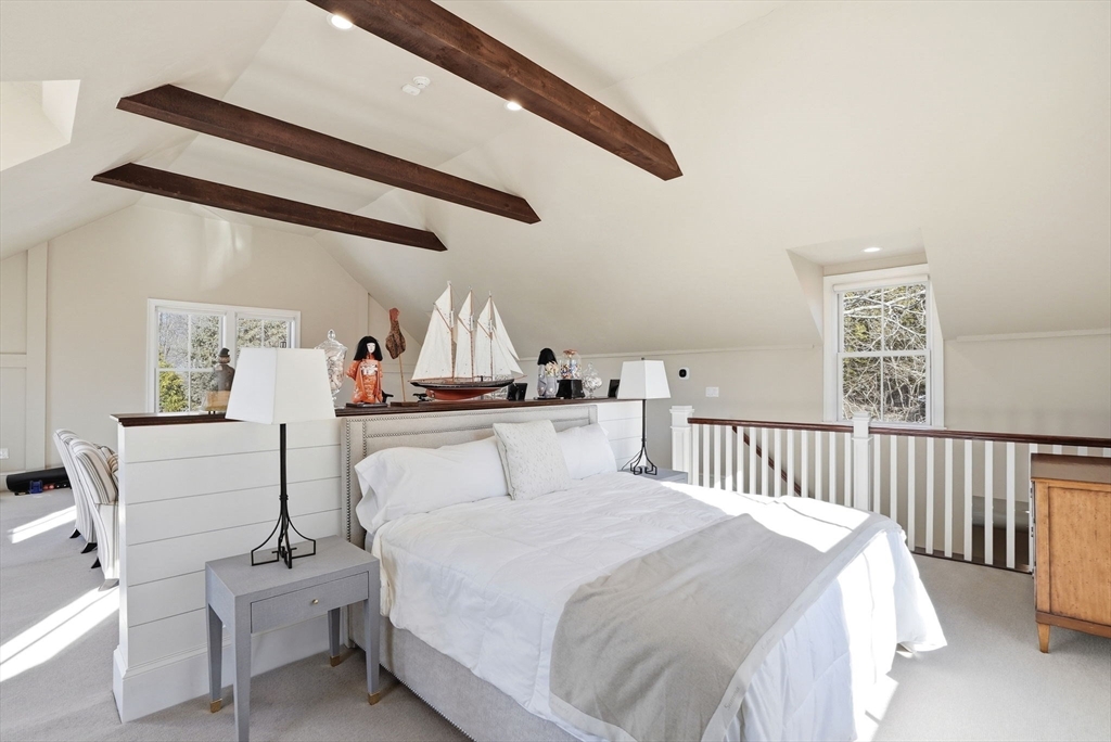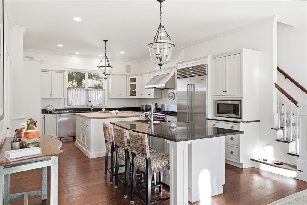 Stunning Mansard-roof Victorian set on a beautifully landscaped 0.74-acre lot in the heart of Cohasset, just steps from the harbor & village. This magnificent residence showcases exceptional period craftsmanship & custom architectural detail, blending understated elegance with modern-day convenience. Fully renovated & move-in ready, the home offers an open floor plan that balances intimate everyday living with sophisticated entertaining. The spacious gourmet kitchen features high-end appliances, two islands & a dining area. A large family room opens to an entertainment-sized deck and stone-and-brick patio with an outdoor fire pit. The primary suite includes 2 walk-in closets, a dressing room with built-ins & a spa-like bath. Three additional bedrooms, one ensuite, full bath & laundry room complete the second floor. A three-car detached oversized garage includes a home office, gym, full bath & second-floor living space—perfect for guests or an ideal yoga or artist studio.