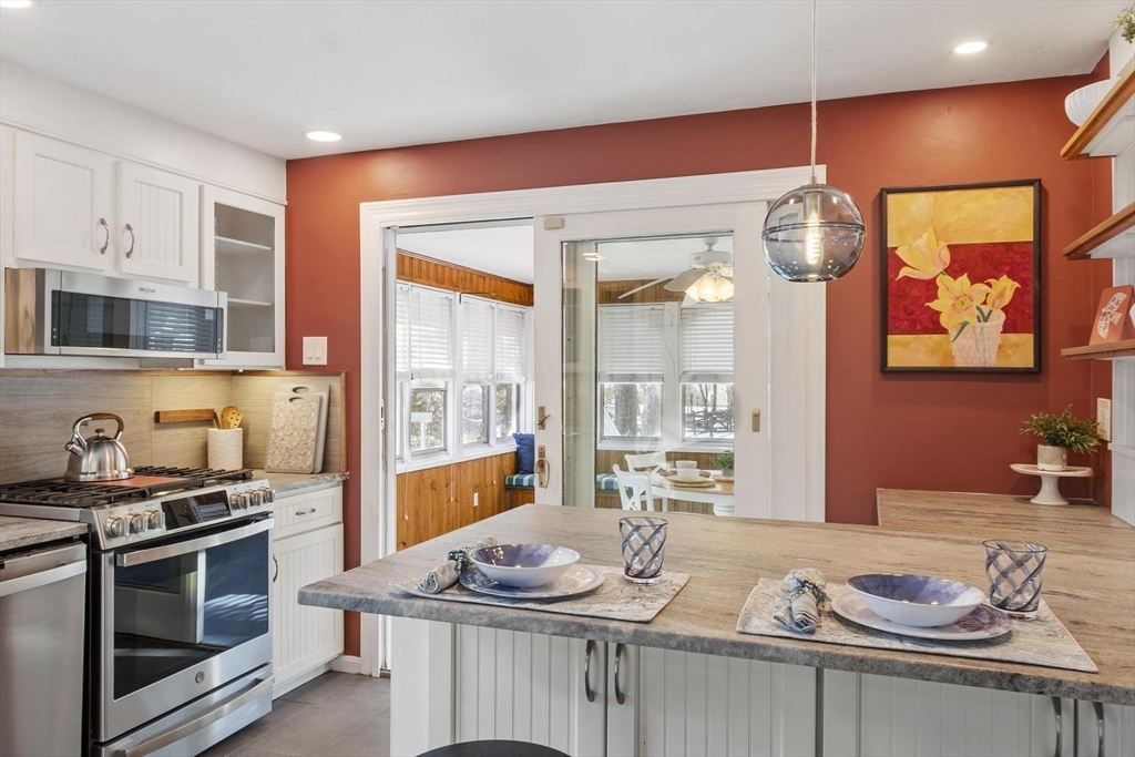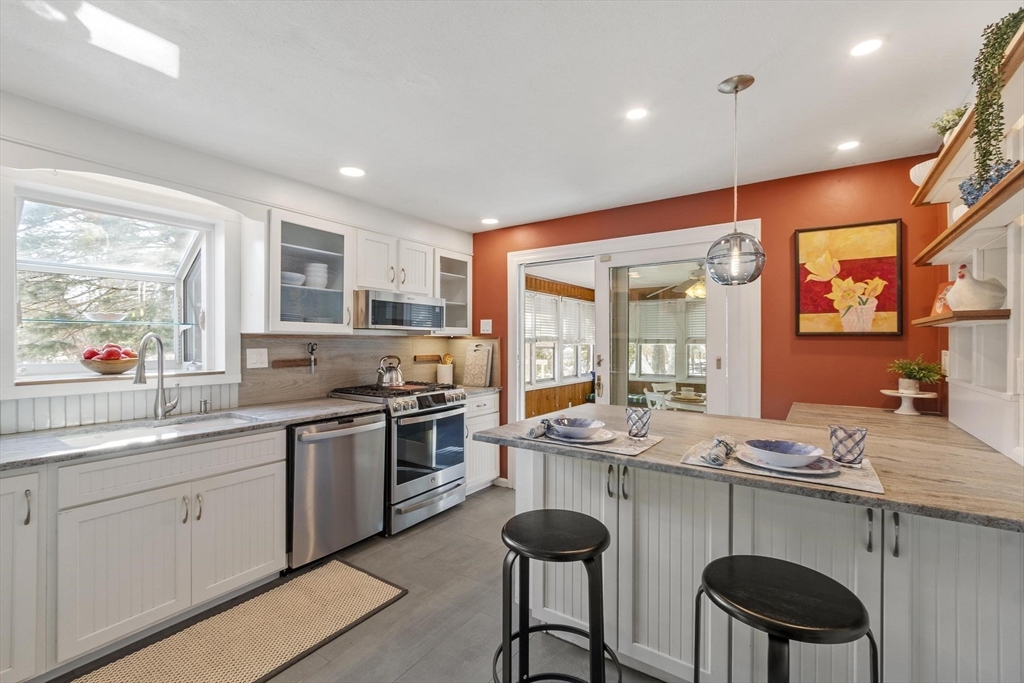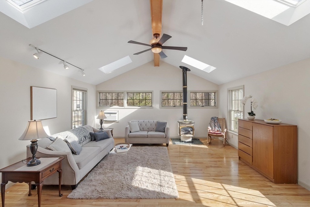 Classic Colonial on a beautiful lot! Nestled in a desirable neighborhood with easy access to the Chelmsford Swim & Tennis Club and nearby bike path. This 4-bedroom home offers exceptional living space and updates throughout. The main level features a front-to-back living room with fireplace and sliders to a porch, a spacious family room with skylights and a cozy gas stove, a ¾ bath, an updated kitchen, and a formal dining room. A large three-season porch off the kitchen opens to the deck. Upstairs, you’ll find four bedrooms and a full bath with hardwood flooring throughout. The basement offers excellent storage or future finishing potential. Enjoy the peaceful backyard with a two-story barn, ideal for storage, hobbies, or workshop space. This home has been thoughtfully updated over the years, including the kitchen, bathrooms, flooring, fresh interior paint, furnace, hot water heater, generator hook-up, windows, and roof, offering peace of mind to the next owner.