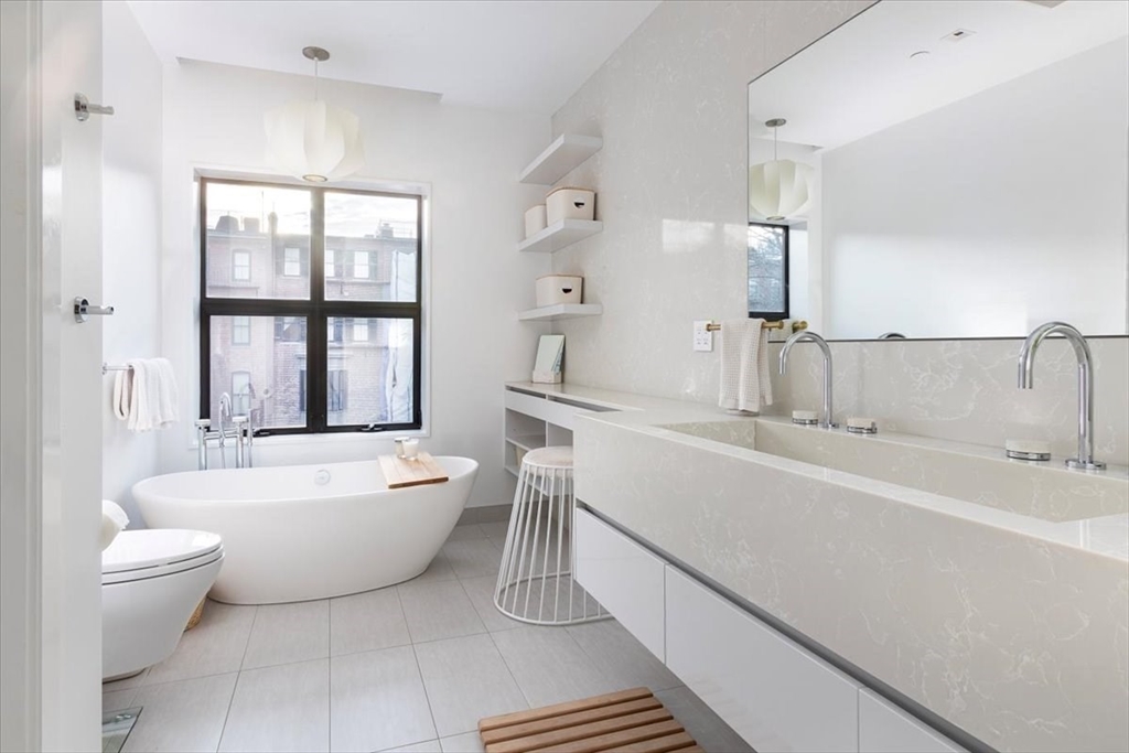 Exquisite fully renovated 5+ bedroom townhouse! An ideal South End location on West Canton St between Warren Ave & Tremont St, this special home has been totally customized by the Lagasse Group and has been finished with the highest level of craftsmanship. A parlor level kitchen offers an oversized island, abundant storage, a beverage center, gas cooking and is open to a large dining space and a bow front living area with views east down Montgomery St. A double entry, half bath, private deck with floor to ceiling wall of glass, and tall ceilings complete the parlor level. A 2nd level primary suite is complete with 5 piece bath with ample storage, 2 walk in dressing rooms and a large bedroom. A 3rd floor is complete with 3 bedrooms, 2 full baths, auxiliary laundry & storage. Under the stoop entrance boats a large mudroom AND a walk in coat closet, 5the bedroom/home gym with en suite bath and a kids play room. Garden level media room with wine storage, private garden, laundry room.