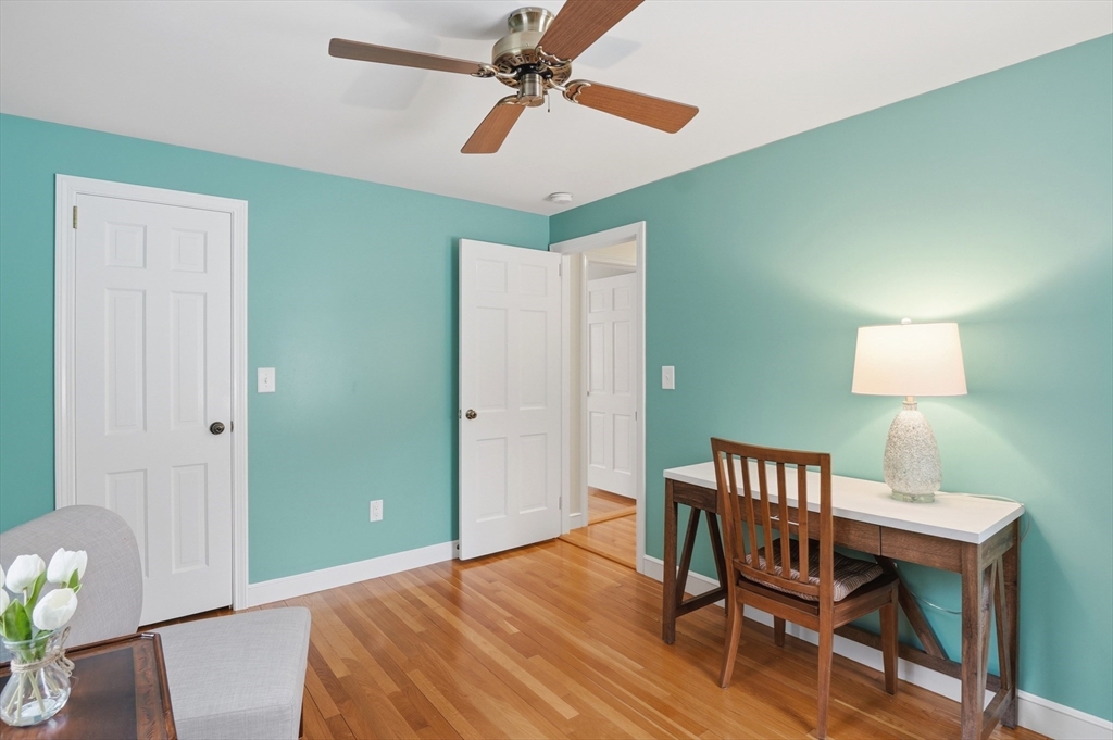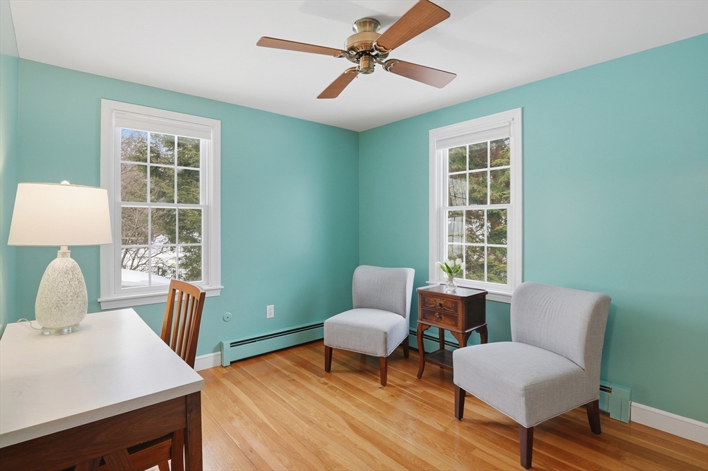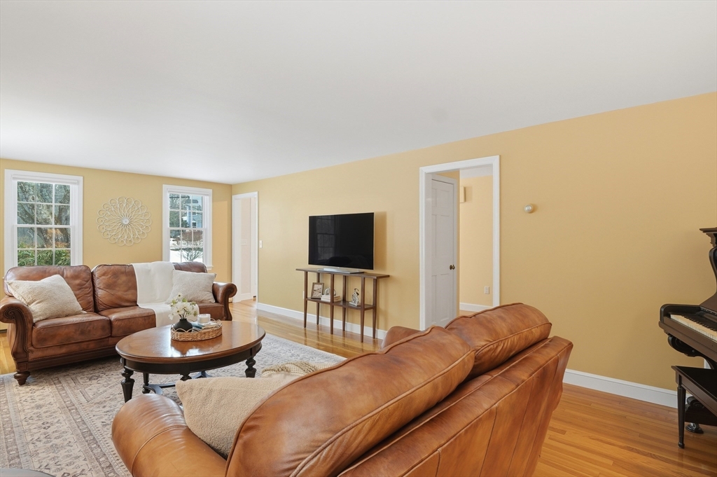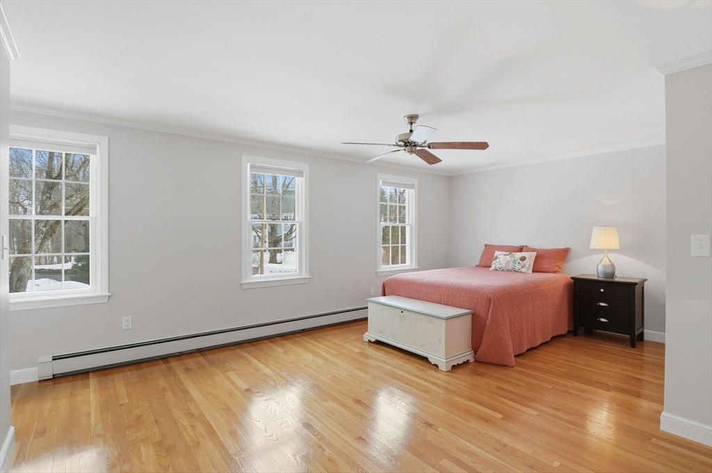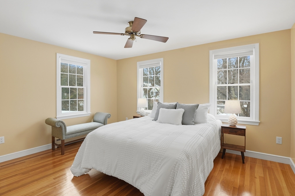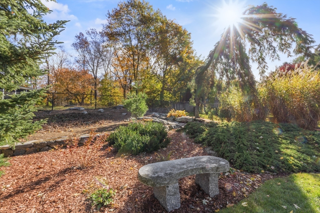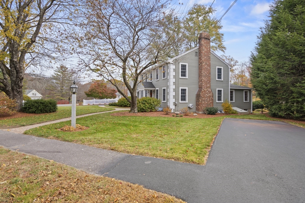 Prepare to be captivated by this picture-perfect 5-Bedroom Colonial set on a beautifully landscaped corner lot with a charming white picket fence. Meticulously maintained and showing like new, this home reflects impeccable care and thoughtful updates throughout a spacious, versatile floor plan.The first-floor Primary Suite addition offers comfort and convenience, while the spectacular vaulted dining room with exposed beams and a striking stone fireplace creates a memorable gathering space. The renovated chef’s kitchen features upgraded cabinetry, countertops, and stainless appliances, with hardwood flooring throughout.Upstairs offers four generous bedrooms and a renovated bath. Enjoy the unique octagonal three-season room overlooking a tranquil waterfall feature. Outside are paver walkways, a fenced backyard, and a large garage. Conveniently located on a corner lot abutting a neighborhood with sidewalks and access to a nearby pool association. Open House this Saturday & Sunday