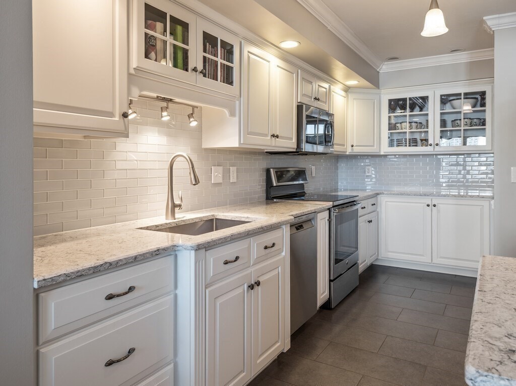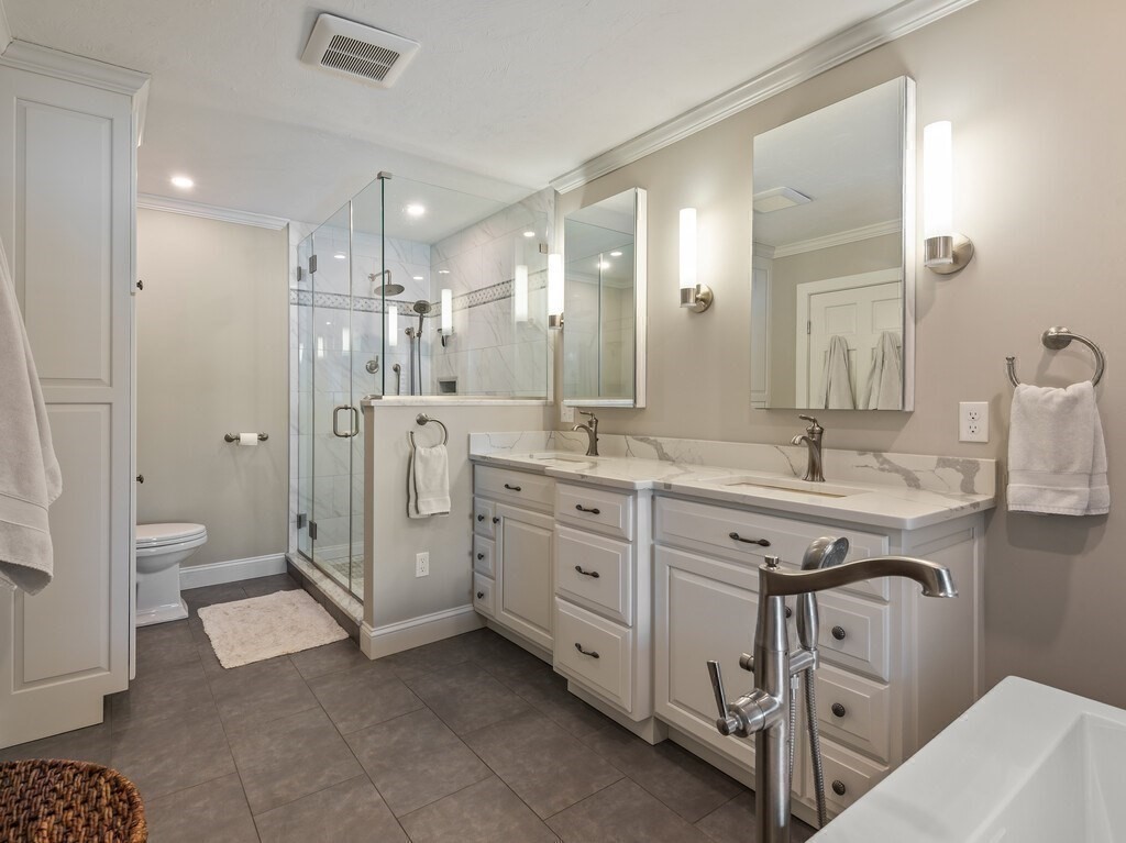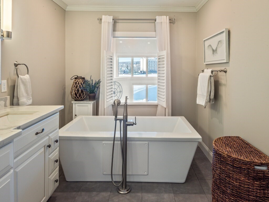 Enjoy waterfront living and boating at Quinsigamond Shores. This exceptional condo, designed for both comfort & entertaining, boasts a kitchen with custom handcrafted cabinetry & quartz countertops that flows seamlessly into sun-filled living areas with hardwood floors. Offering two bedrooms & three and a half baths, this residence features a spa-like primary bathroom with custom cabinetry, radiant heated floors, large tiled shower, and bubble- jet soaking tub. Primary bedroom has balcony overlooking the lake & docks. An expansive loft with recent silk-blend wall-to-wall carpeting provides flexible space for guests, office, or lounge. The finished lower level—offers a bonus room, wet-bar, full bath, & storage. Step outside to a very private brick patio with breathtaking sunset water views. Additional highlights include a one-car, heated garage with epoxy floor & deeded deep-water boat slip. Lakeside clubhouse, pool and ample parking - all near dining, shopping & UMass Medical Center.