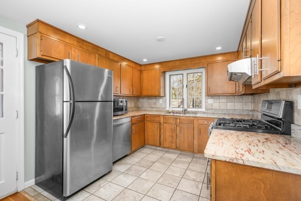 Well main. 2 br ranch style home in Capt's Village. Move in ready with one car att gar. E in kitch with granite, updated appl's. Front to back F/P LR with large din area with newer sliding doors to spacious deck for your back yard barbecues. Both br's are good sized, bright and have California Closets to keep you organized. Recent updates include New FHW gas heating system and 40 gal hot water heater 2026, freshly painted interior 2026, California Closets, new ceramic tile shower back splash and new plumbing fixtures and toilet 2022, all new recessed lighting 2024. A/C split system, roof approx 14 yrs. This home is perfect for downsizing, 1st time home buyer, or retirement. Full dry basement with ample storage. Irrig system. Level lot with fenced in privacy. DO NOT DELAY, see this now and make this your home before someone else does!! Also included: 3 window A/C units, 1 portable A/C unit, kit table w. 4 chairs, 1 yr old gas grill, 2 wall mtd flat screen tv's, & washer & dryer.