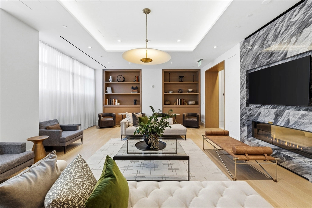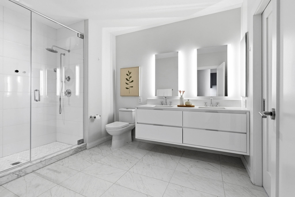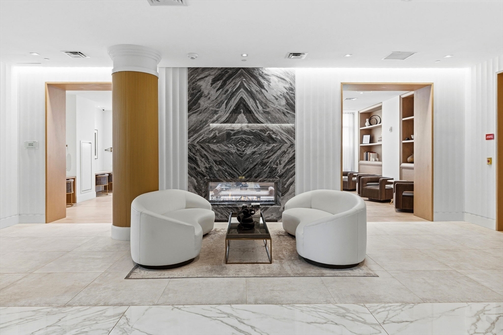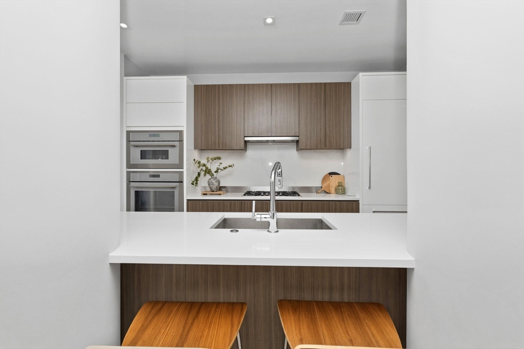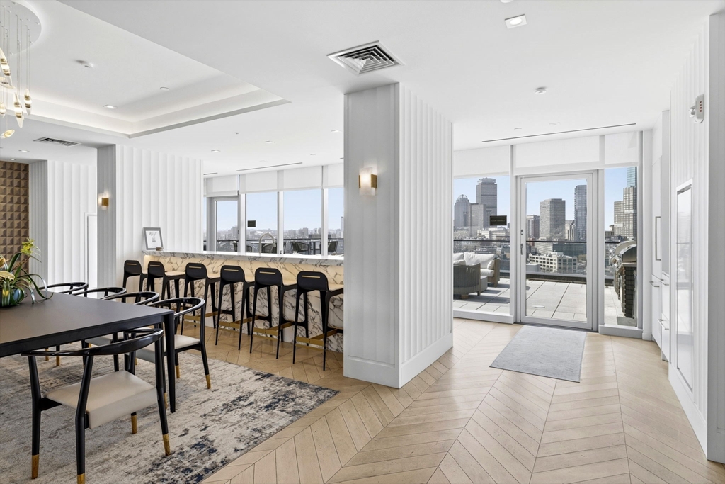 This exceptional oversized one-bedroom residence features a one-of-a-kind floor plan within the building, with soaring 9+ ft ceilings, oversized windows, and sweeping panoramic views of the Boston skyline, plus garage parking. The bright open living and dining area offers generous space for both entertaining and everyday living, with additional room for flexible use such as a home office or den. The modern kitchen is outfitted with custom cabinetry, Miami White Silestone countertops, and premium Thermador appliances. The spacious king-sized bedroom includes a custom built-in, walk-through closet leading to a spa-inspired bathroom with double vanity. Ideally located steps from Whole Foods, renowned South End dining, and convenient access to public transit as well as I-90 and I-93. Residents enjoy luxury amenities including 24/7 concierge, on-site management, coworking lounges, caterer’s kitchen, two rooftop terraces with skyline views, pet spa, and more. Best value in the building!