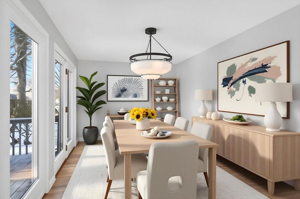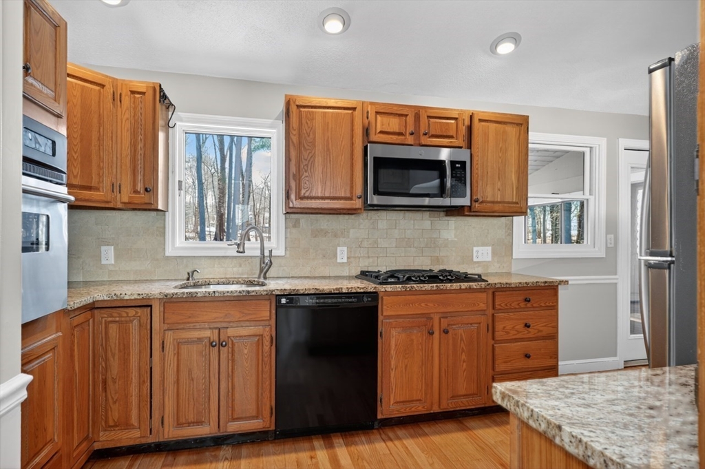 Welcome to this beautifully maintained 4-bedroom, 1.5-bath multi-level home offering space, comfort, and thoughtful updates on a peaceful cul-de-sac setting. A generous 20' x 15' first-floor addition enhances the open layout, filling the main living areas with natural light and creating an inviting space for everyday living and entertaining. The updated kitchen features granite countertops and stainless-steel appliances, combining style with functionality. Fresh interior paint and refinished hardwood floors give the home a bright, move-in-ready feel. Major updates including a newer roof, updated windows, and durable vinyl siding provide long-term value and peace of mind. Four comfortable bedrooms offer flexibility for family, guests, or a home office. Enjoy relaxing in the charming three-season porch overlooking a private half-acre lot. Conveniently located near the Town Common, shopping, and dining, this home blends tranquility with everyday convenience.
