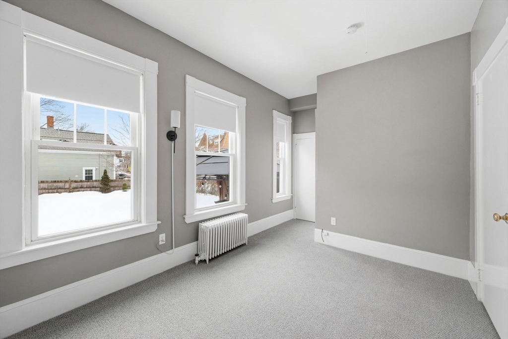Step into this beautifully updated first-floor 1-bedroom apartment where historic charm meets modern comfort. Sunlight pours through generous windows, highlighting refinished hardwood floors and freshly painted walls. Imagine preparing a favorite meal in the newly renovated kitchen, featuring granite countertops, stainless steel appliances, and crisp new flooring, then enjoying it in the inviting dining room beside the cozy electric fireplace. The spacious bedroom offers two closets, including a walk-in, creating a peaceful retreat at day’s end. The updated bath features fresh finishes, new flooring, vanity, and shower. The basement includes a washer and dryer reserved exclusively for this unit along with dedicated storage space. Outside, a fenced shared yard offers space to relax and unwind. Two tandem off-street parking spaces included. Convenient to Salem Commuter Rail, downtown, Salem State, parks, shopping, and major routes. No pets and no smokers.