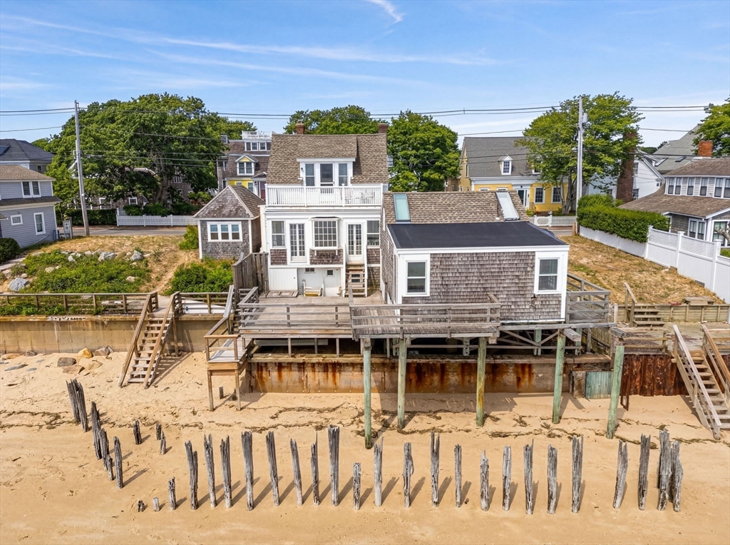 Nestled along the waterfront in the East End of Provincetown, this rare coastal retreat blends historic charm, privacy, and breathtaking harbor views. Behind a wisteria-draped gate, a beautifully landscaped garden leads to a classic antique home, a freestanding artist studio, and an additional accessory building, each positioned to capture sweeping views of the ocean and harbor. The main residence offers nearly 2,000 sq ft with two bedrooms and 1.5 baths. The first floor features a seamless living, dining, and kitchen area with large windows framing the water and filling the home with natural light. Upstairs, both bedrooms enjoy tranquil harbor vistas', detached studio provides a bright space for creative work, a home office, or guests, while multi-level decks extend toward the beach for seamless indoor-outdoor living. Just moments from galleries, dining, and the vibrant energy of Provincetown, this exceptional waterfront property offers a rare opportunity.