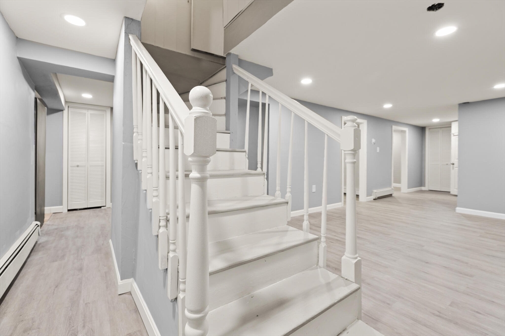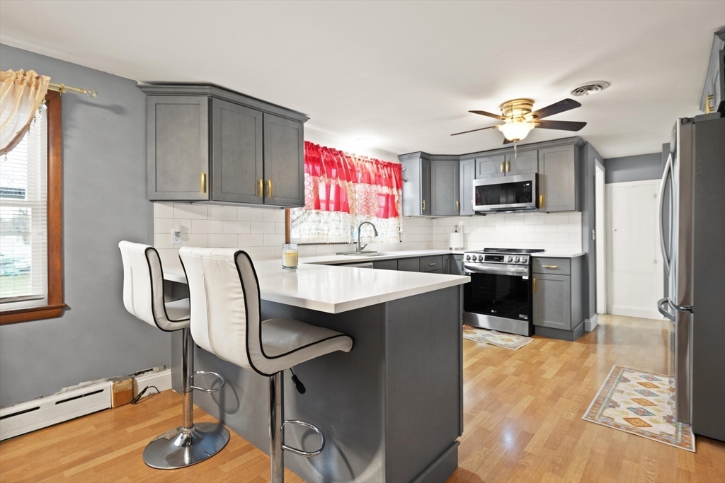 This sprawling 4-bedroom ranch at 134 Oak St has been meticulously reimagined for modern living, featuring brand-new vinyl siding for a fresh, maintenance-free exterior. The main level boasts gleaming original oak hardwood floors and an open-concept layout centered around a stunning new primary suite. This private retreat includes a designer en-suite bath and a walk-out glass door leading to an expansive backyard. The transformation continues in the fully finished lower level, offering massive flex space perfect for a home office, gym, or a potential Accessory Unit. This versatile layout is ideal for multi-generational living. Unmatched mechanical and energy efficiency upgrades include newly installed solar panels, a high-efficiency HVAC system, and upgraded electrical service. Situated on a large lot in a prime location near D.W. Field Golf Course, local schools, and easy highway access.