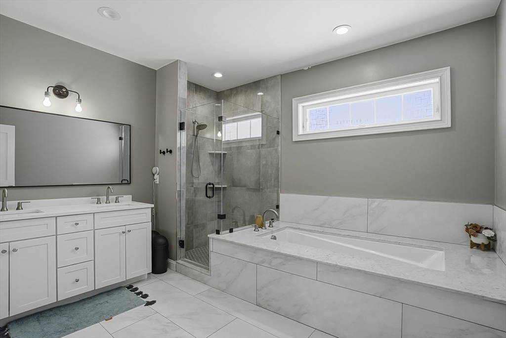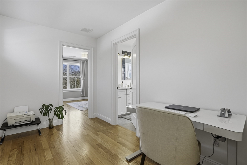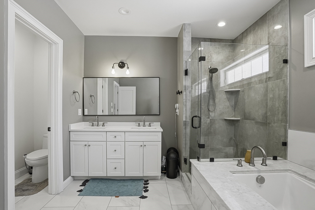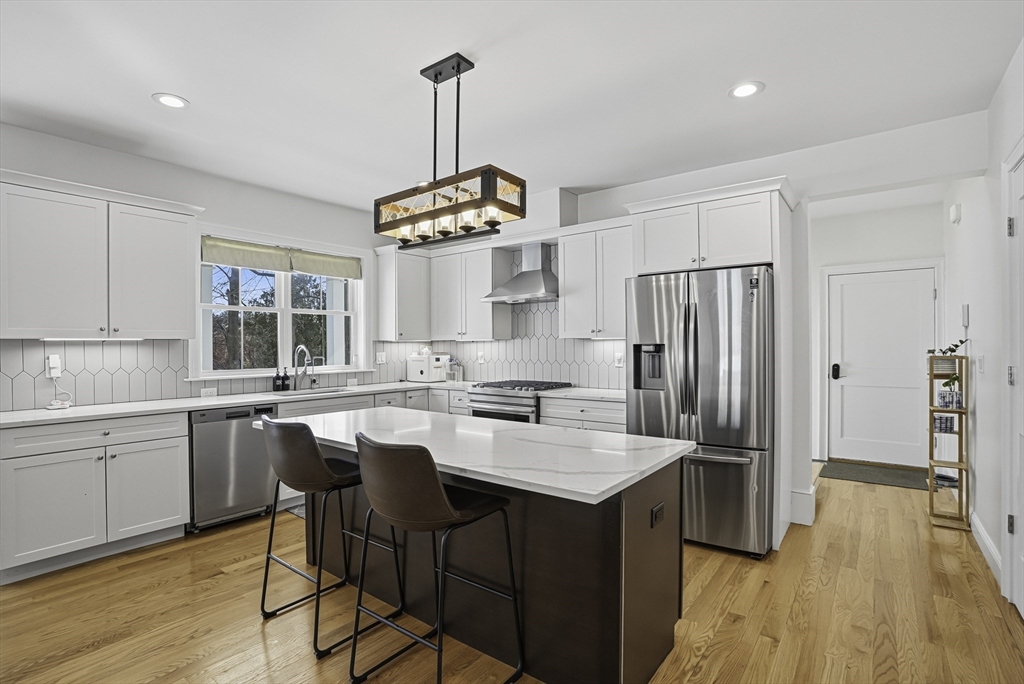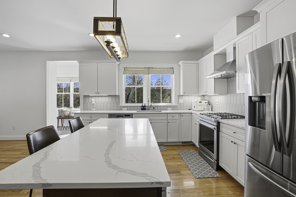 Beautiful sun-filled home in a commuter’s dream location. Open-concept first floor with a gorgeous kitchen complete with a large island and pantry, flowing into the dining and living areas. The spacious primary bedroom is conveniently located on the main level and includes a walk-in closet and an ensuite full bath. This floor also offers a laundry area, mudroom, half bath and front porch. The second floor offers two additional bedrooms, a full bath, and a rare large walk-out terrace. Step outside to enjoy the deck, patio, and large private fenced yard. Attached two-car garage with Tesla chargers. Hardwood floors and high-end finishes throughout. Ideal for multi-generational living. Close to West Natick-T, I-90, Rt-9, Natick Mall, Shopping, restaurants, parks, schools.