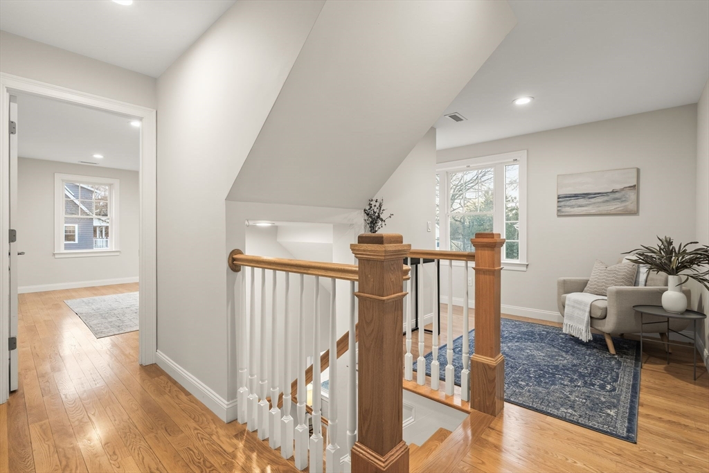 In a charming neighborhood with easy access to Peirce Elementary and McClellan Park, this stunning 2017-built Colonial on a corner lot with a massive, fenced-in yard is your new dream home. The main level greets you with gleaming hardwood floors and a thoughtfully designed layout that balances elegant entertaining with everyday comfort and flexibility. A sprawling, sun-filled family room with sliding door opens to an oversized deck, creating seamless indoor-outdoor living. The meticulous kitchen features abundant white shaker cabinetry, granite countertops and stainless steel appliances, while a spacious, formal living or dining room and a half bath complete the floor. Upstairs, there are three bedrooms, including a lavish primary suite with a custom walk-in closet and full bath with double vanity. The third floor adds exceptional versatility with the fourth bedroom, an office and another full bath, while the finished lower level with garage access completes this impressive home.