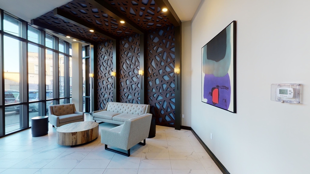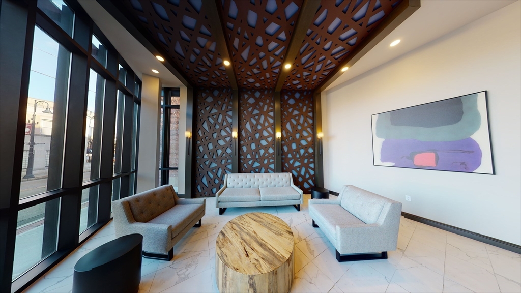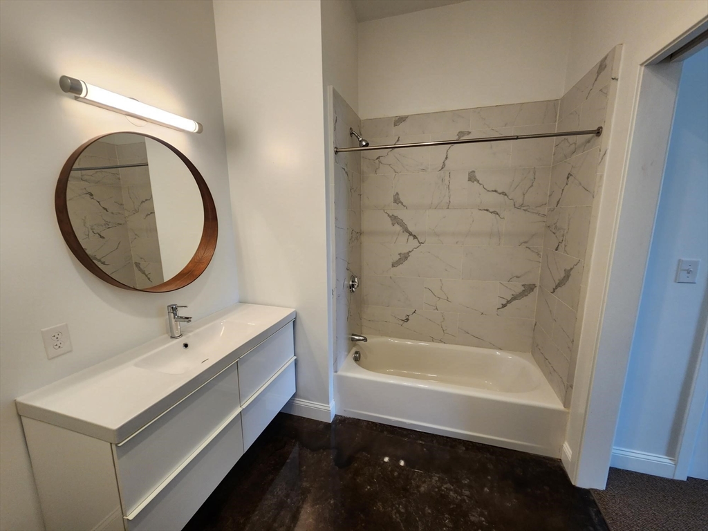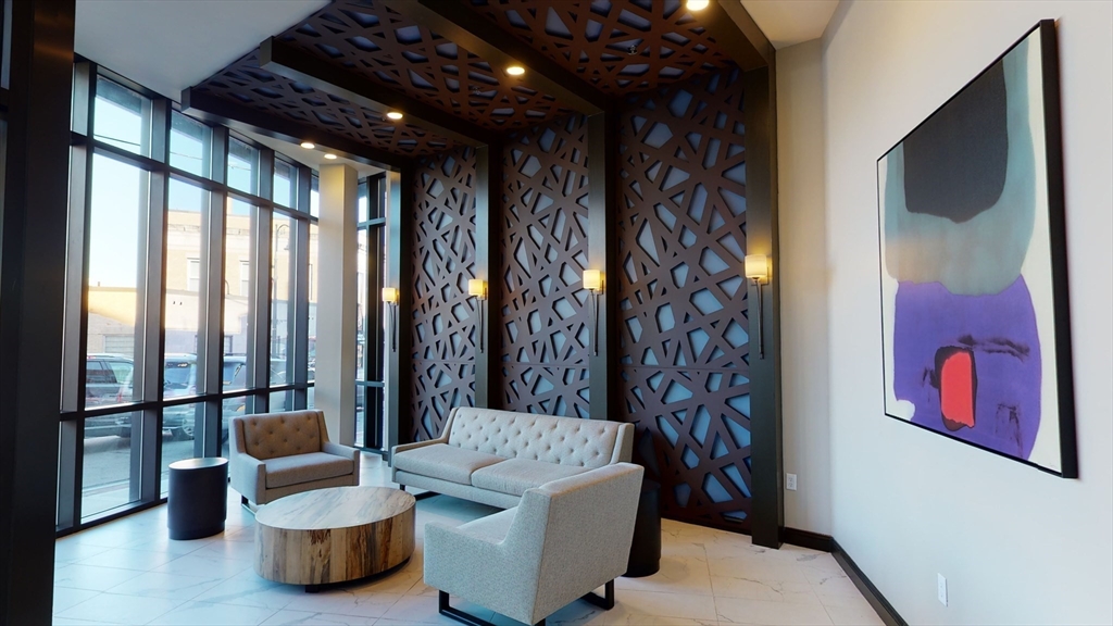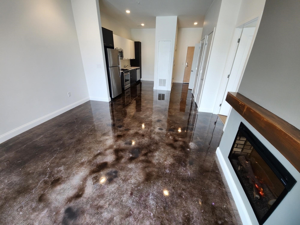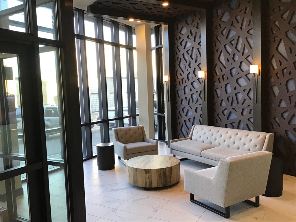 Modern, bold, bright and beautiful 3rd floor unit. Oversized windows, polished concrete floors, stainless steel appliances, modern finishes, private deck. Views overlooking Weymouth Landing. Garage parking available for $75/month. About two blocks from the commuter rail to South Station, about a 30 minute ride with train wi-fi and comfortable seating. If you need to take the red line you can change trains at Quincy Center (two stations north) or UMass South Boston. Easy show with showing time. Check mls or listing agent. In unit w/d, a/c, fridge, micr, range. Lots of restaurants and cafes in the up and coming Weymouth Landing. There is a nook to fit a desk in the bedroom.
