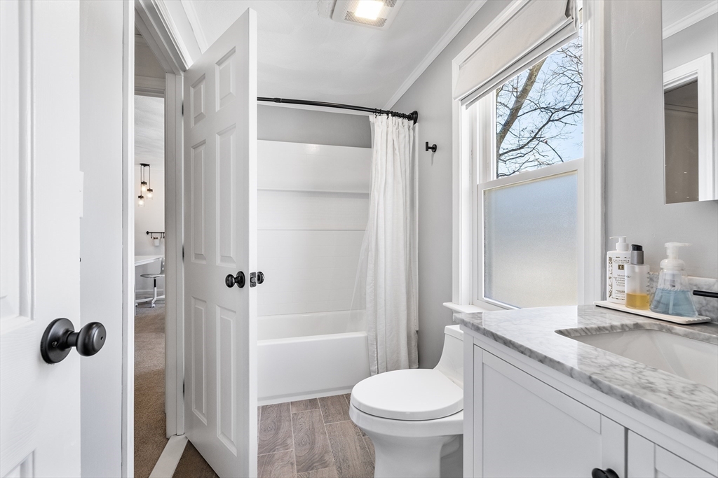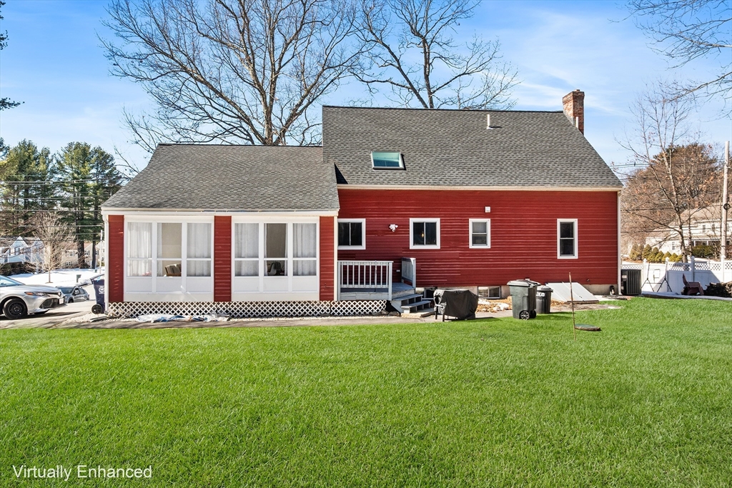 Welcome to Wilmington! This Beautifully maintained 3-bedroom Saltbox Colonial in true move-in condition. Enjoy cozy winter evenings by the fireplace in the spacious front-to-back living room featuring built-in cabinetry and shelving. Formal dining room with gleaming hardwood floors flows into the kitchen. Enjoy a sun-drenched three-season porch for those perfect spring, summer, and fall nights. The second floor features an oversized primary bedroom, two additional bedrooms, and a bright home office with skylight. With two full bathrooms. The finished lower-level family room adds valuable additional living space. Additional highlights include cooling systems 2024, an underground sprinkler system, Roof 2023, HW 2025 and a 2-car attached garage. Conveniently located just minutes from Route 93 and the commuter rail, making commuting easy.