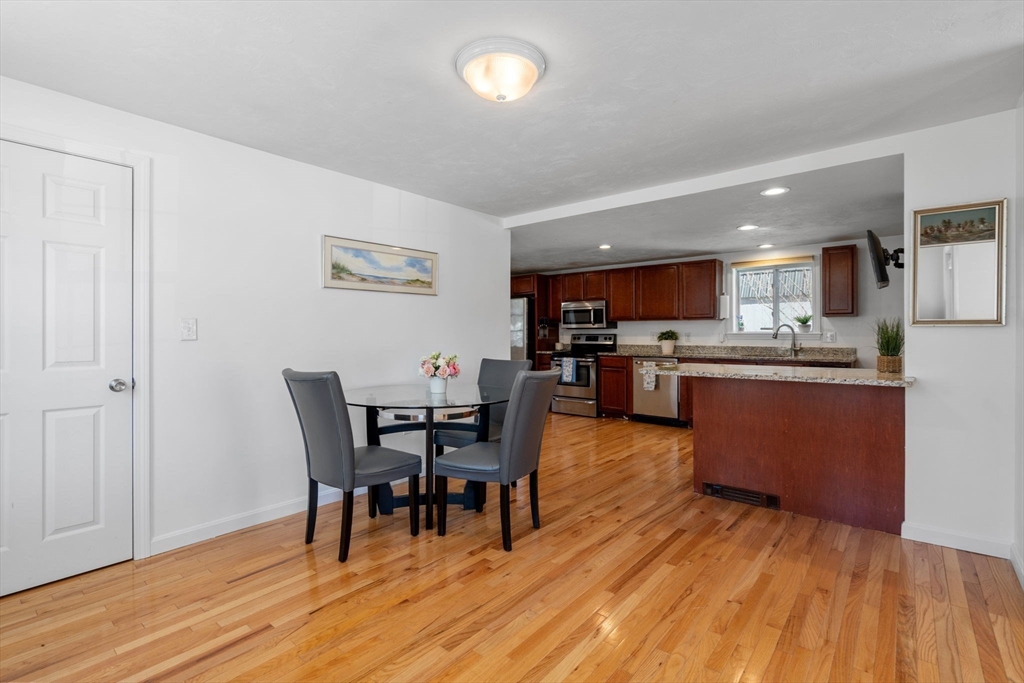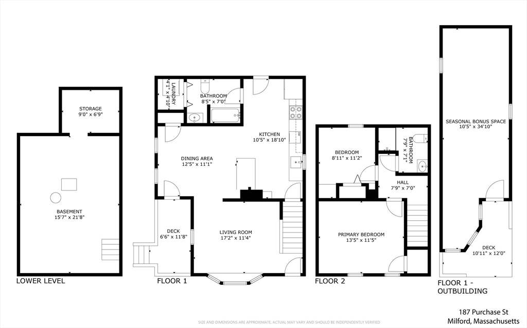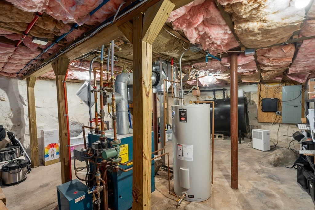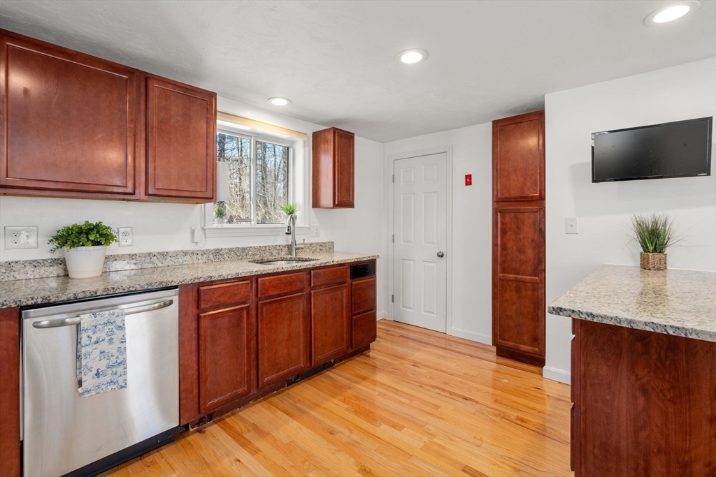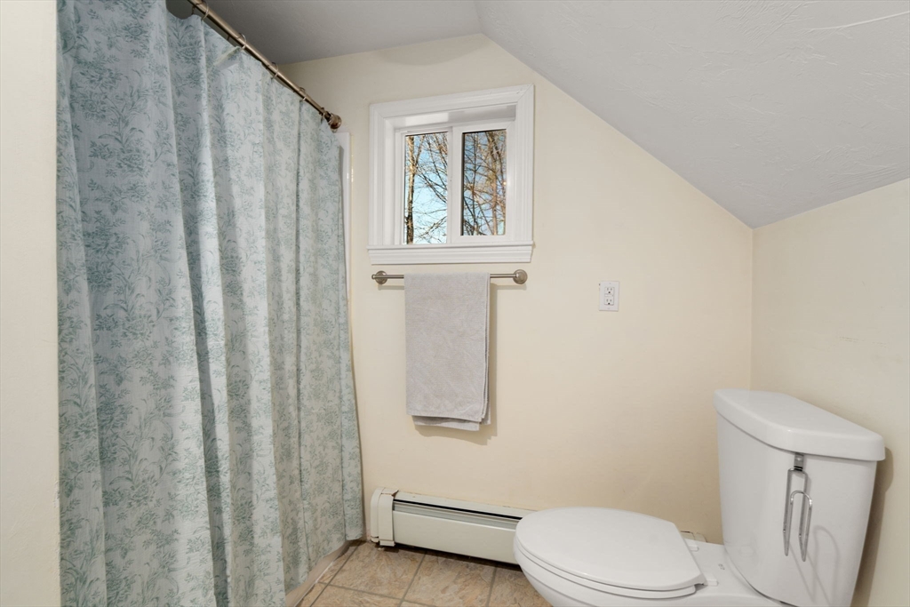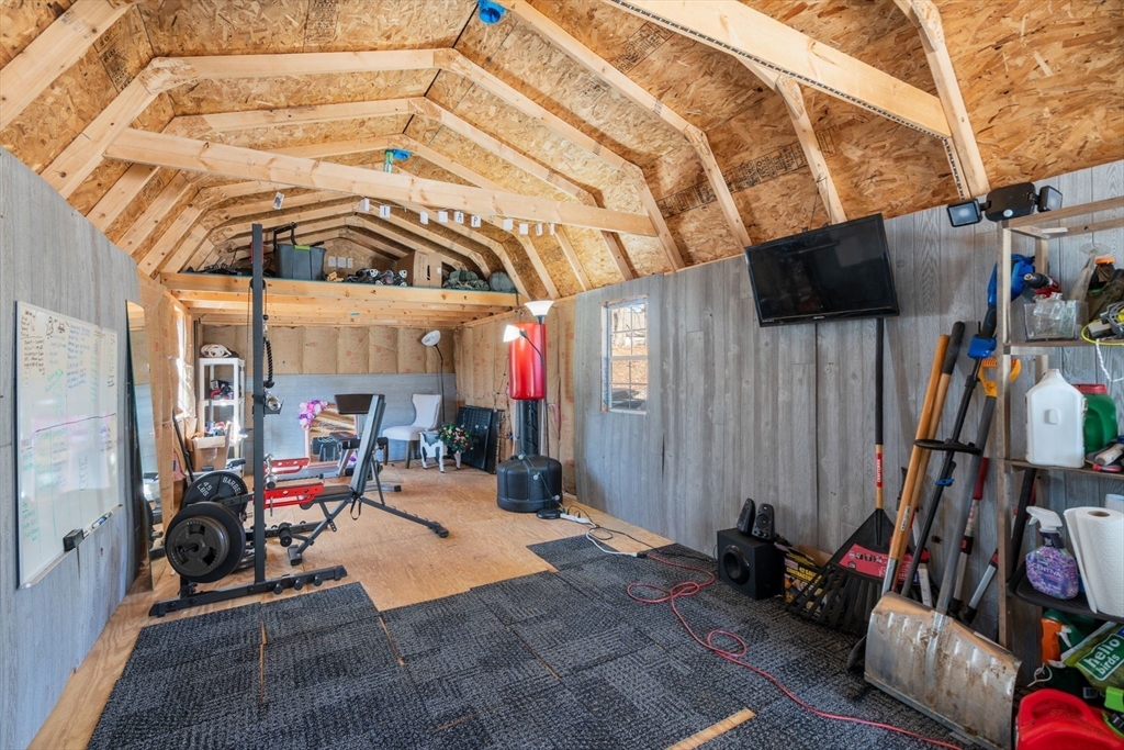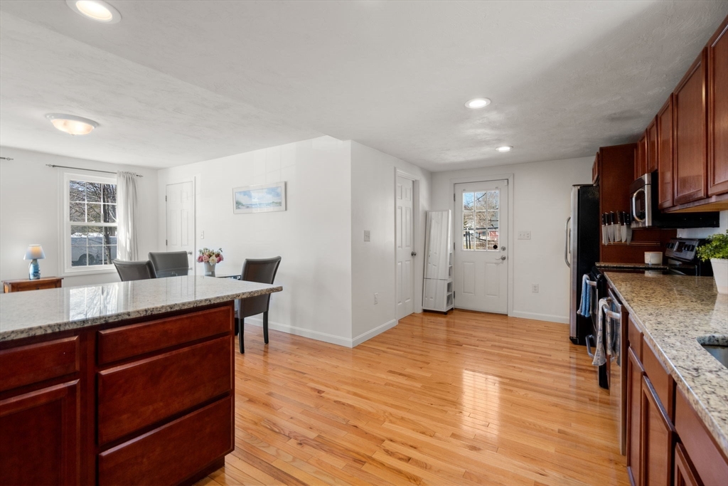Looking for land, small house or condo alternative? Come see this remodeled and updated Village Colonial with side porch entry and many possibilities. The floor plan is bright and open. First floor features a large kitchen, sun splashed dining area, full bath with washer/dryer, gleaming hardwood floors, and a living room with a pretty angled bay window. Two bedrooms and another full bath are upstairs. Updates include systems, roof, vinyl siding and the huge shed. Sitting at the end of a long Right of Way, the land has so many possibilities and opens to 1.8 acres overlooking woodlands and Huckleberry Brook in the far distance. The large outbuilding/shed has even more possibilities. Currently on private septic, there could be potential access to town sewer at back of property. As always, buyer to do own due dilligence. Hurry to see this unique opportunity. SHOWN BY APPOINTMENT ONLY. Call or text for a time slot.